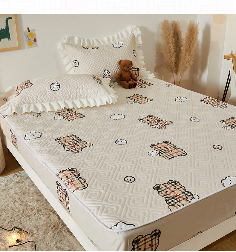 (总)舒居家纺 2025新款亲肤夹棉卡通 防水床笠床垫席梦思床套床罩(不宜机洗,建议手洗)),奥利奥小熊,靠谱小狗,慢生活,奶猫,丝带飞飞兔,甜甜黄油熊,小波点,小猫逃离季,小猫线球,小甜派,心跳回声,园镜兔