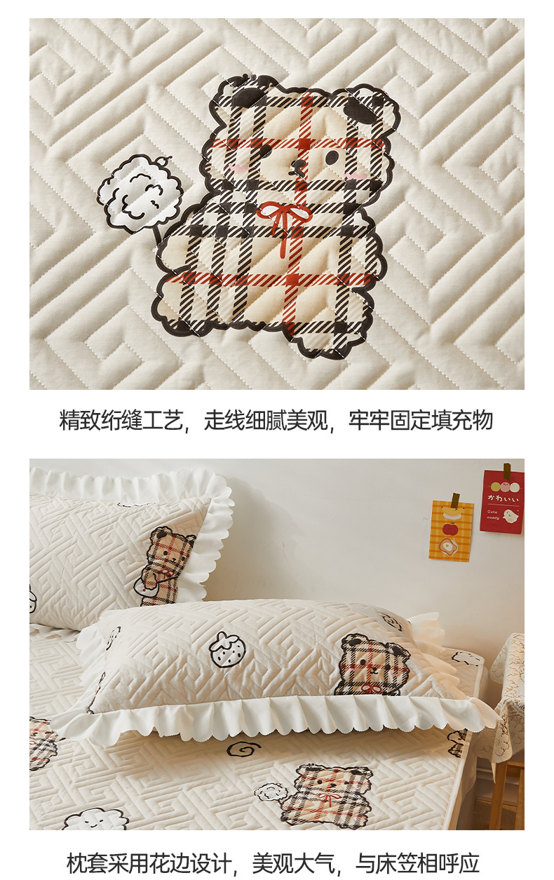 商品名称:舒居家纺 2023新款13070全棉夹棉印花床笠系列 蒙蒙熊米