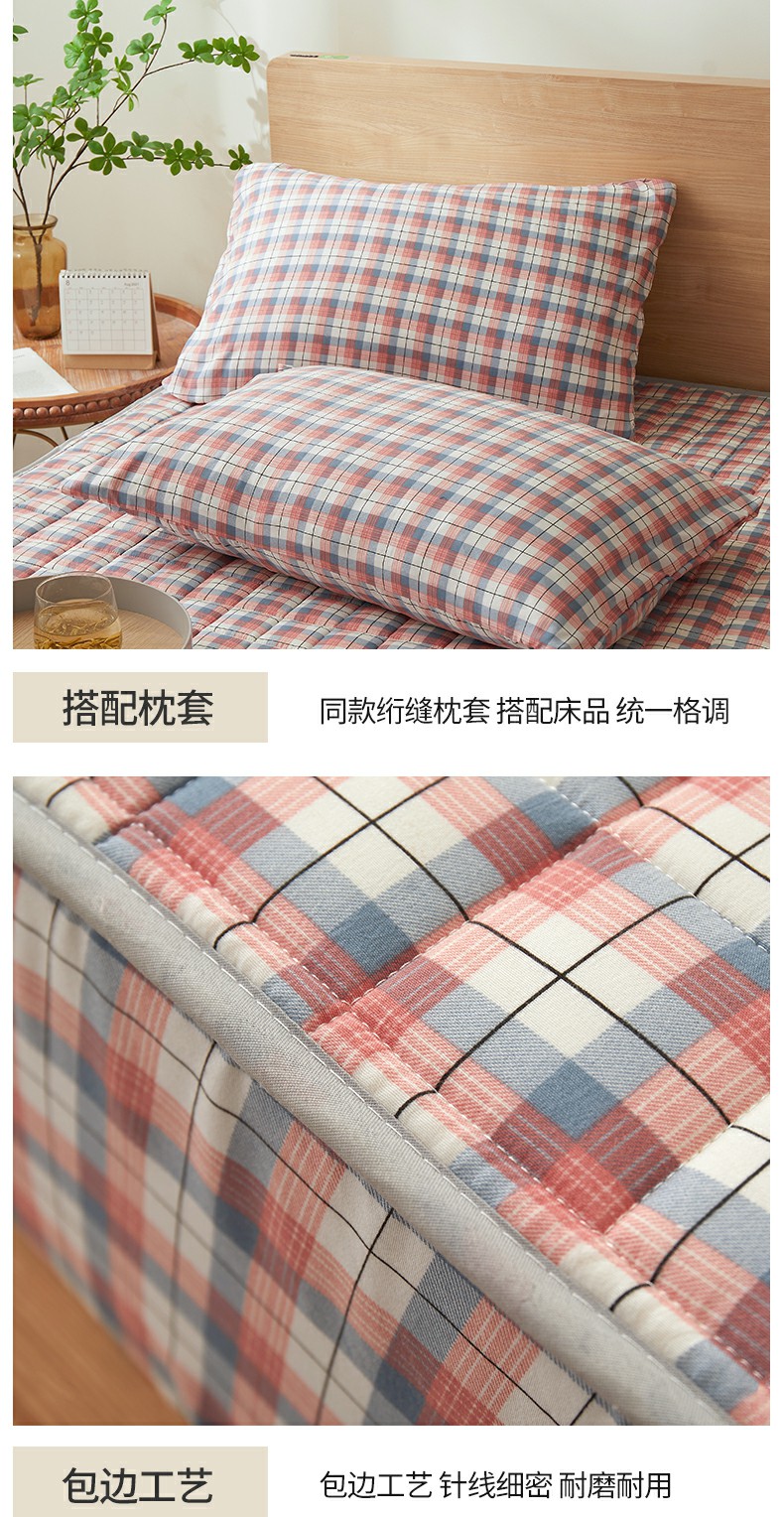 • 91家纺网 家纺一手货源 找家纺 胜权家纺 2024新款亲肤夹棉格子防水床笠 贝拉 玉