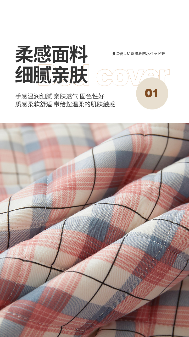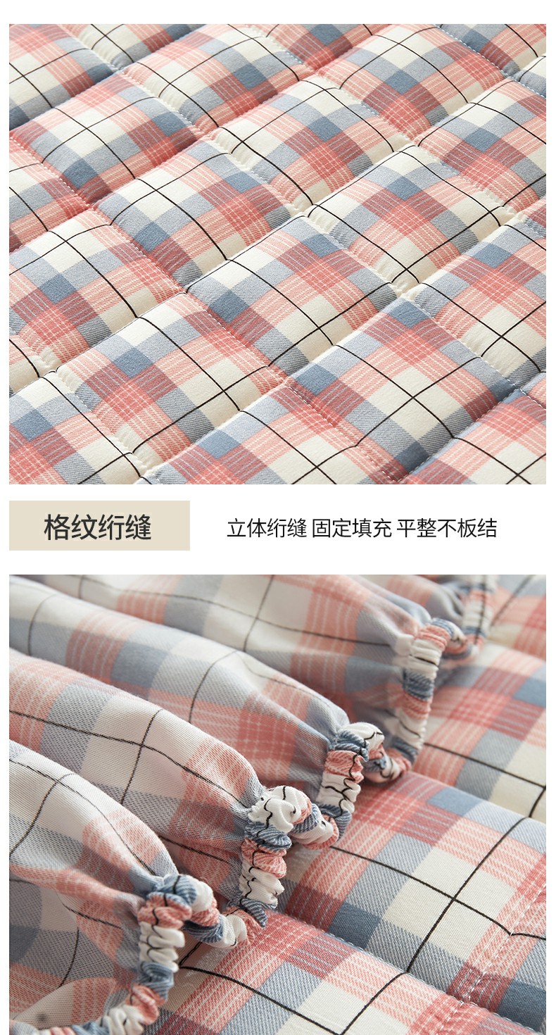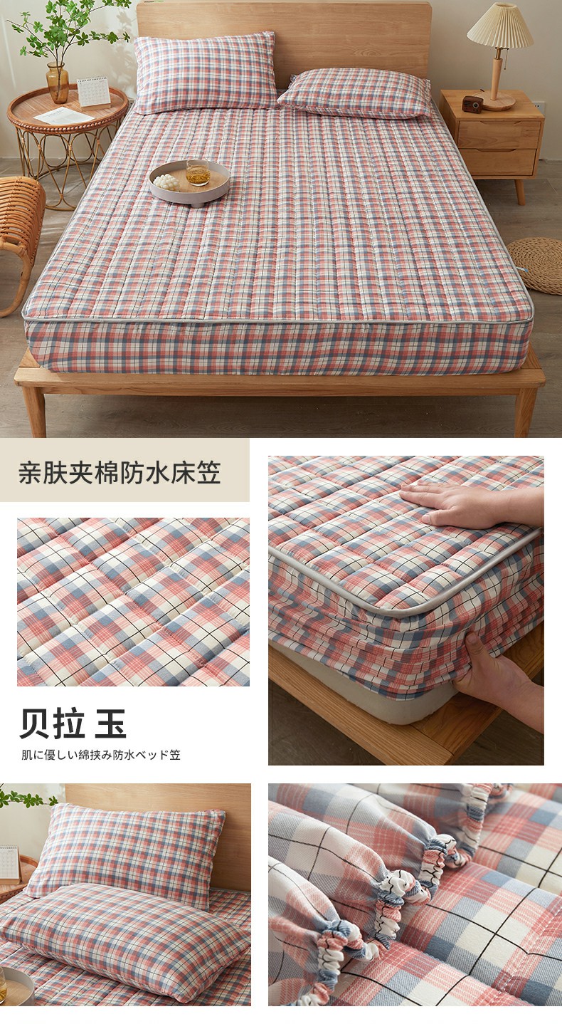 胜权家纺 2024新款亲肤夹棉格子防水床笠 贝拉 玉
