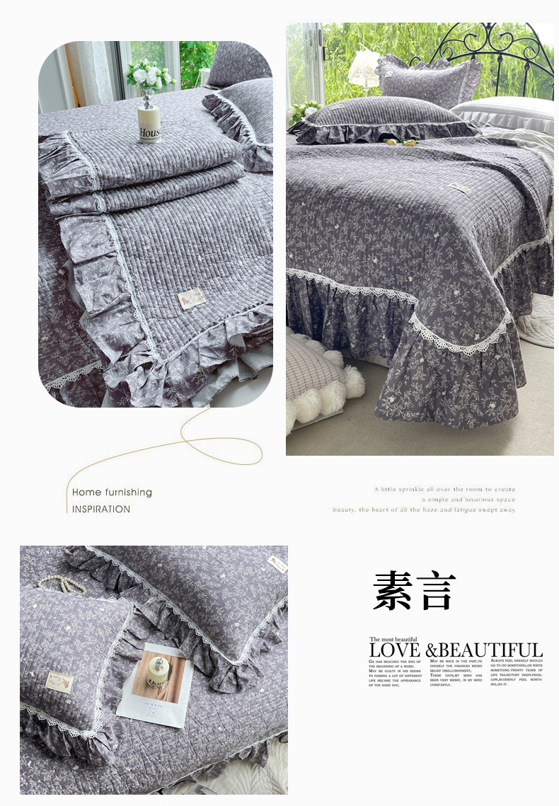 (总)菊上家纺 2023秋冬新品法式花边全棉床盖四件套,安妮紫,花千骨,小欢喜,布拉格,罗蔓莉,玛雅灰,小幸运,卡町绿,恋花影,薇薇安