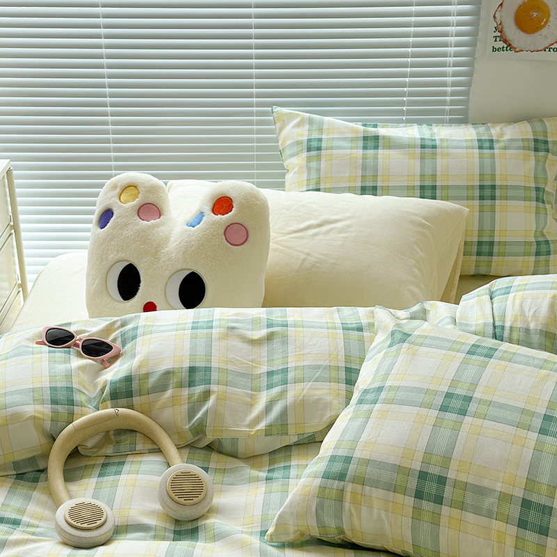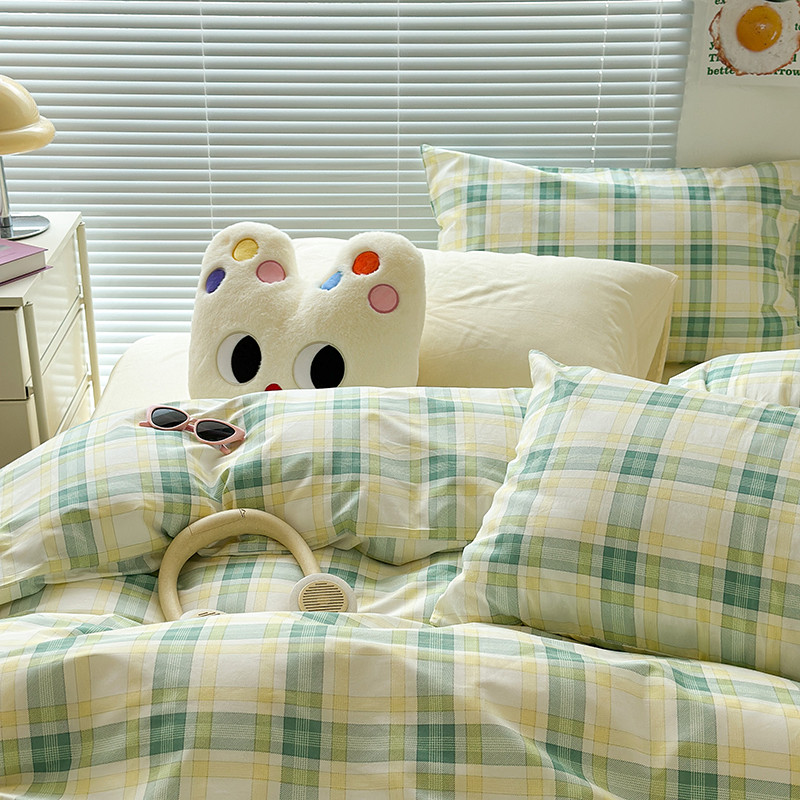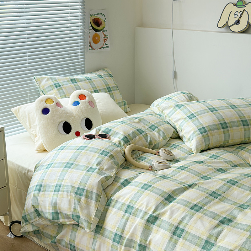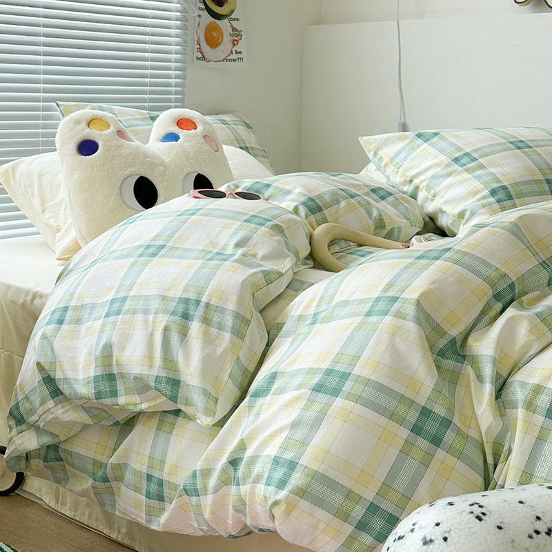 昔可 2023新款全棉ins格子混搭系列四件套黄绿格