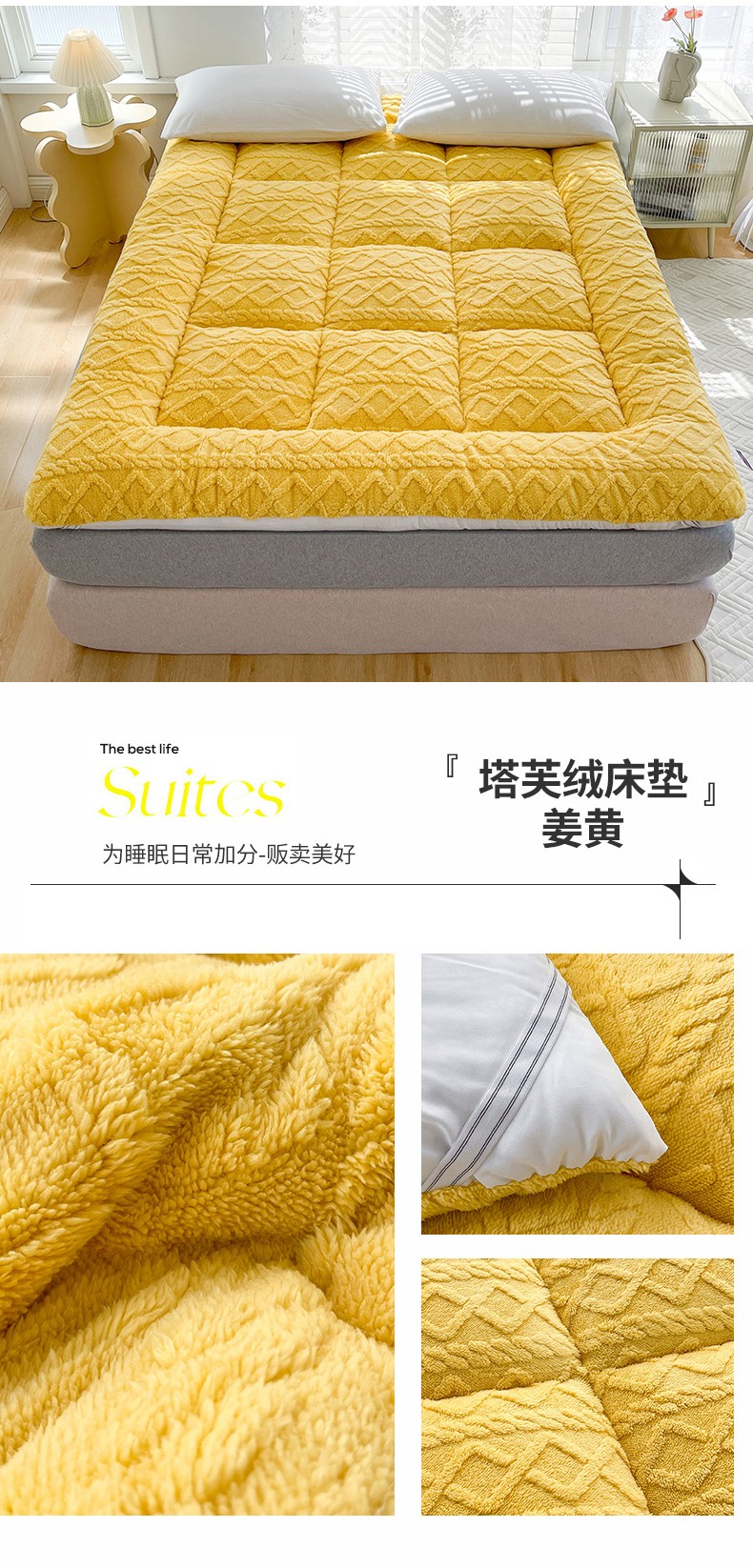 商品名称:蓝冰 2023新款塔芙绒亲肤舒适床垫 姜黄