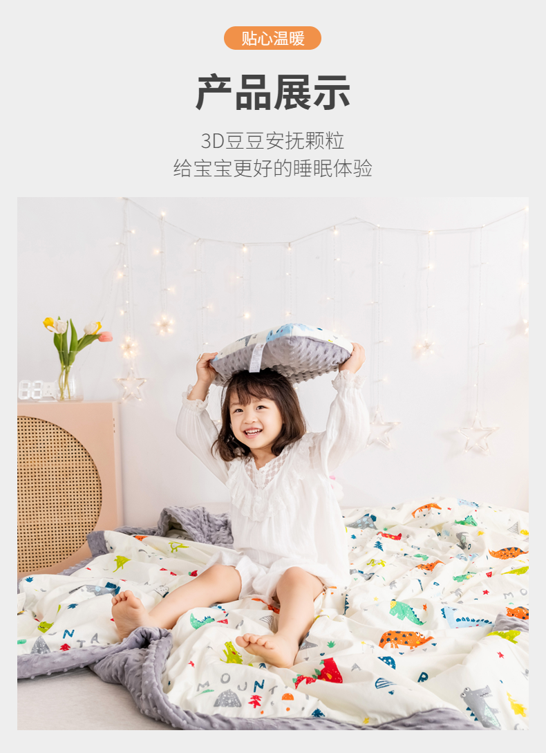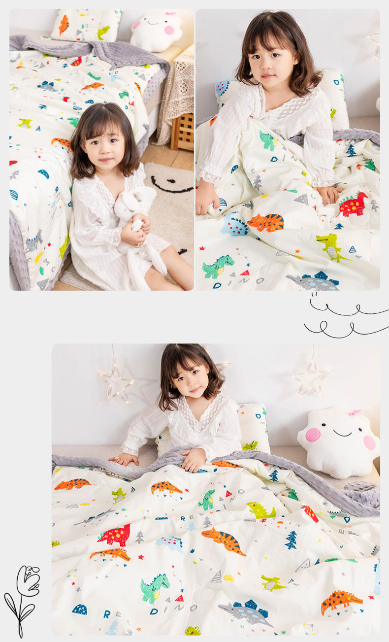 商品名称:十九色 2024新款儿童全棉豆豆被春秋被冬被婴幼儿安抚毯被子 小恐龙