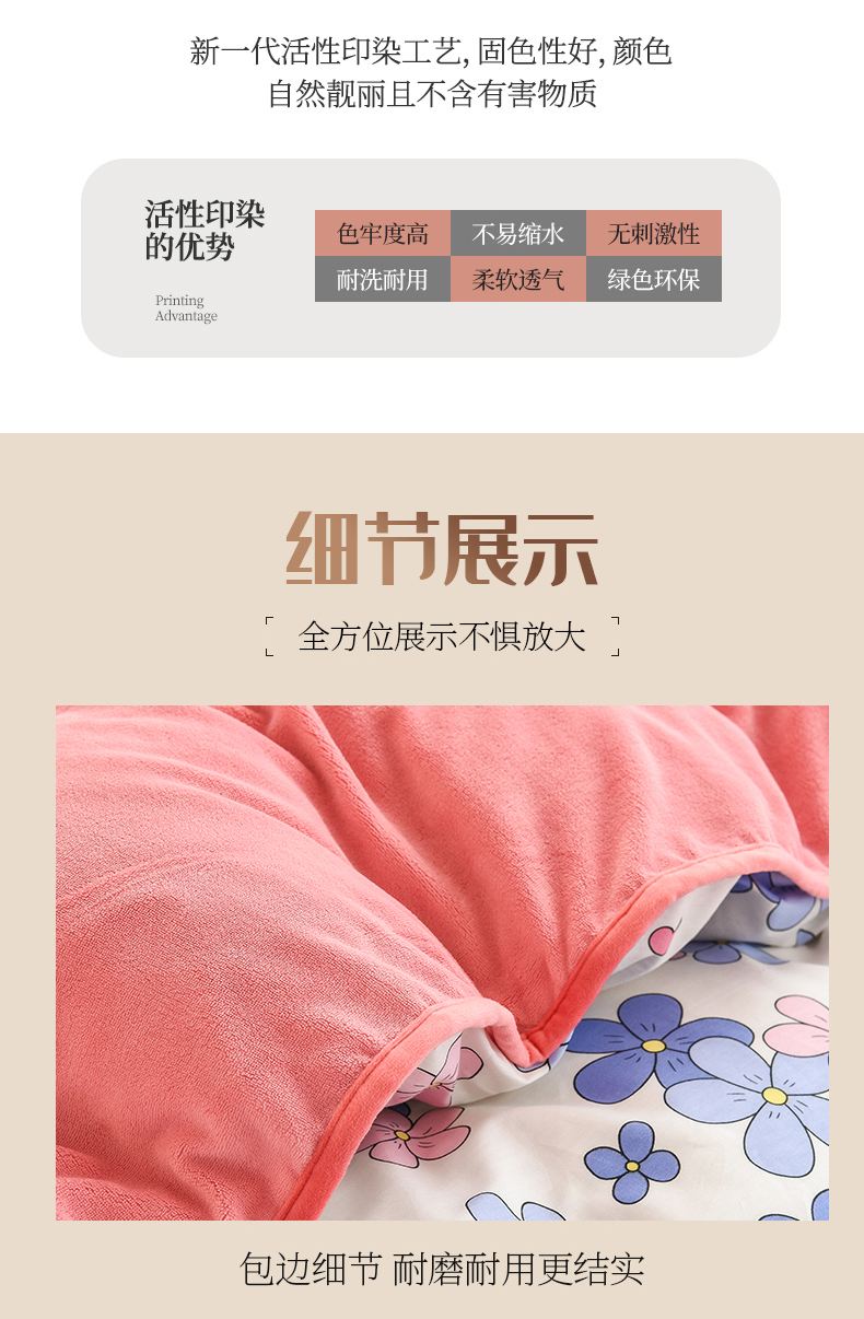 琪琪阁 2023新款A棉B绒棉加绒牛奶绒四件套单被套 宁静生活,宁静生活