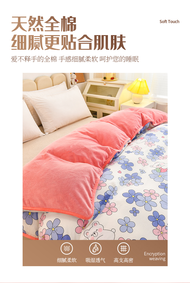 (总)琪琪阁家纺 2025新款A类全棉纯棉加牛奶绒包边款单被套四件套,宝宝巴士,草莓甜心,初恋日记,菲拉格,机智萌宠,恋恋花语,漫步太空,蘑菇屋,宁静生活,情缘,手绘浪漫,太空熊,温婉佳人,笑脸草莓,熊猫乐园,字母熊,爱达拉,爱心恐龙,贝斯特,布兰卡,春日女孩,呆萌宝贝,蒂芙娜,怪兽学院,花满城,可乐贝儿,麦穗飘香,梦蝶,蜜桃松鼠,奇妙之旅,清风烟雨,瑞迪熊,水墨嫣然,汪星人,小幸运,熊猫戏水,悦享生活,枕边语,菲尔顿,童年颂,星空宝贝,雅韵花香,云梦花都