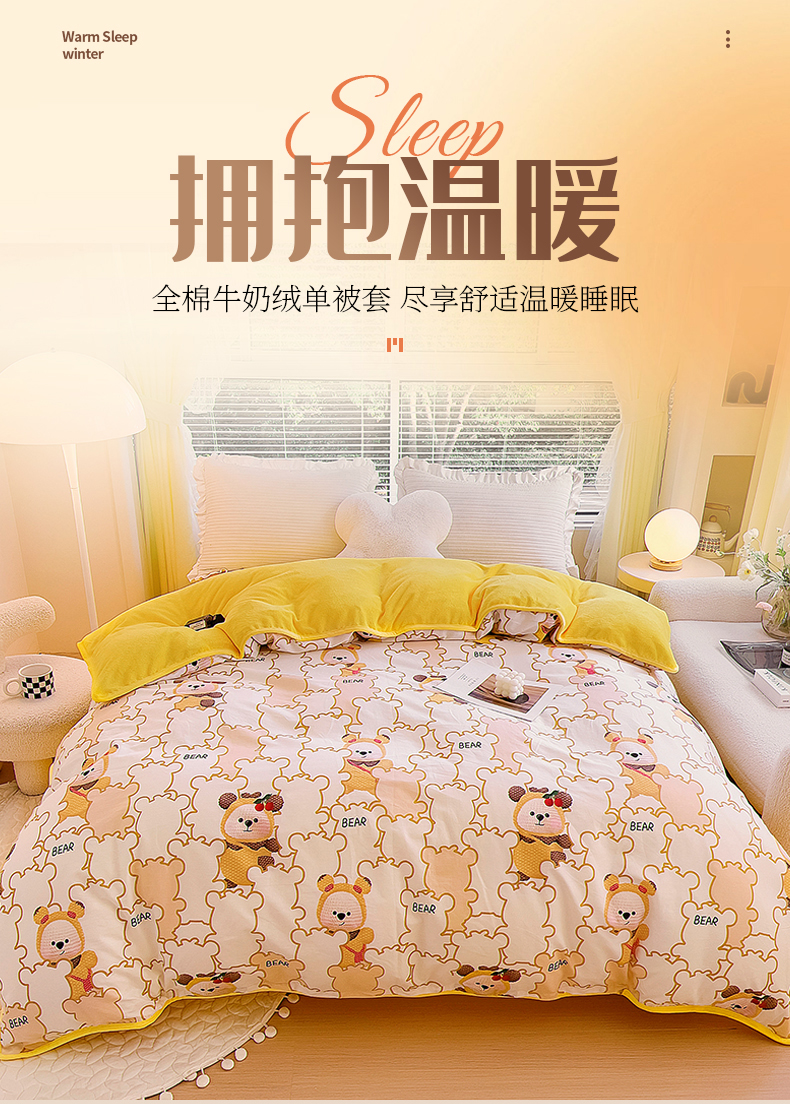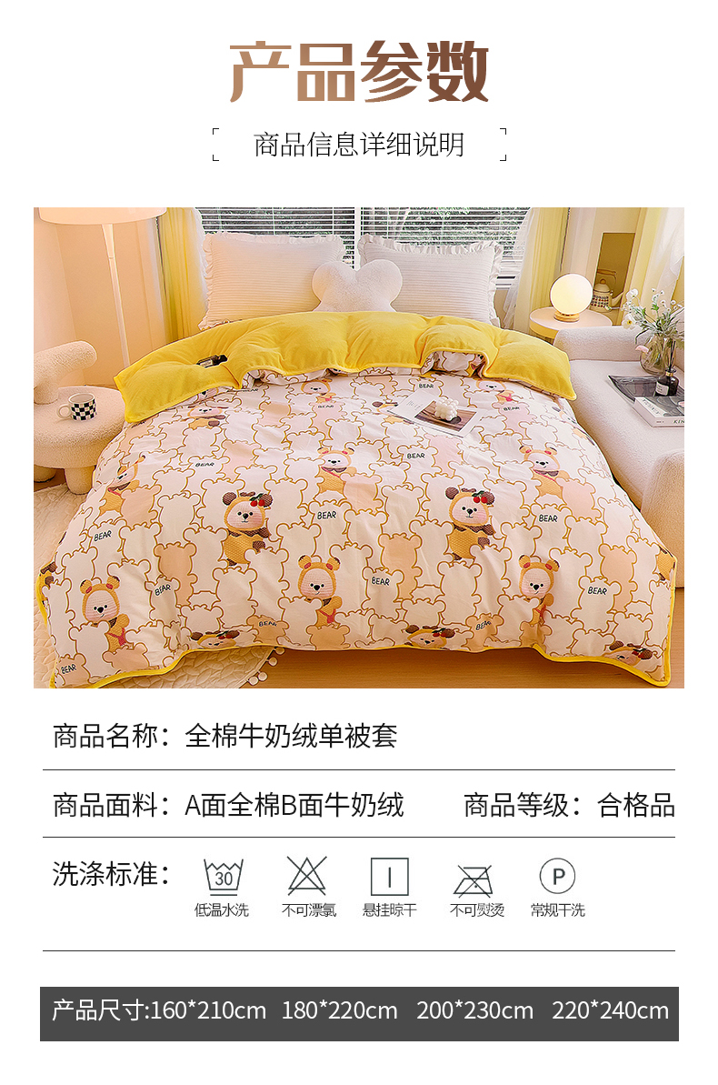 商品名称:琪琪阁 2023新款全棉加牛奶绒单被套 小可爱