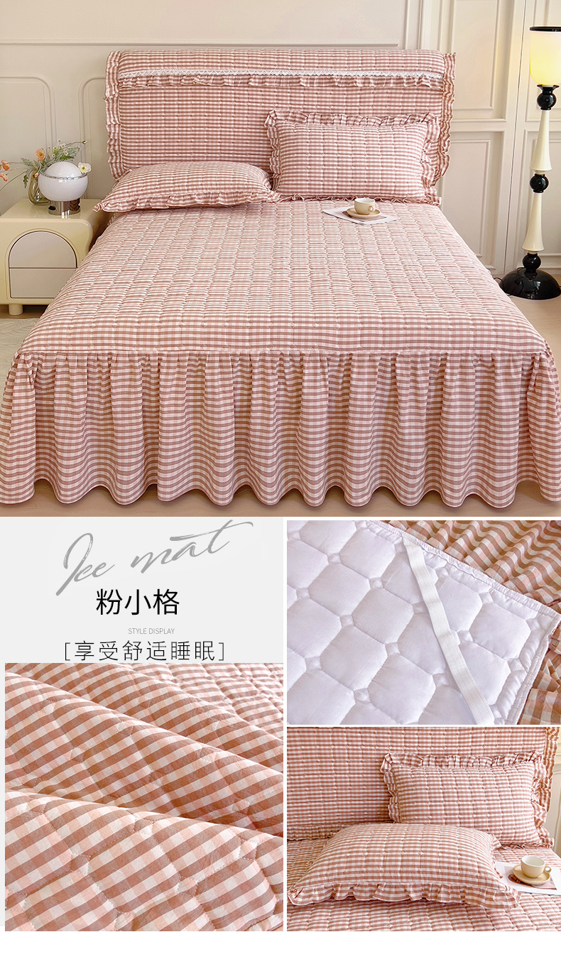 十个点 2024新款色织水洗棉-韵格系列单品夹棉床裙 粉小格