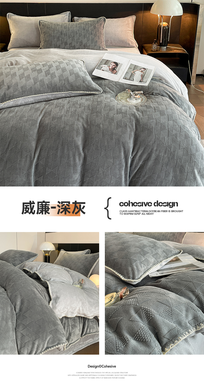 商品名称:澳梵 2023新款雕花牛奶绒贝壳边工艺四件套 威廉-深灰