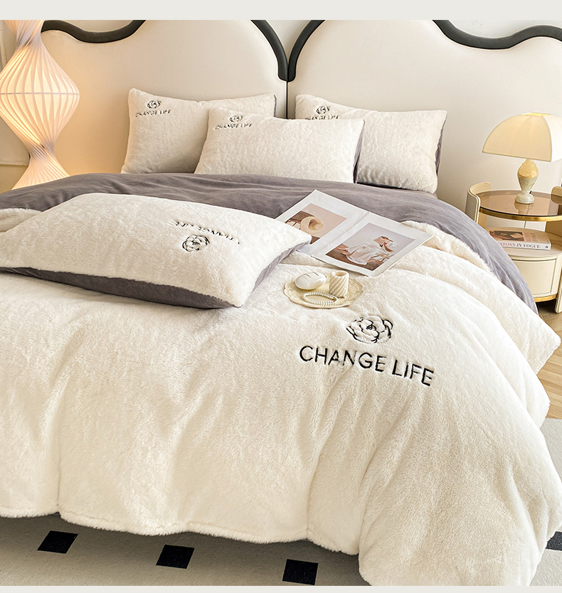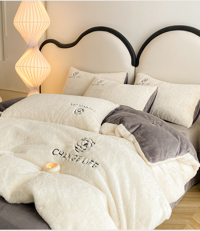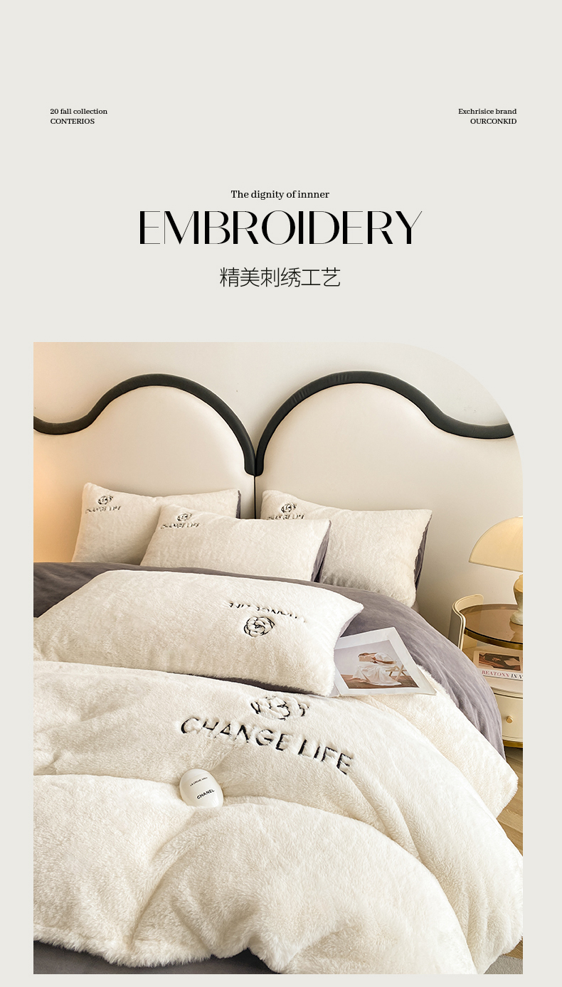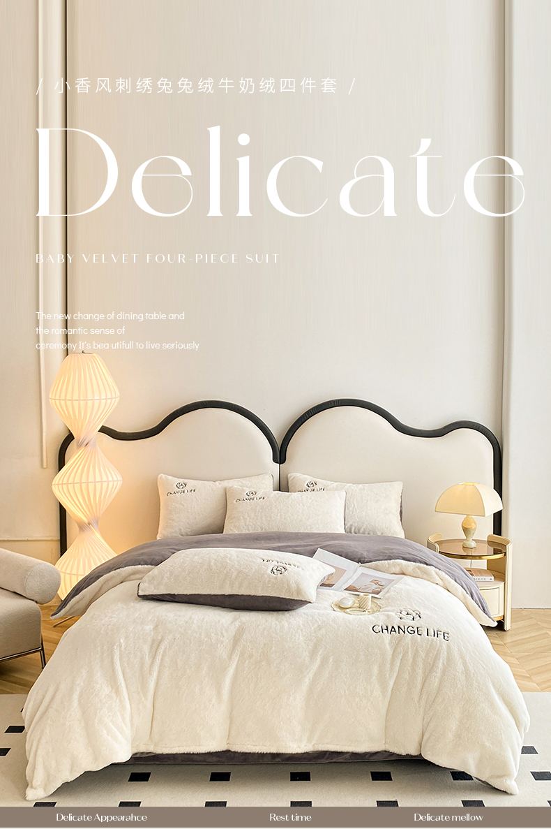 商品名称:澳梵 2023新款【山茶花】小香风刺绣兔兔绒牛奶绒四件 山茶花-雅白