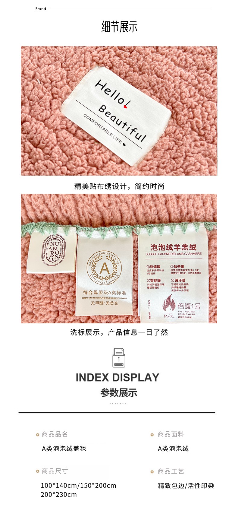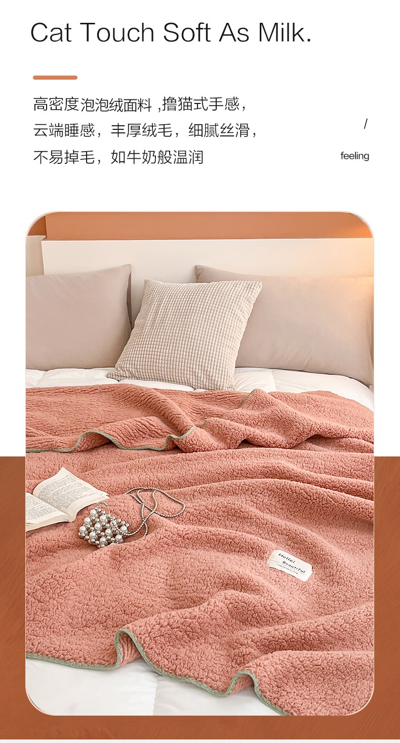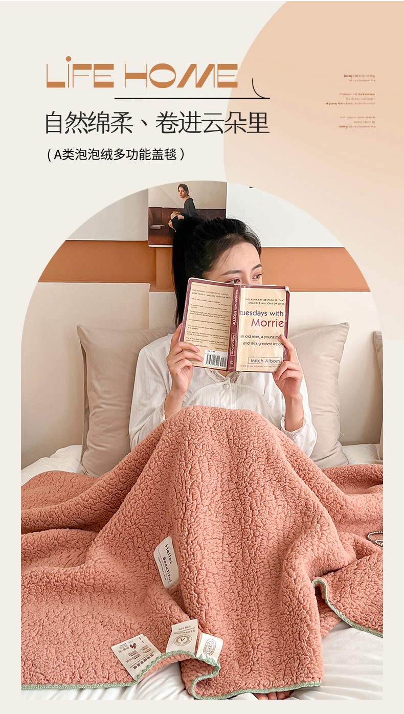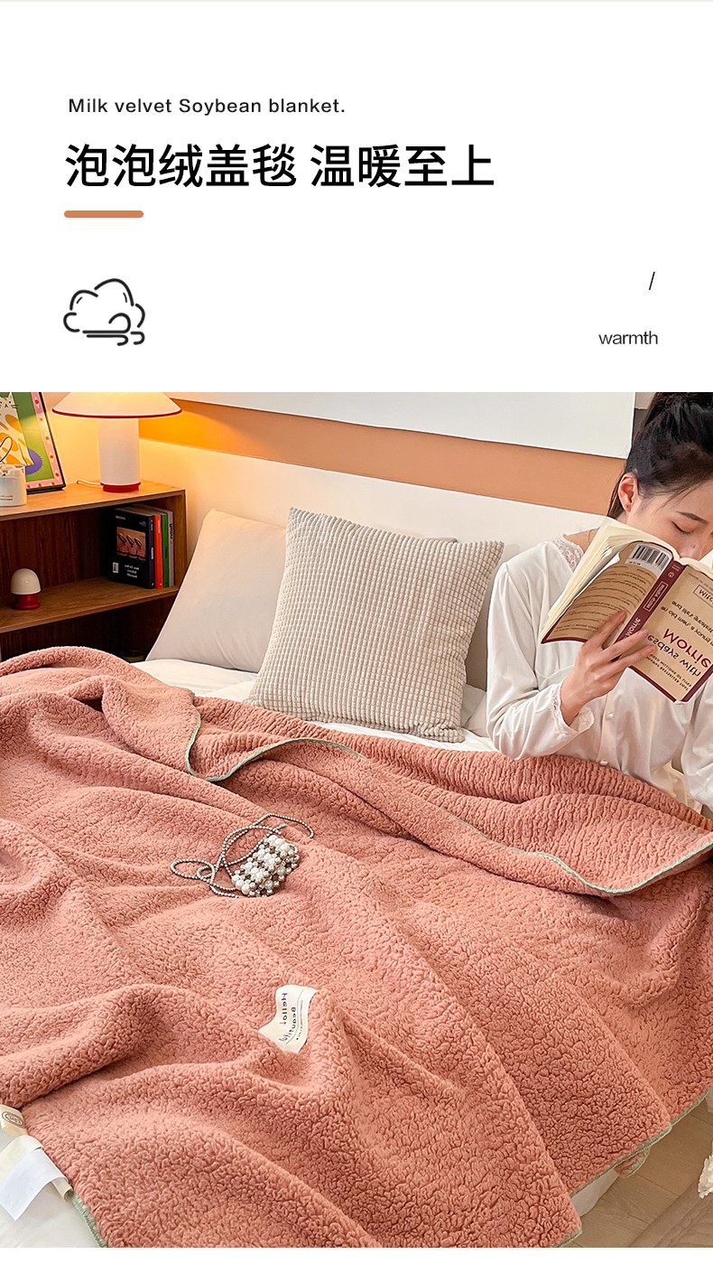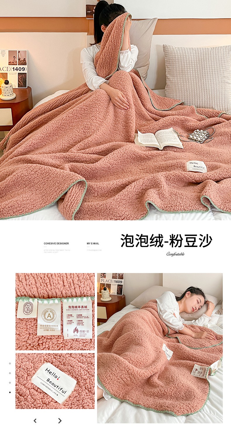 商品名称:羋多 A类泡泡绒多功能毯精致贝壳边盖毯毛毯 泡泡绒粉豆沙
