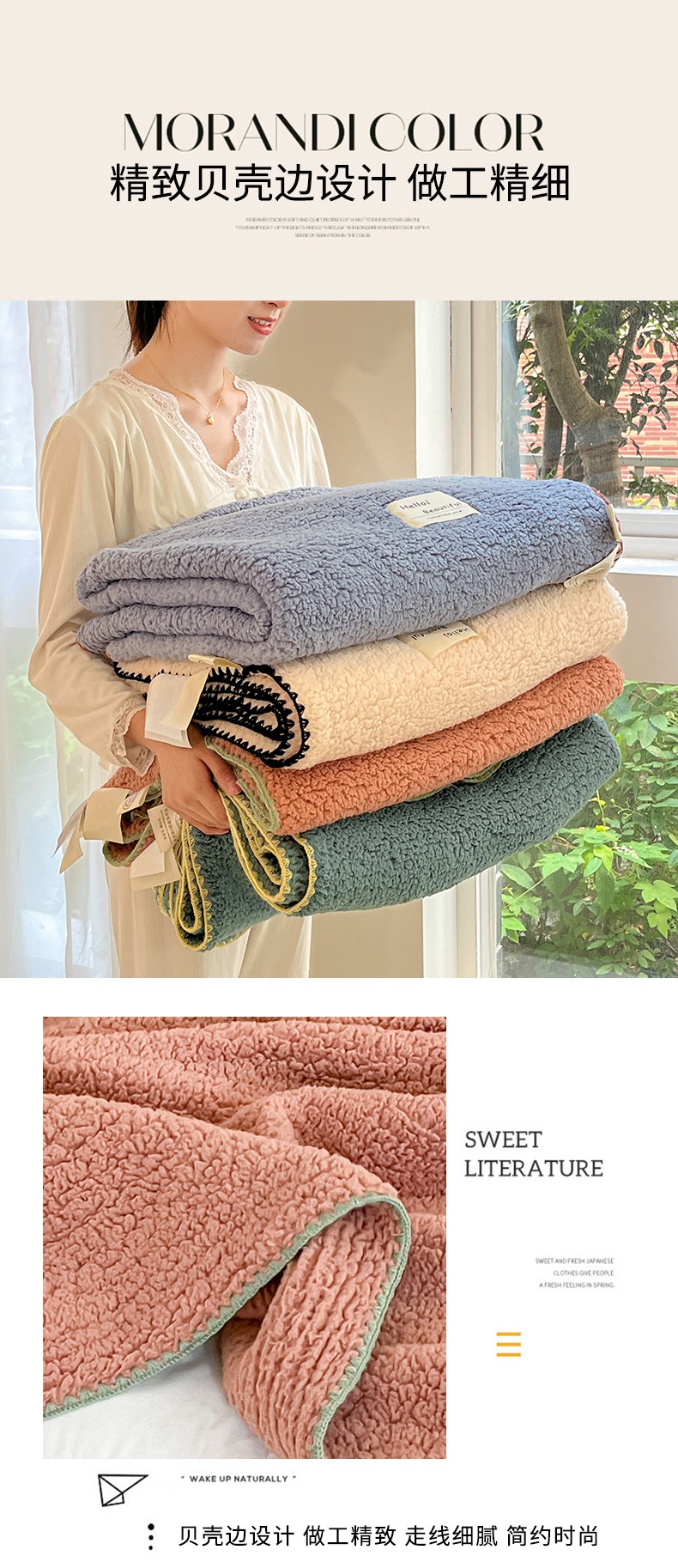 (总)穆琪 2025年新款A类泡泡绒多功能毯 精致贝壳边盖毯,粉豆沙,米月白,水雾绿,月光蓝