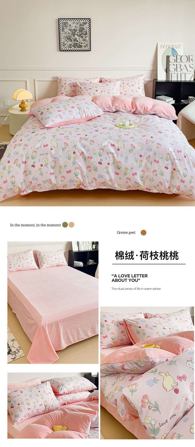 当前位置: 91家纺网 > 商品网购 > 床品套件 > 四件套 > 牛奶绒四件套 > 金鑫汇 新款A版面料+B版高克重牛奶绒四件套棉加绒-荷枝桃桃