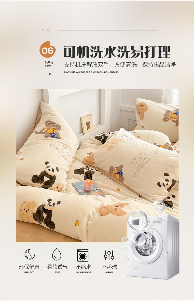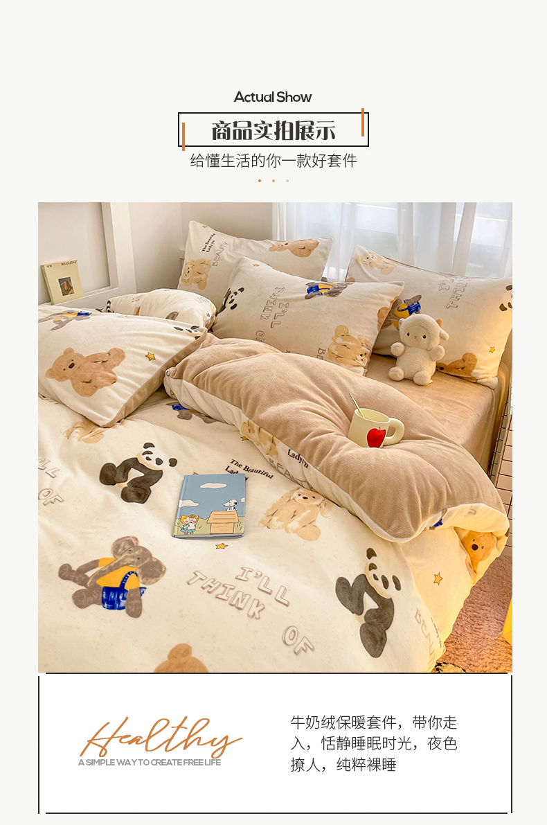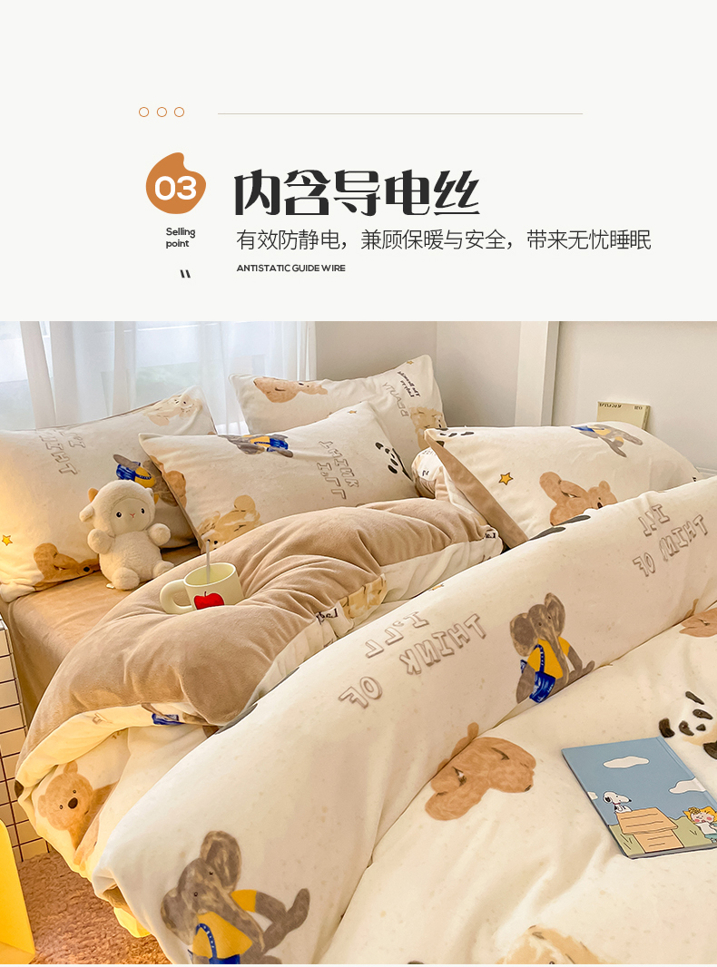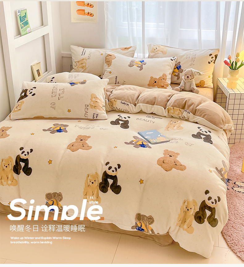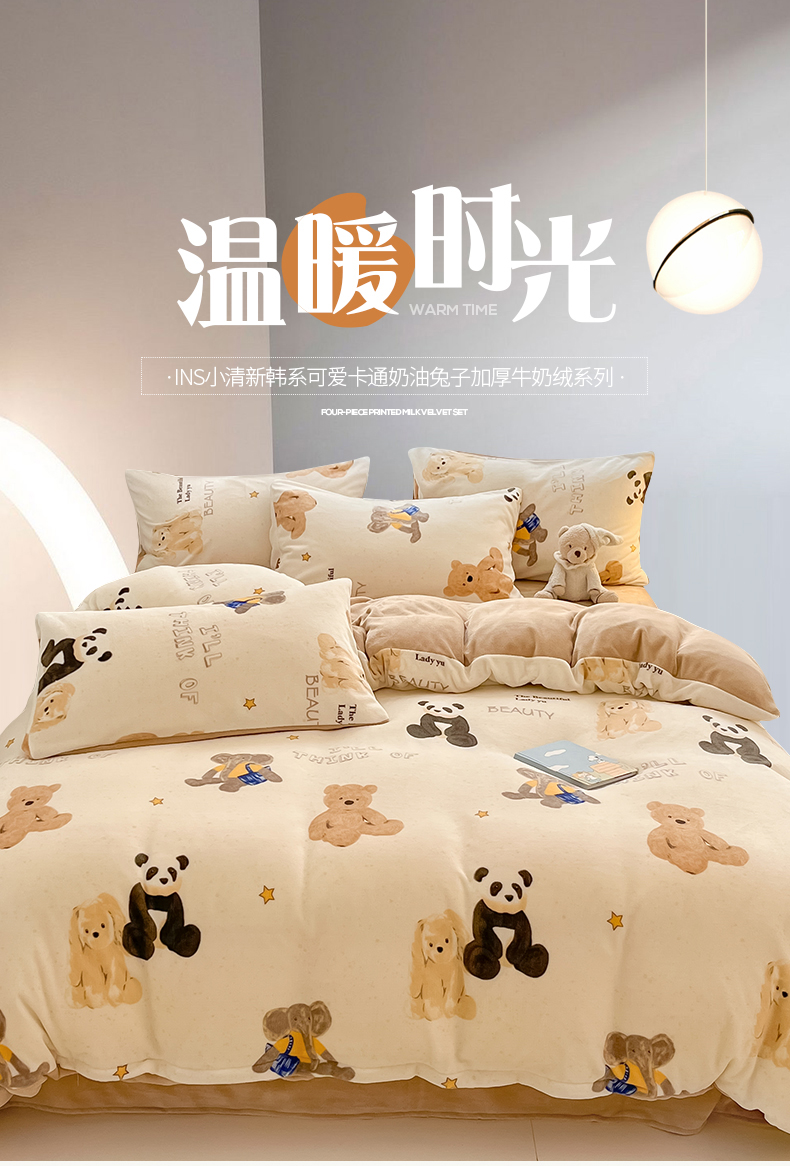 桃子 2023新款ins小清新韩系可爱卡通奶油兔子加厚牛奶绒系列四件套详情第三批 绒-口袋萌宠