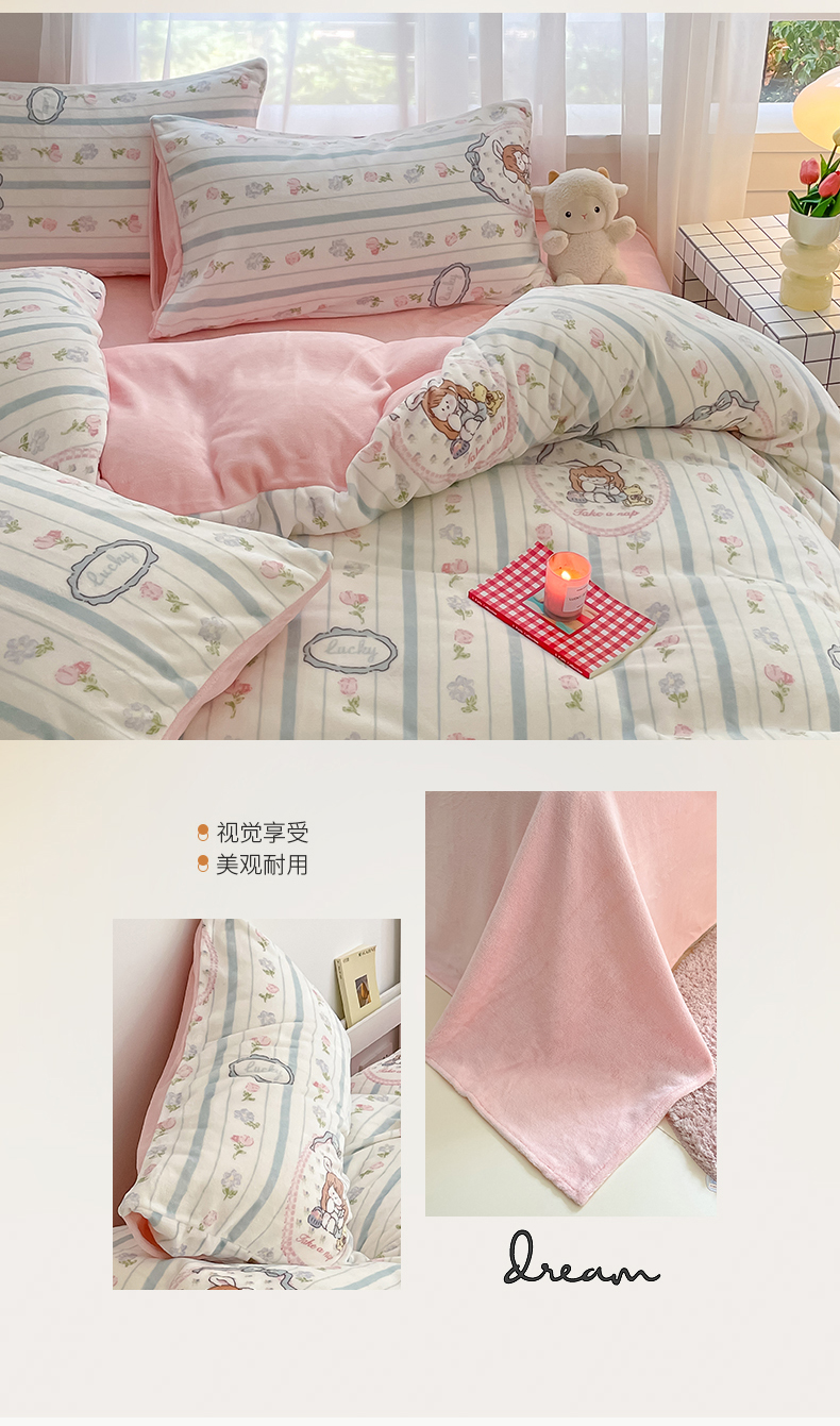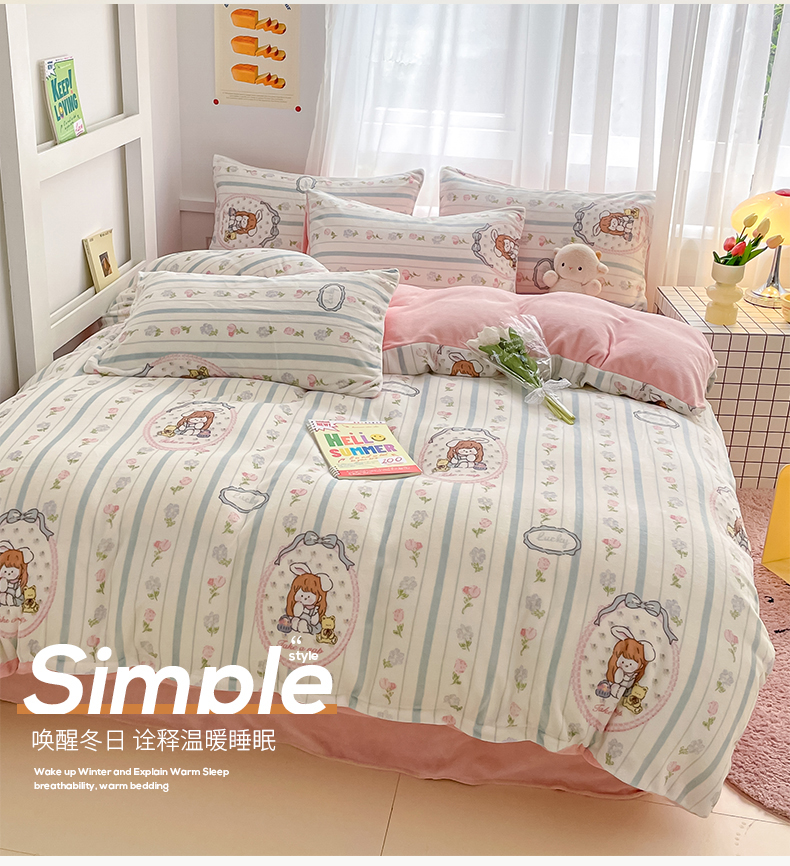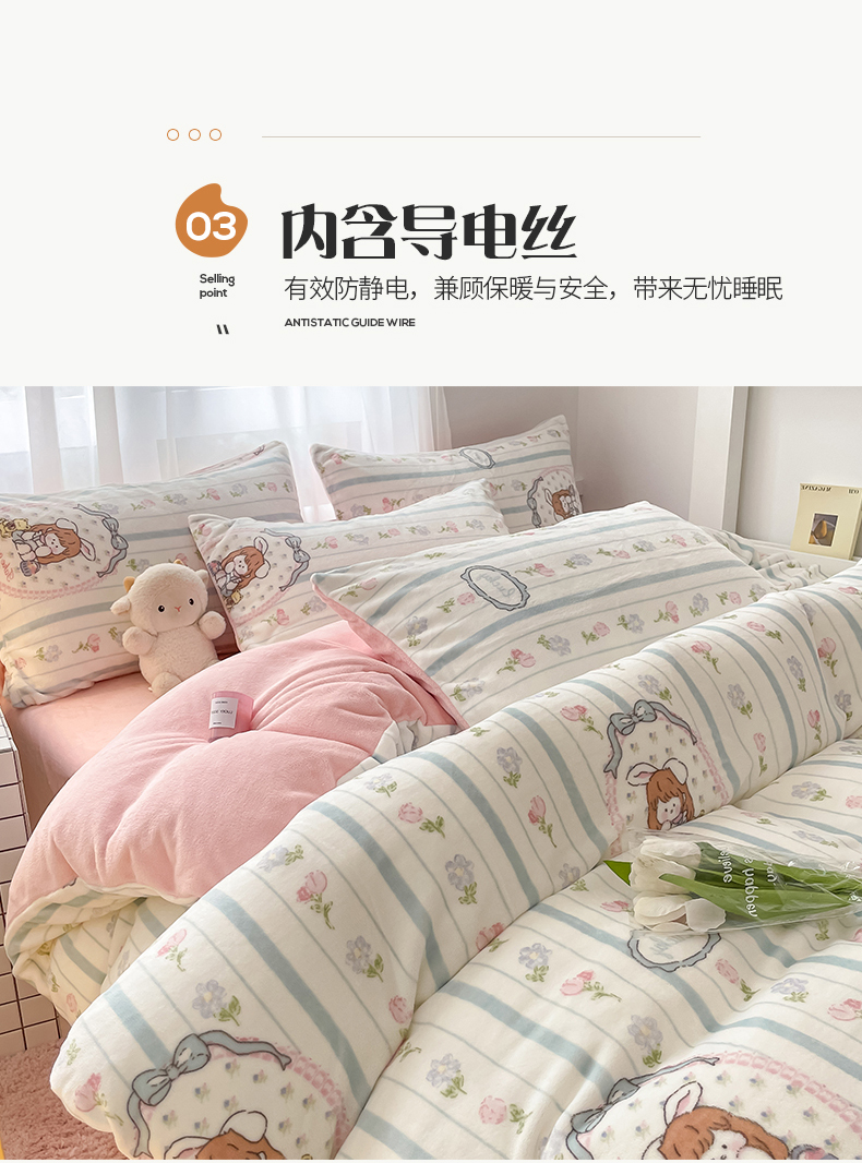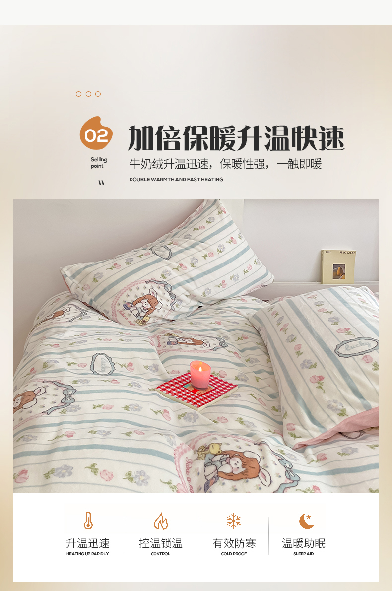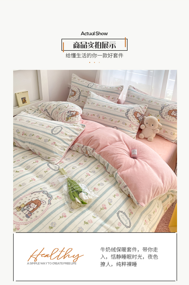 桃子 2023新款ins小清新韩系可爱卡通奶油兔子加厚牛奶绒系列四件套详情第三批 绒-唯曼