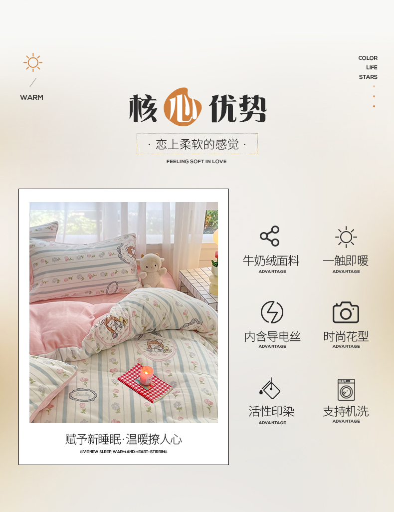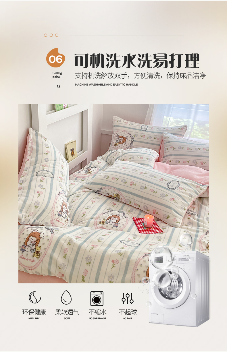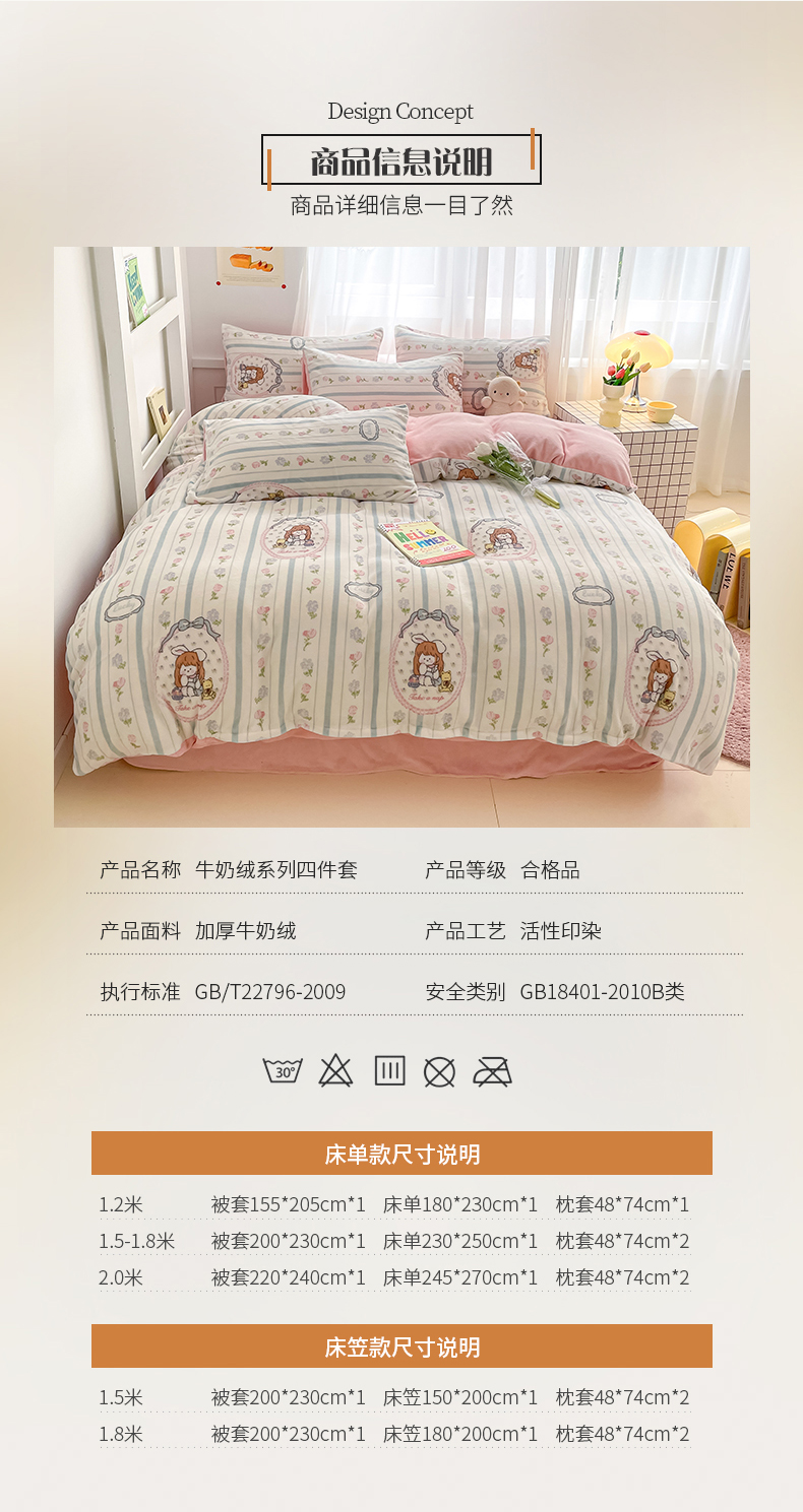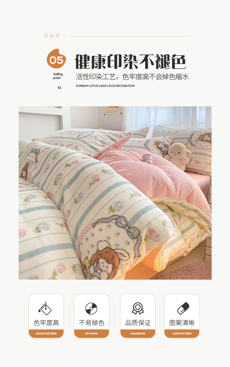 桃子 2023新款ins小清新韩系可爱卡通奶油兔子加厚牛奶绒系列四件套详情第三批 绒-唯曼