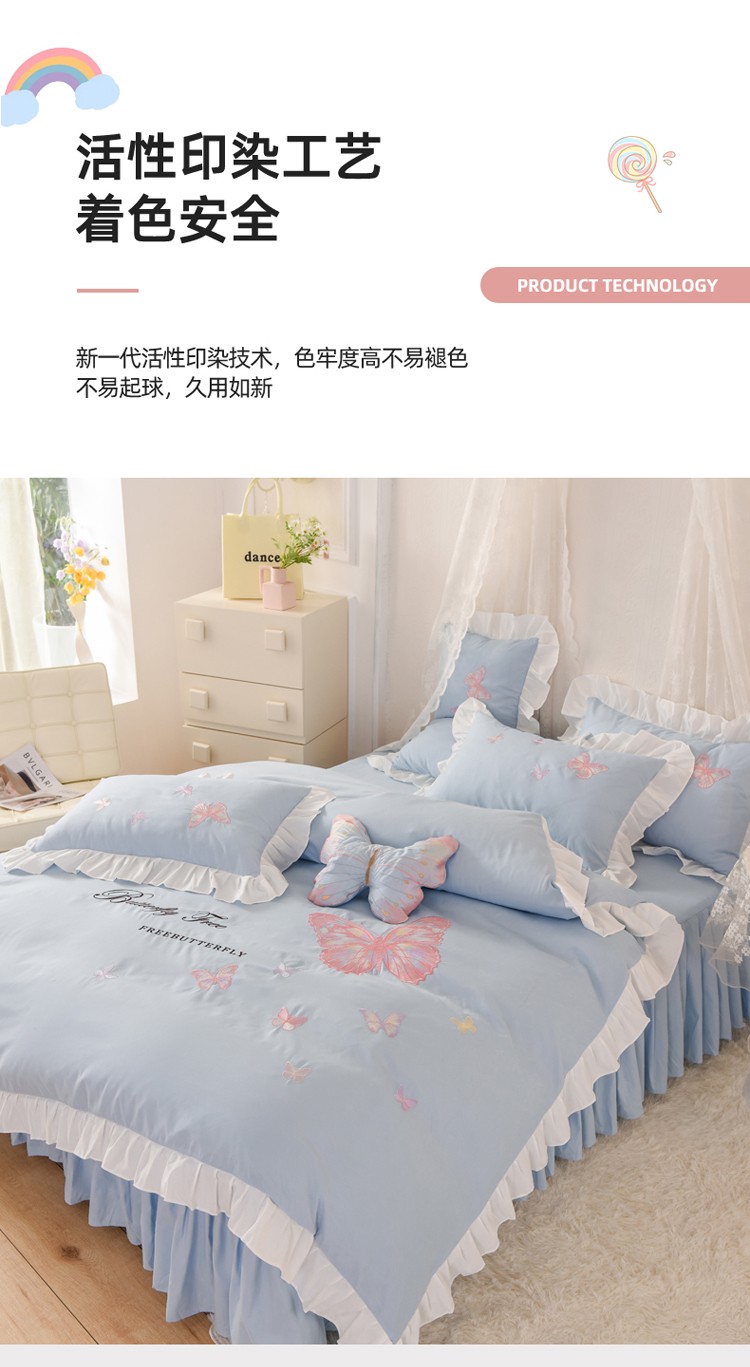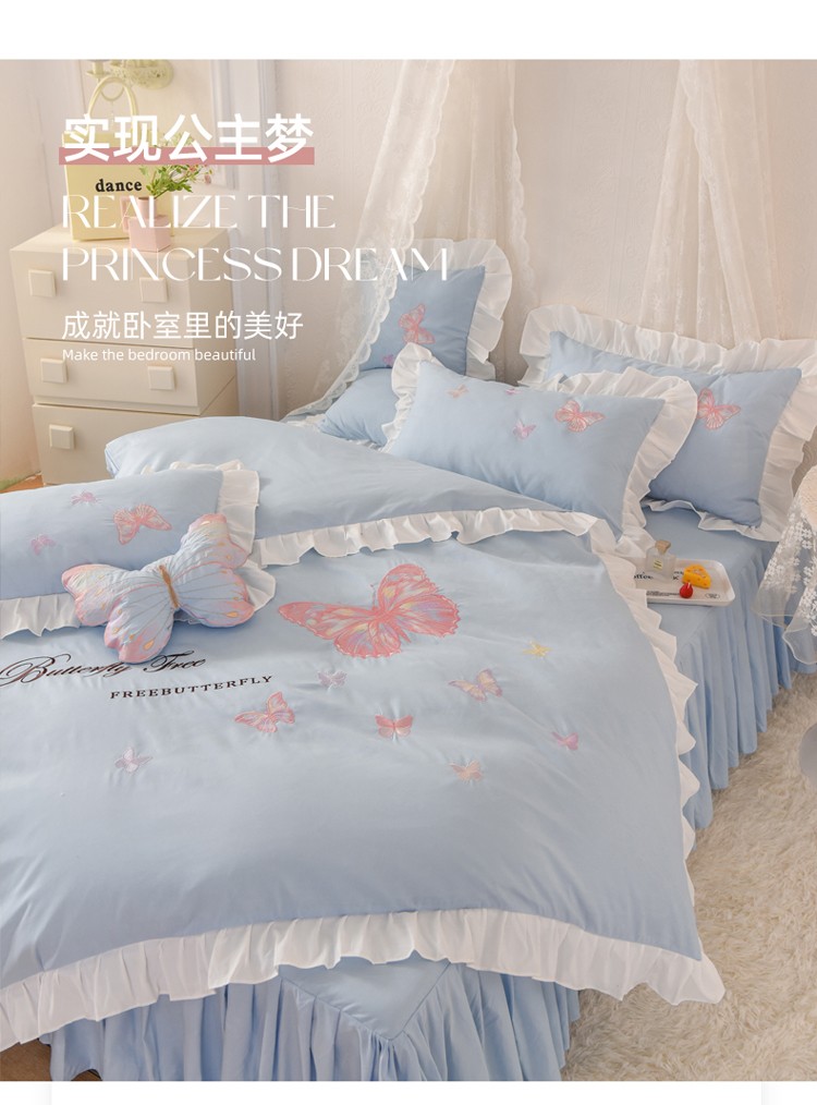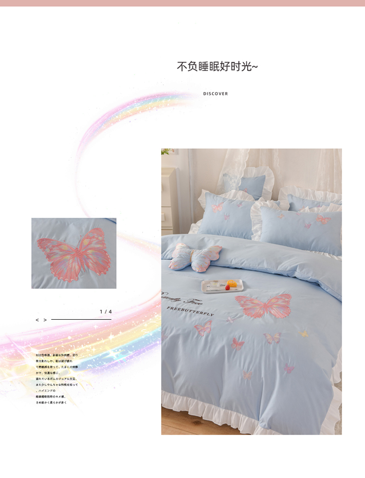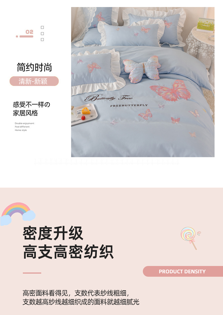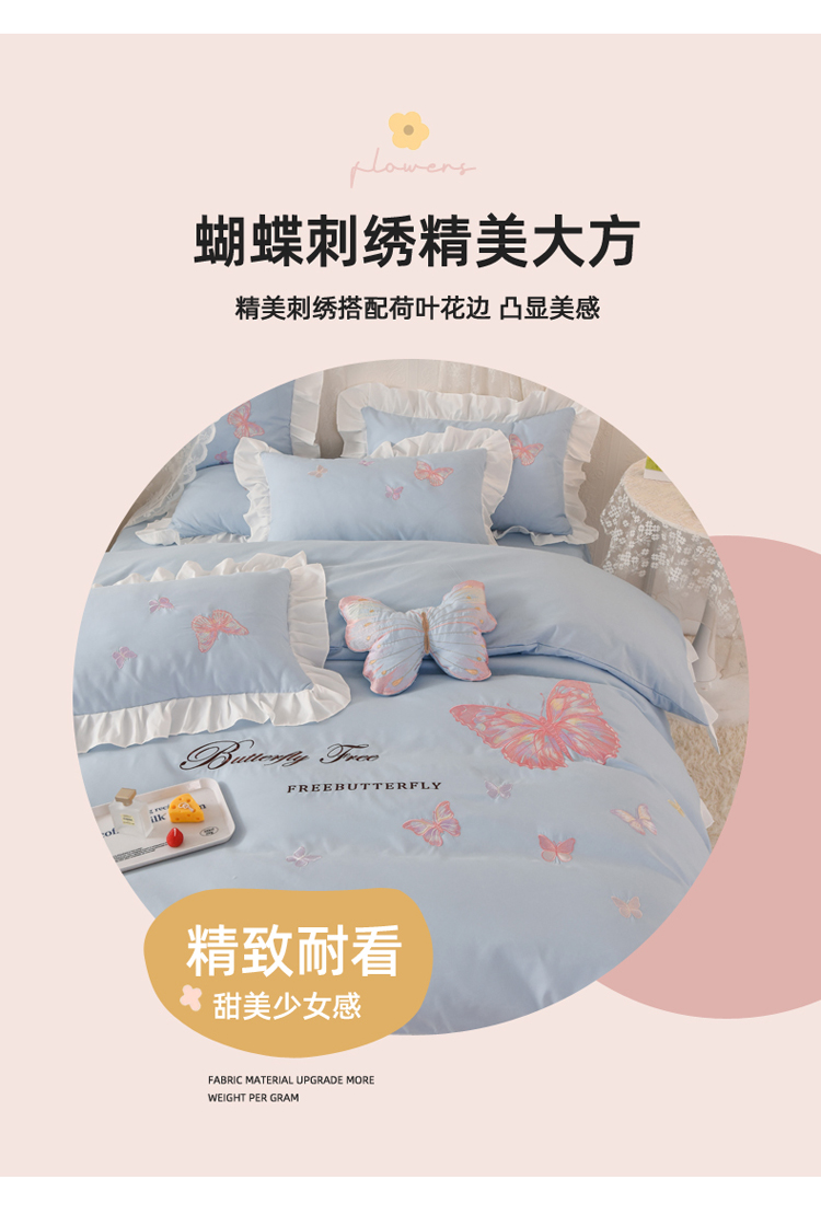 当前位置: 91家纺网 > 商品网购 > 床品套件 > 四件套 > 化纤普通四件套 > 欧冠 2023新款秋冬保暖云锦棉刺绣花边羽蝶系列四件套 羽蝶-慕蓝