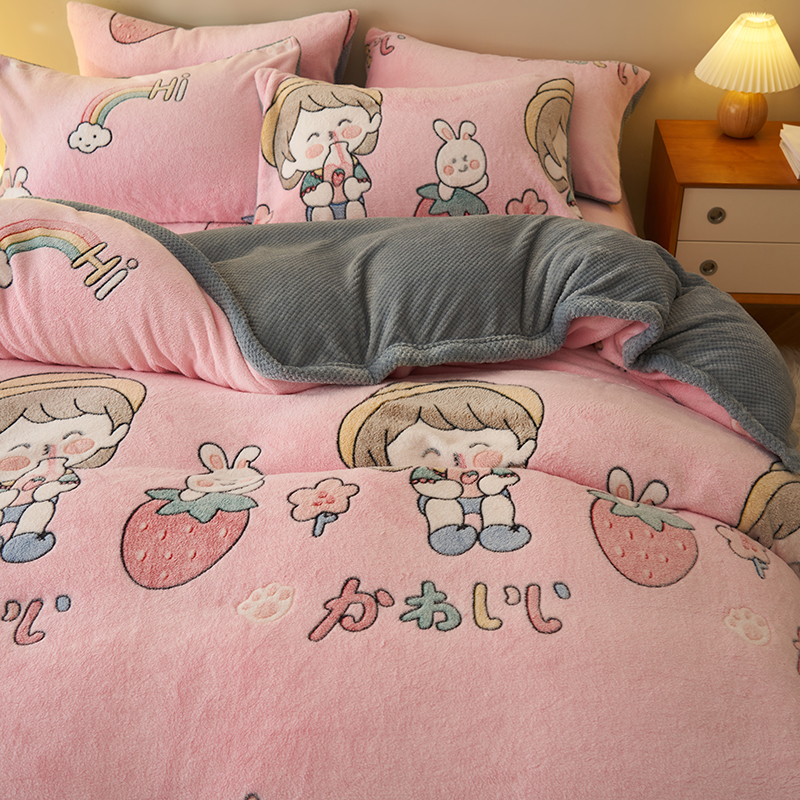当前位置: 91家纺网 > 商品网购 > 床品套件 > 四件套 > 贝贝绒四件套 > 21度C 2023新款雪花绒贝贝绒四件套 草莓娃娃