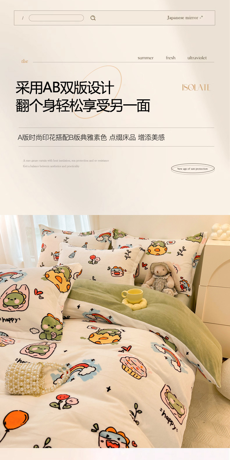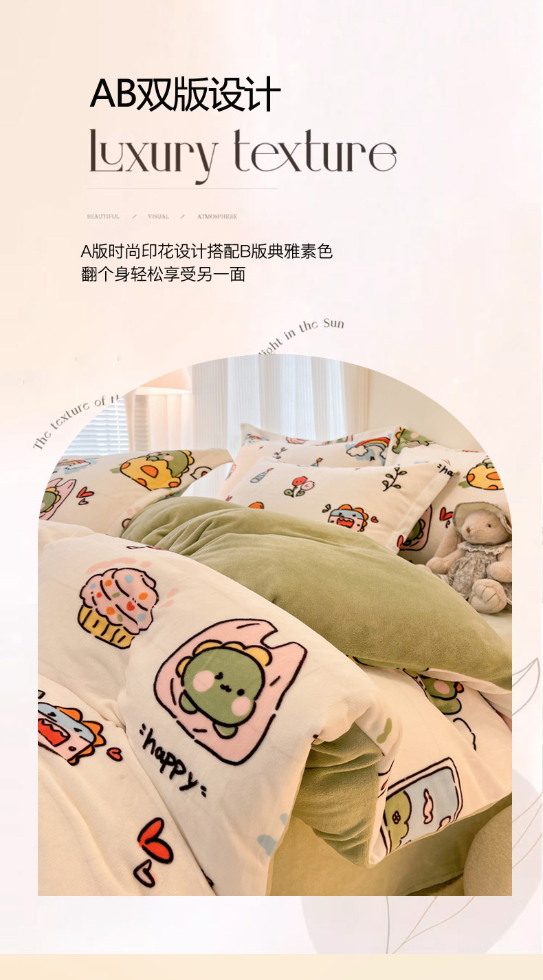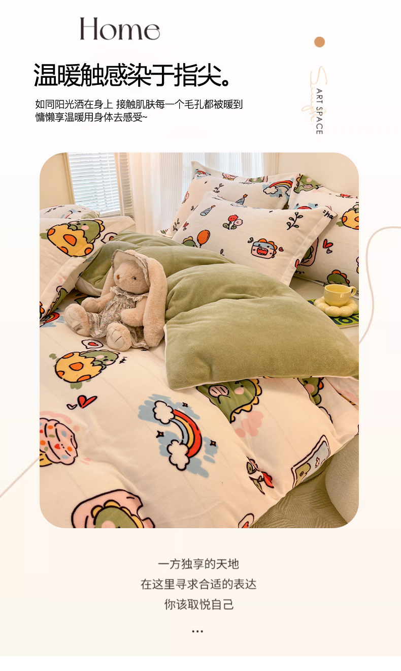 • 91家纺网 家纺一手货源 找家纺 寐居家纺 2023新款小清新印花牛奶绒单被套 假日恐龙
