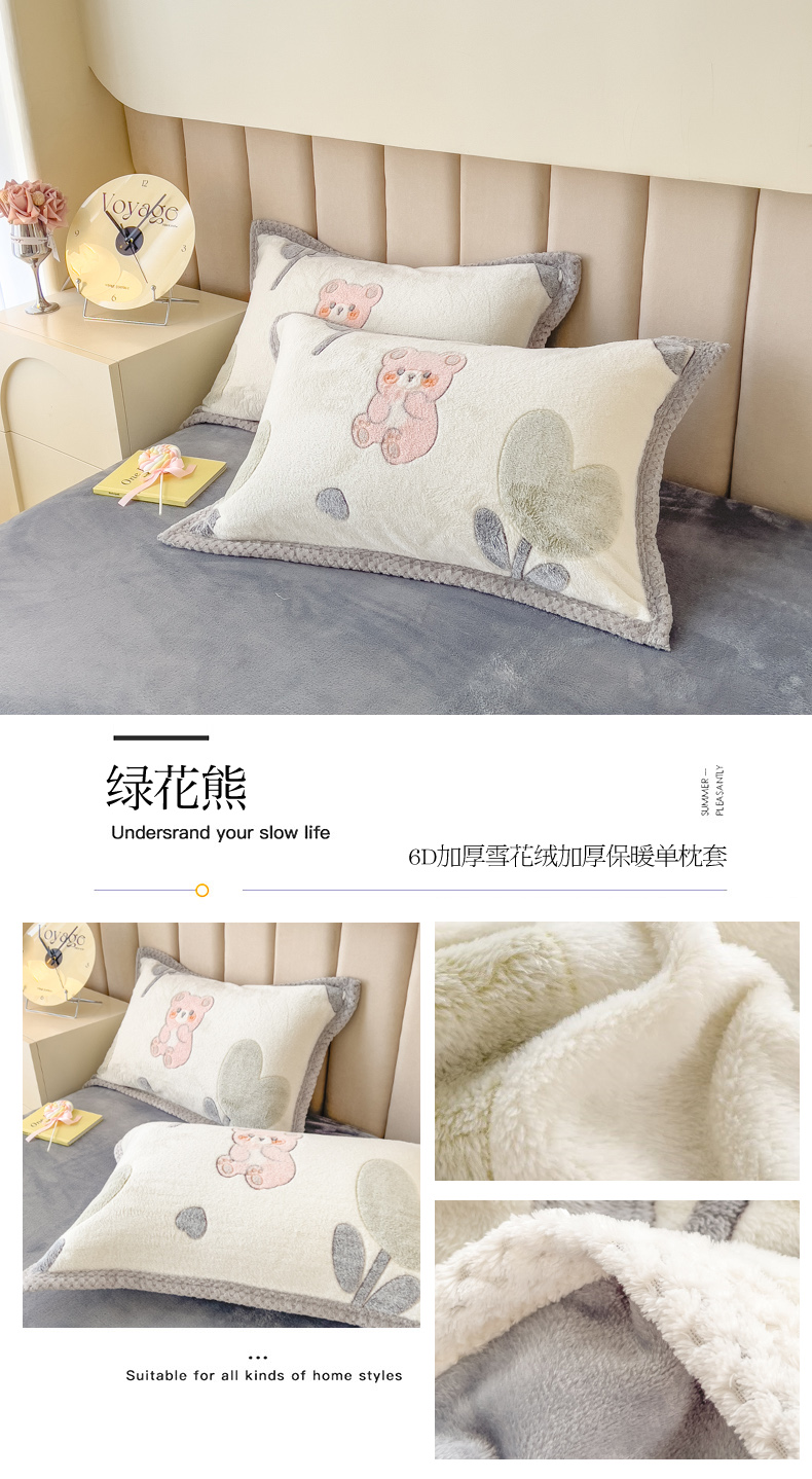 商品名称:2023新款立体6D雪花绒加厚保暖系列单枕套 48x74cm一对 绿花熊