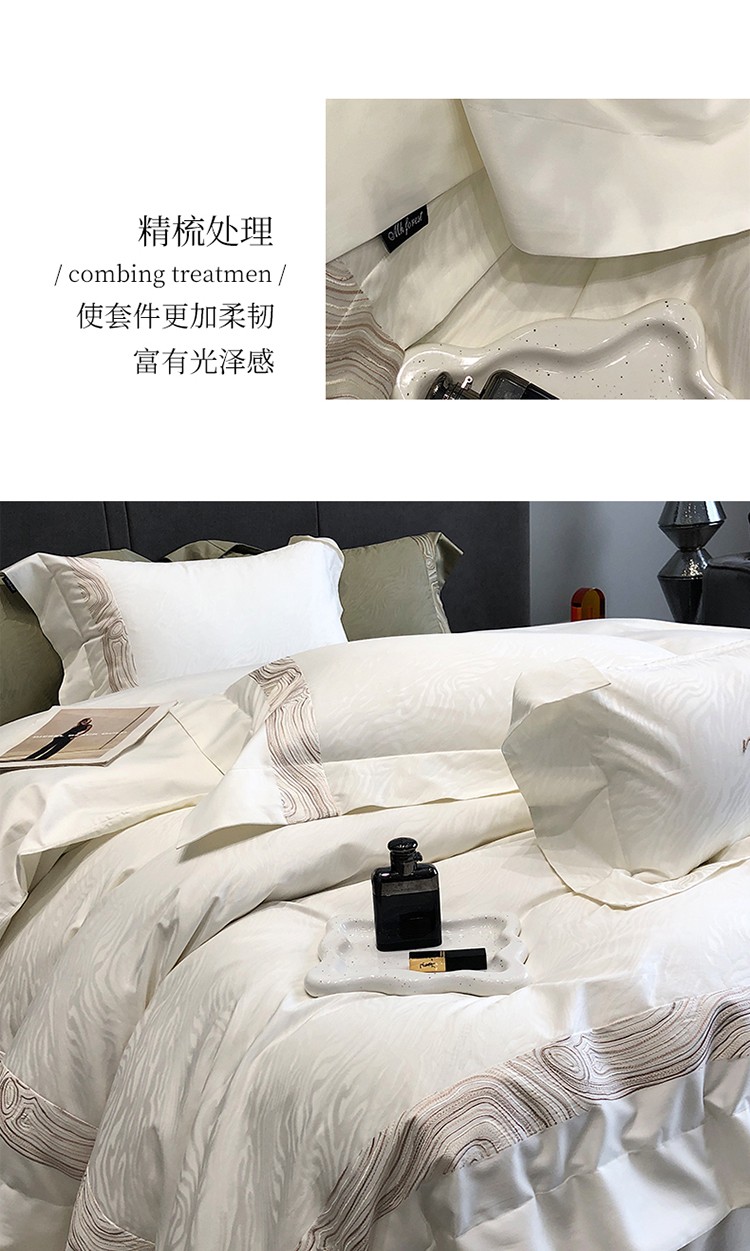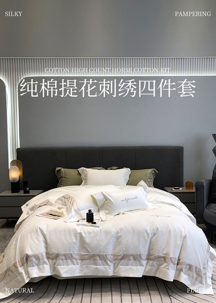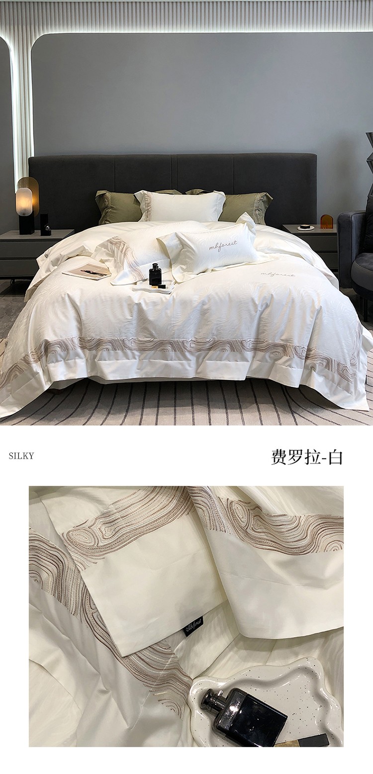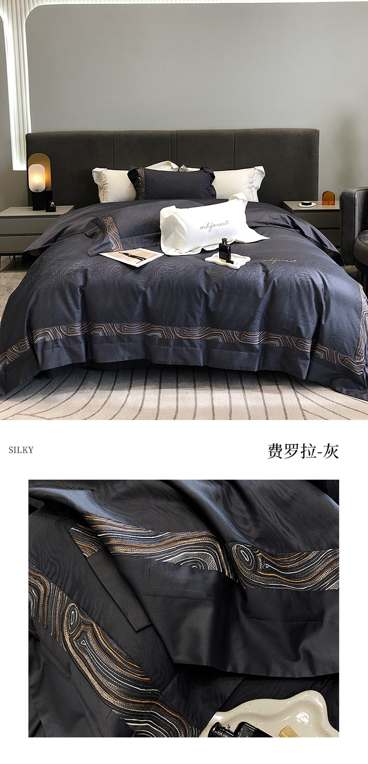 黑白森林2024款 100S支天丝棉提花四件套天丝全棉,芙拉维-裸灰,芙拉维-秋绿,圣露安-雾粉,圣露安-香槟,西西里-奶白,西西里-柔粉