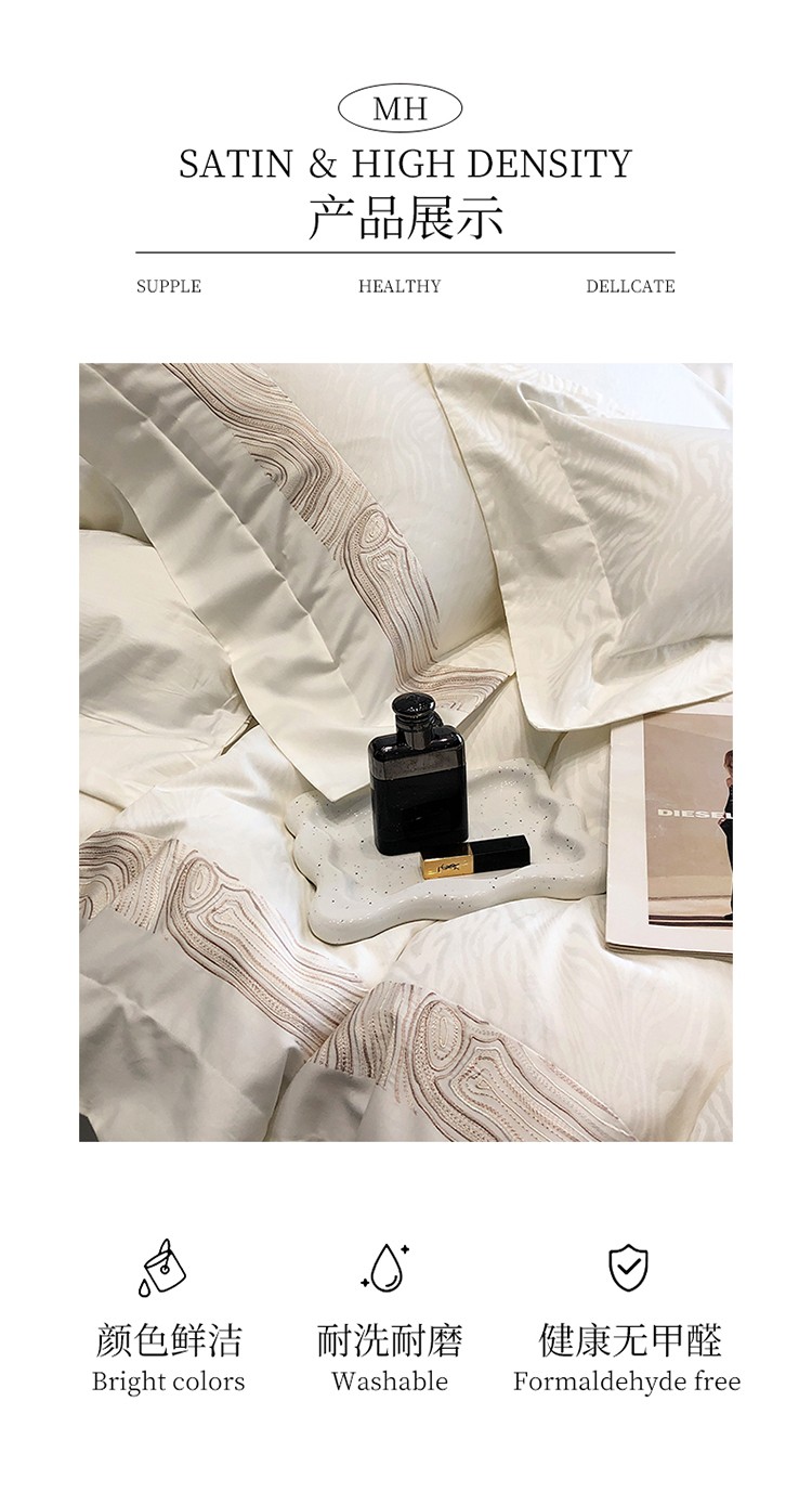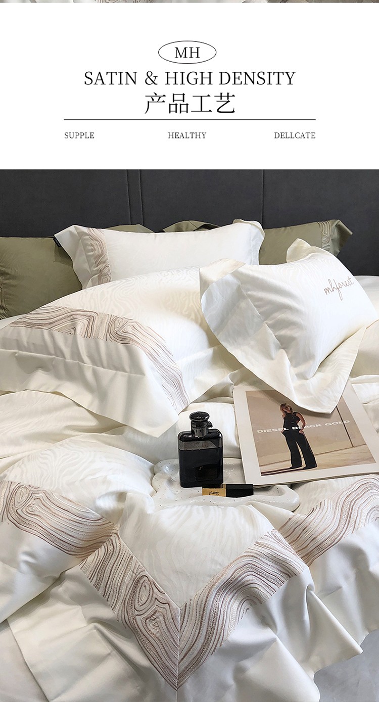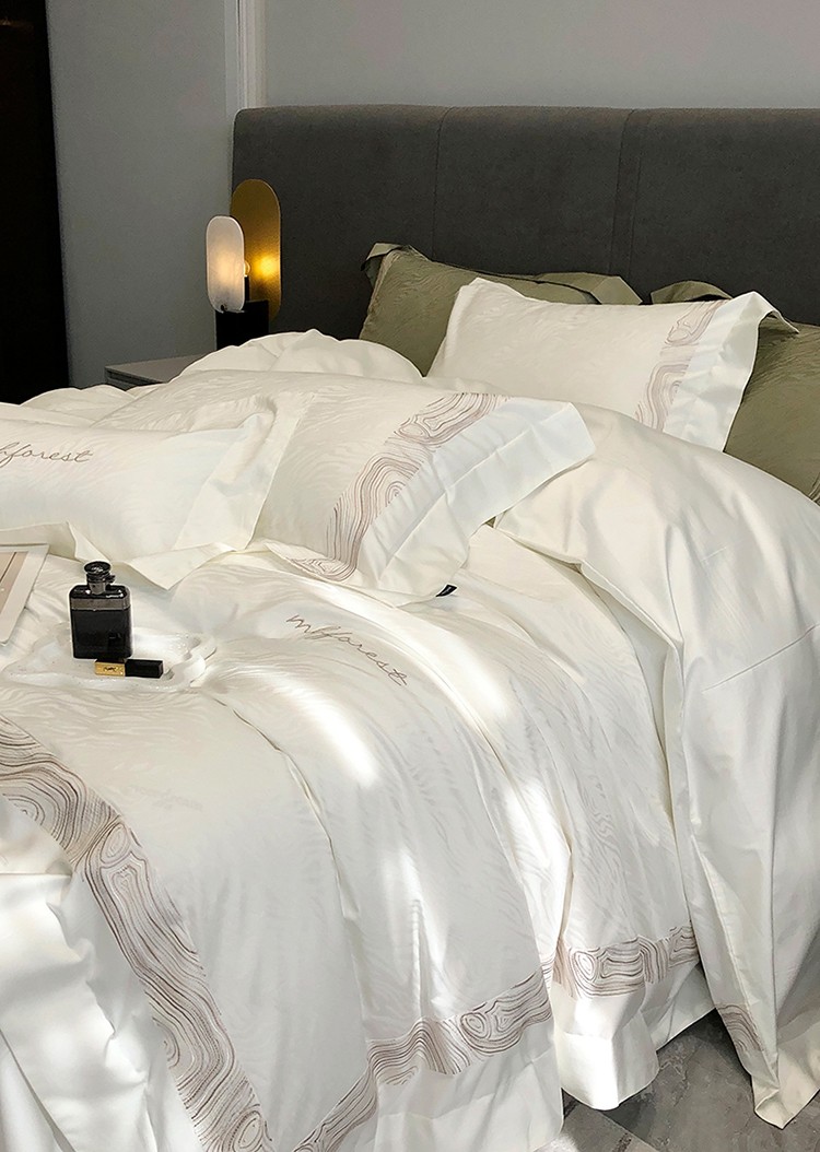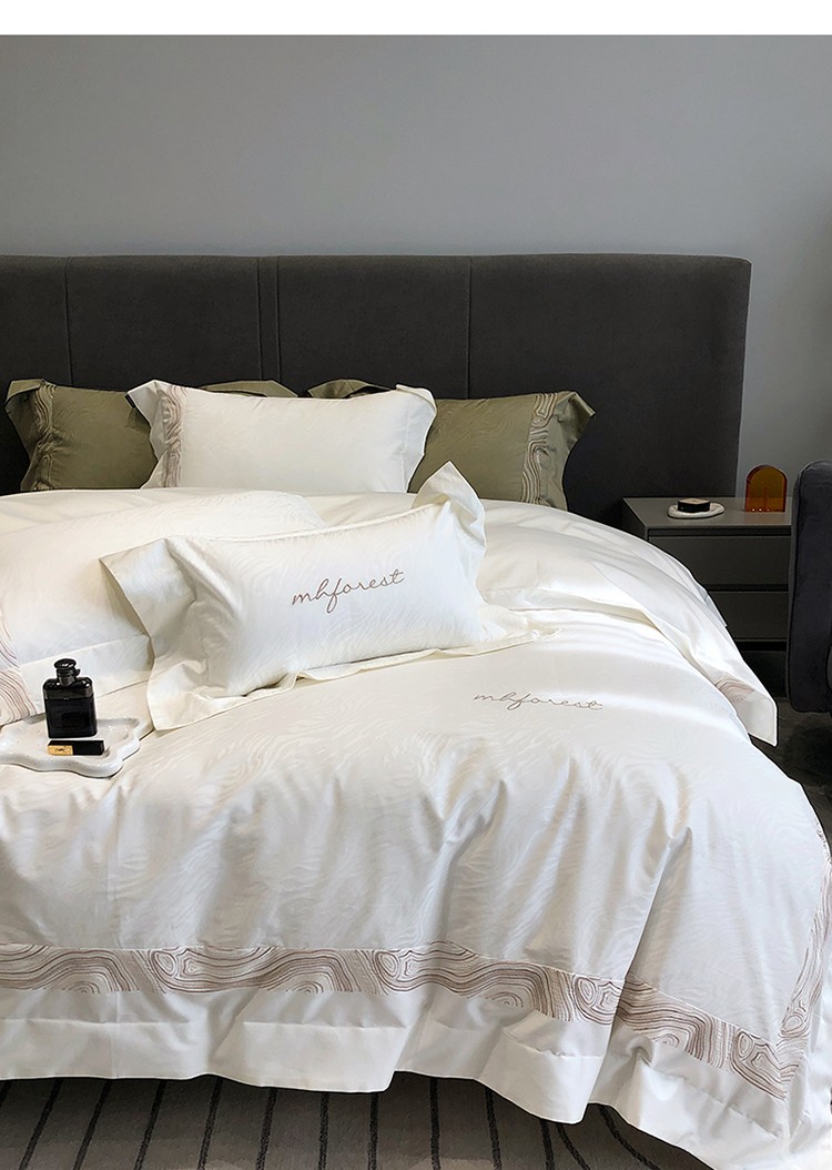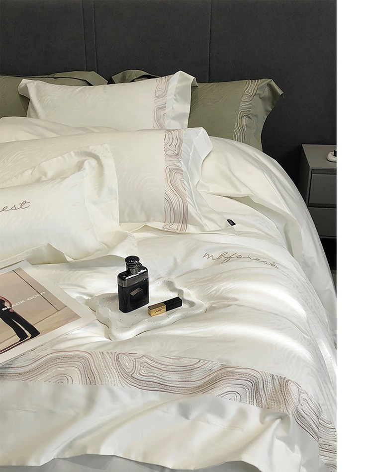 黑白森林2024款 100S支天丝棉提花四件套天丝全棉,芙拉维-裸灰,芙拉维-秋绿,圣露安-雾粉,圣露安-香槟,西西里-奶白,西西里-柔粉
