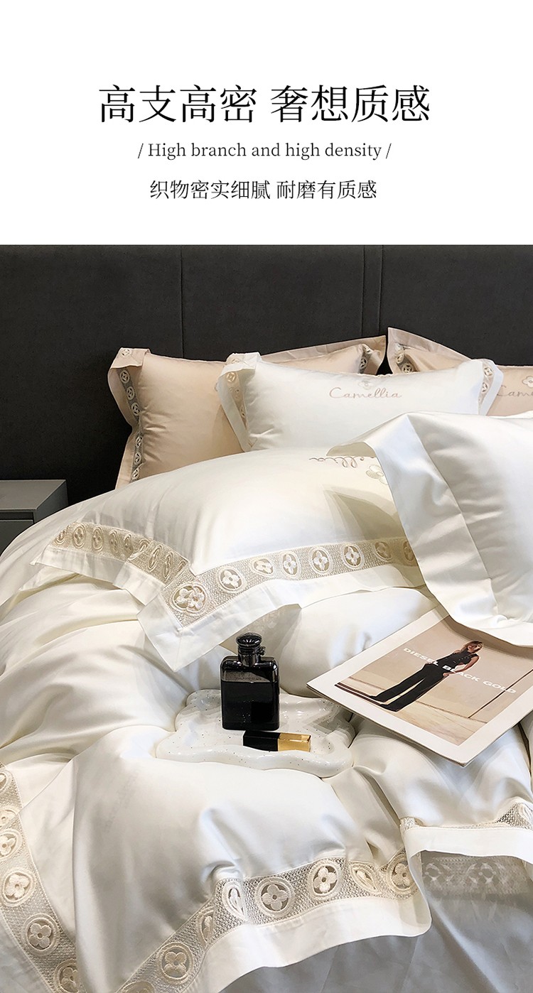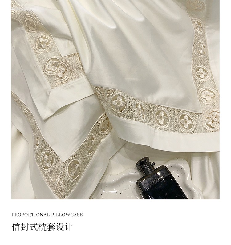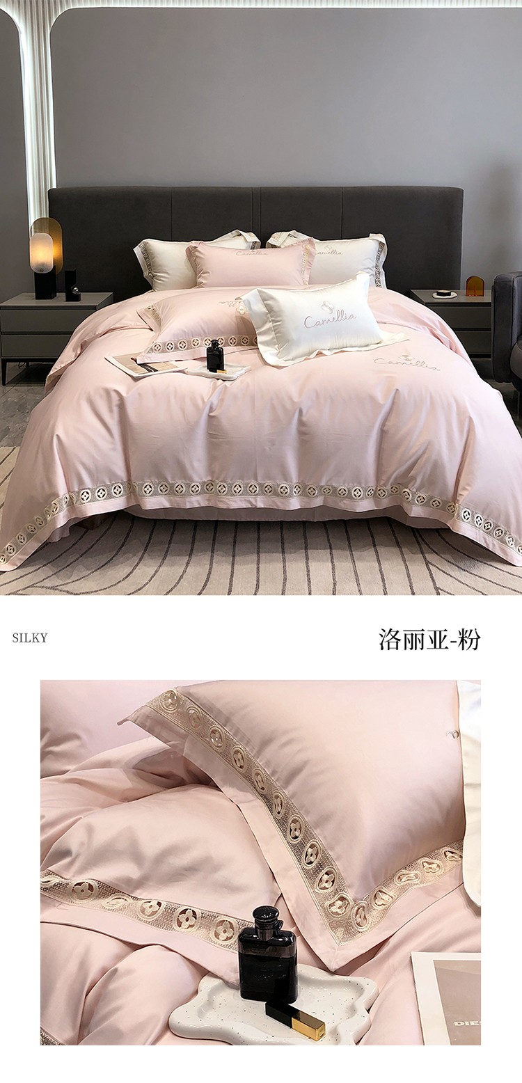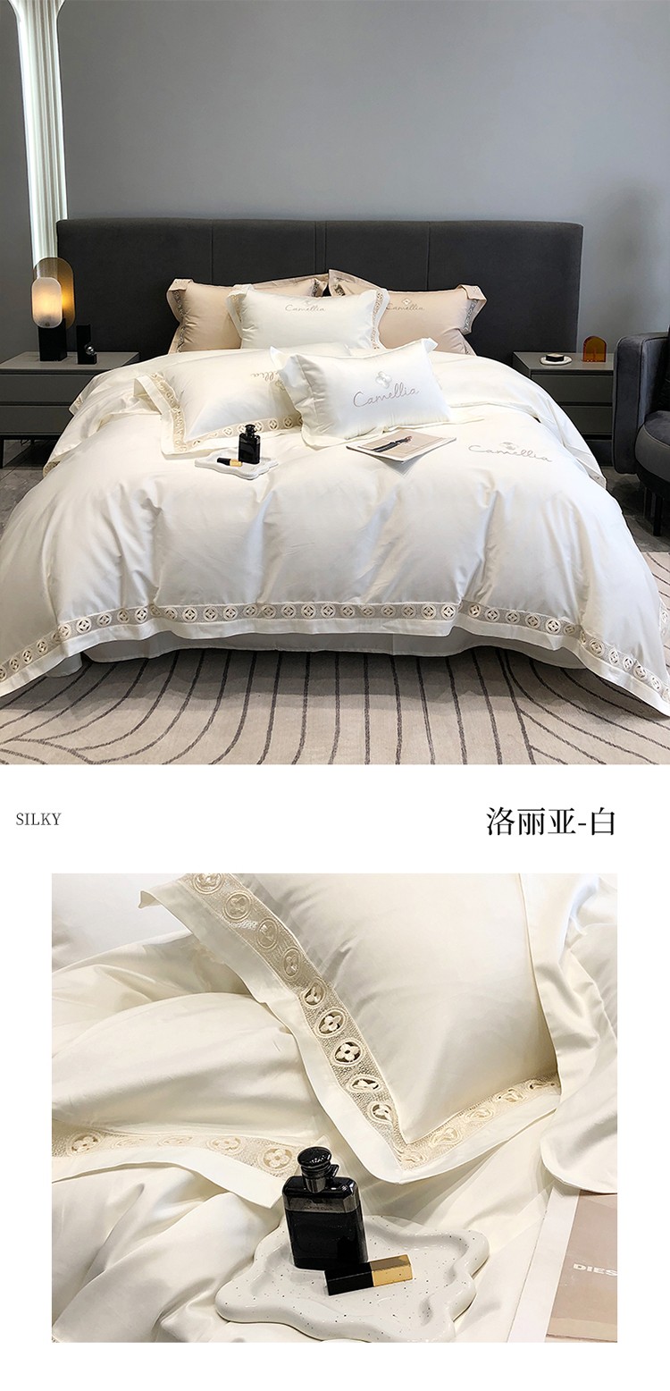 (总)黑白森林2024款 80X80S高支天丝棉四件套镂空蕾丝花边天丝全棉,尚美-晨夕粉,尚美-古象白,尚美-青砂绿,尚美-银雪灰