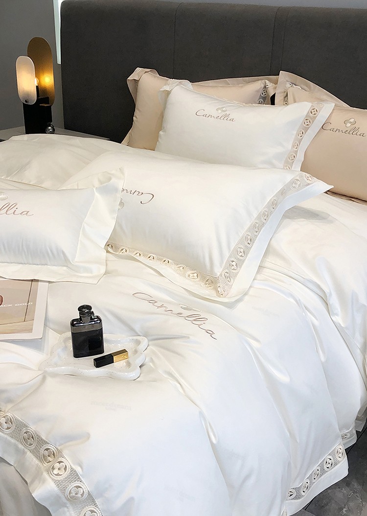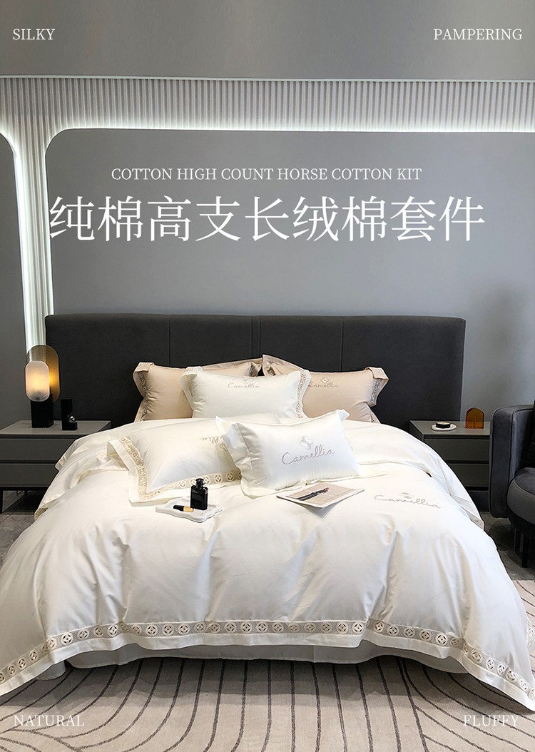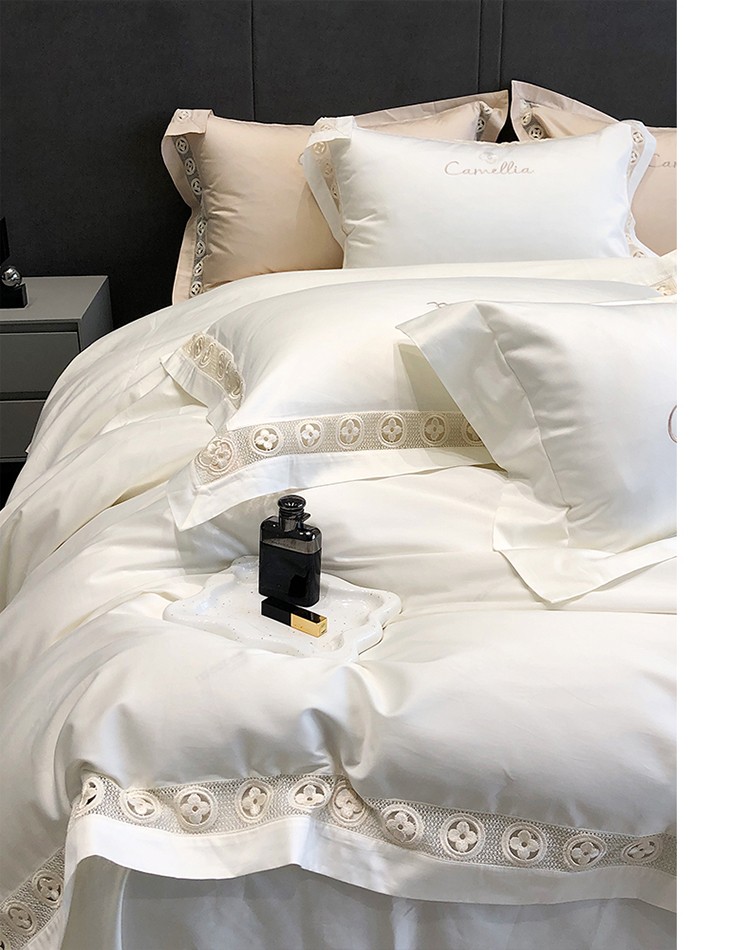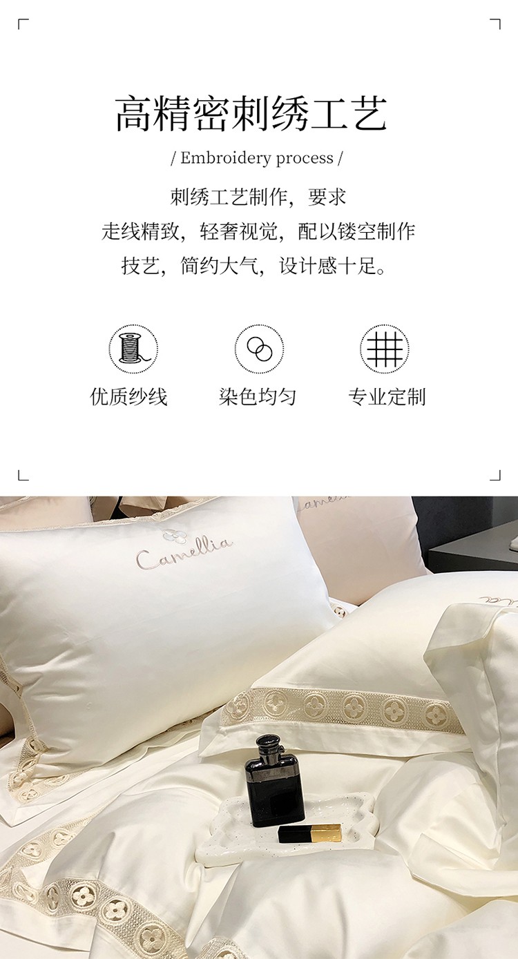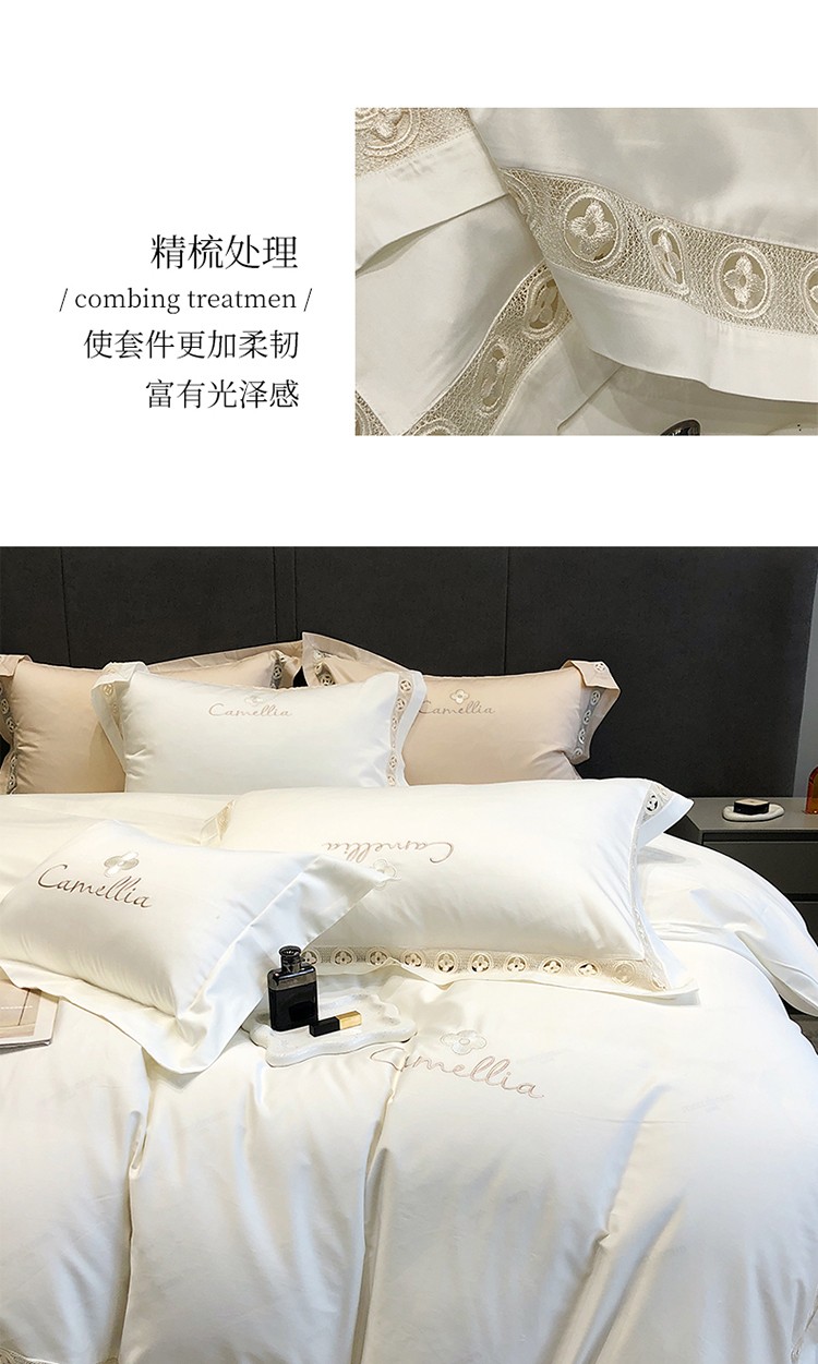 (总)黑白森林2024款 80X80S高支天丝棉四件套镂空蕾丝花边天丝全棉,尚美-晨夕粉,尚美-古象白,尚美-青砂绿,尚美-银雪灰