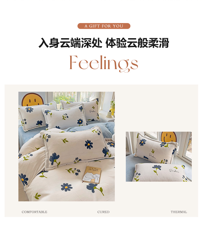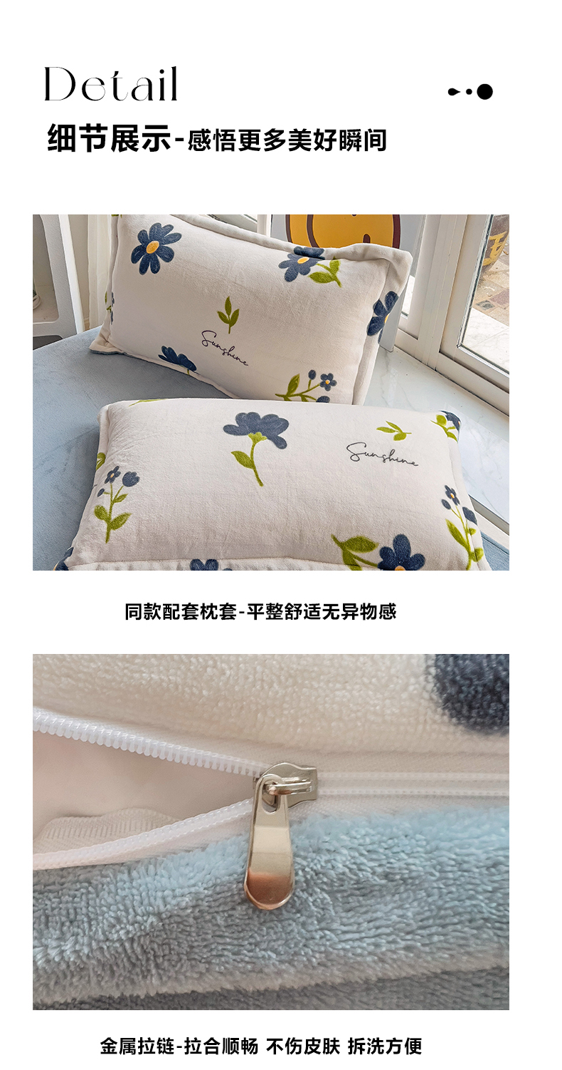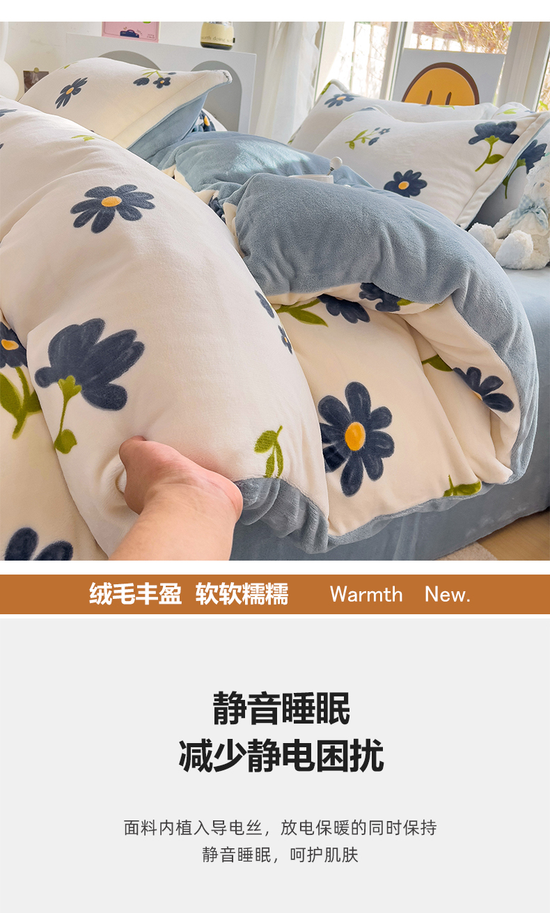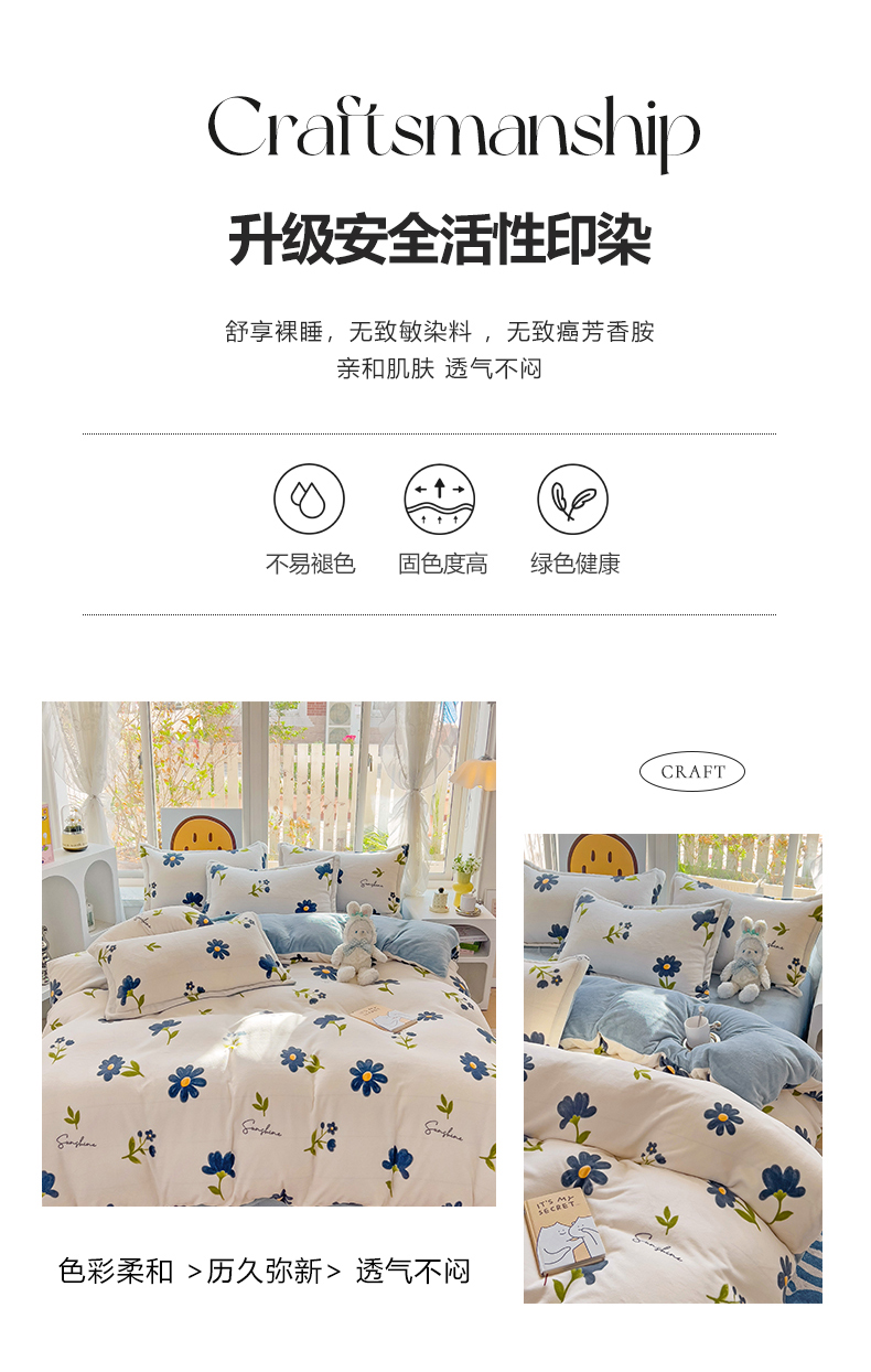 当前位置: 91家纺网 > 商品网购 > 床品套件 > 四件套 > 牛奶绒四件套 > 包小包 2023直播爆款220g高克重印花小清新牛奶绒四件套 小蓝花