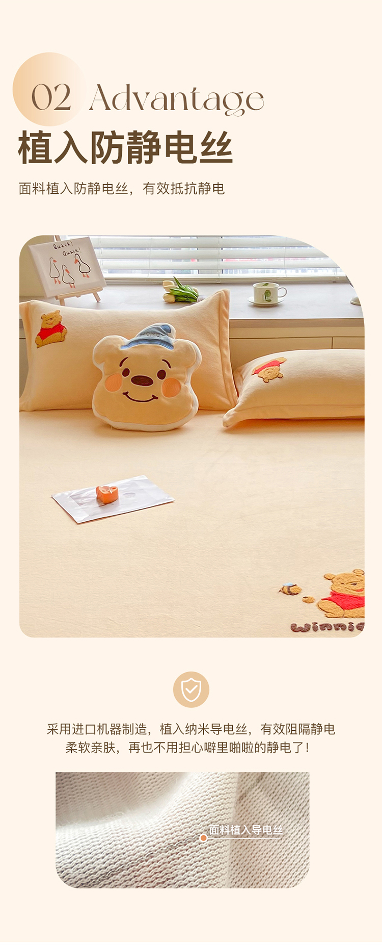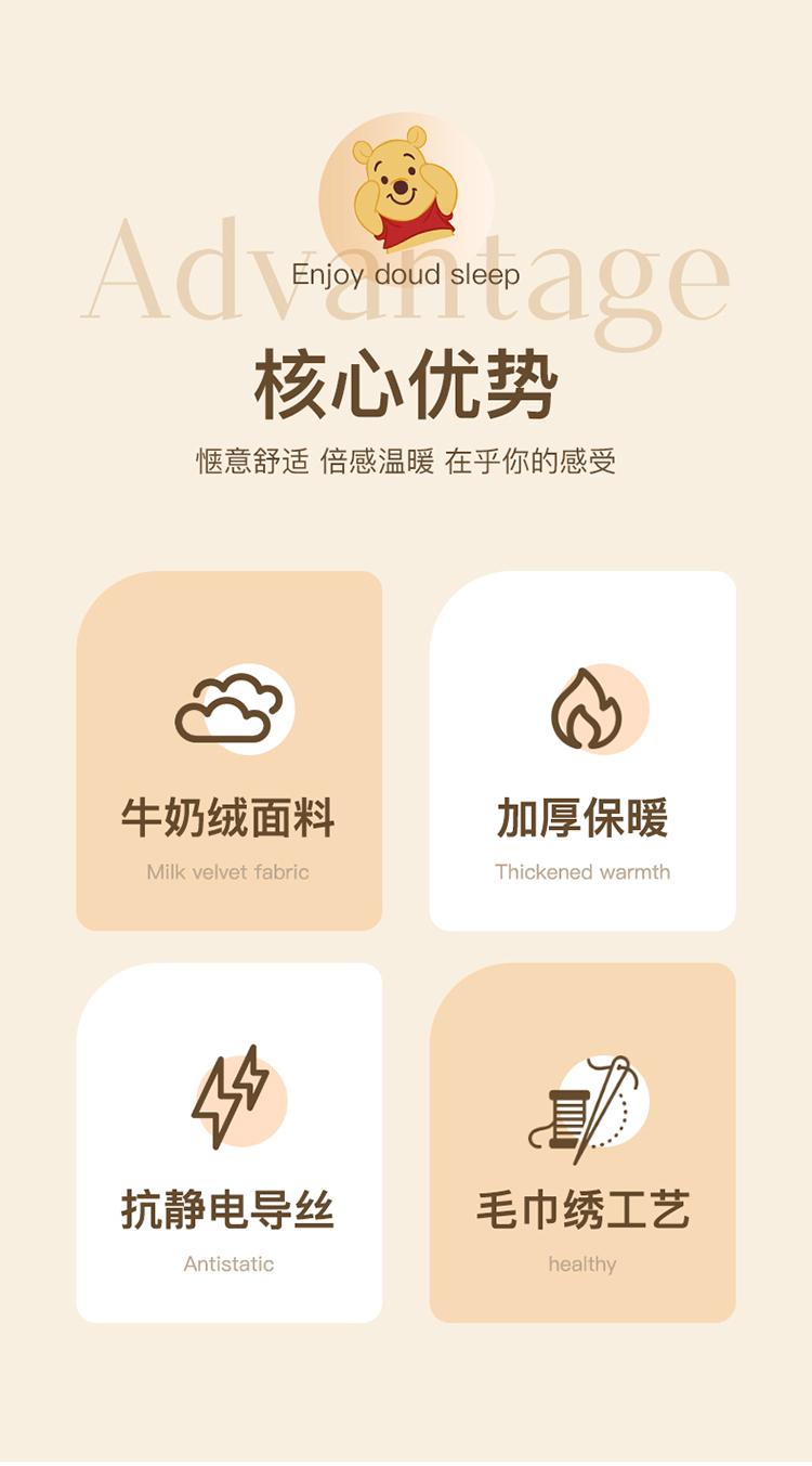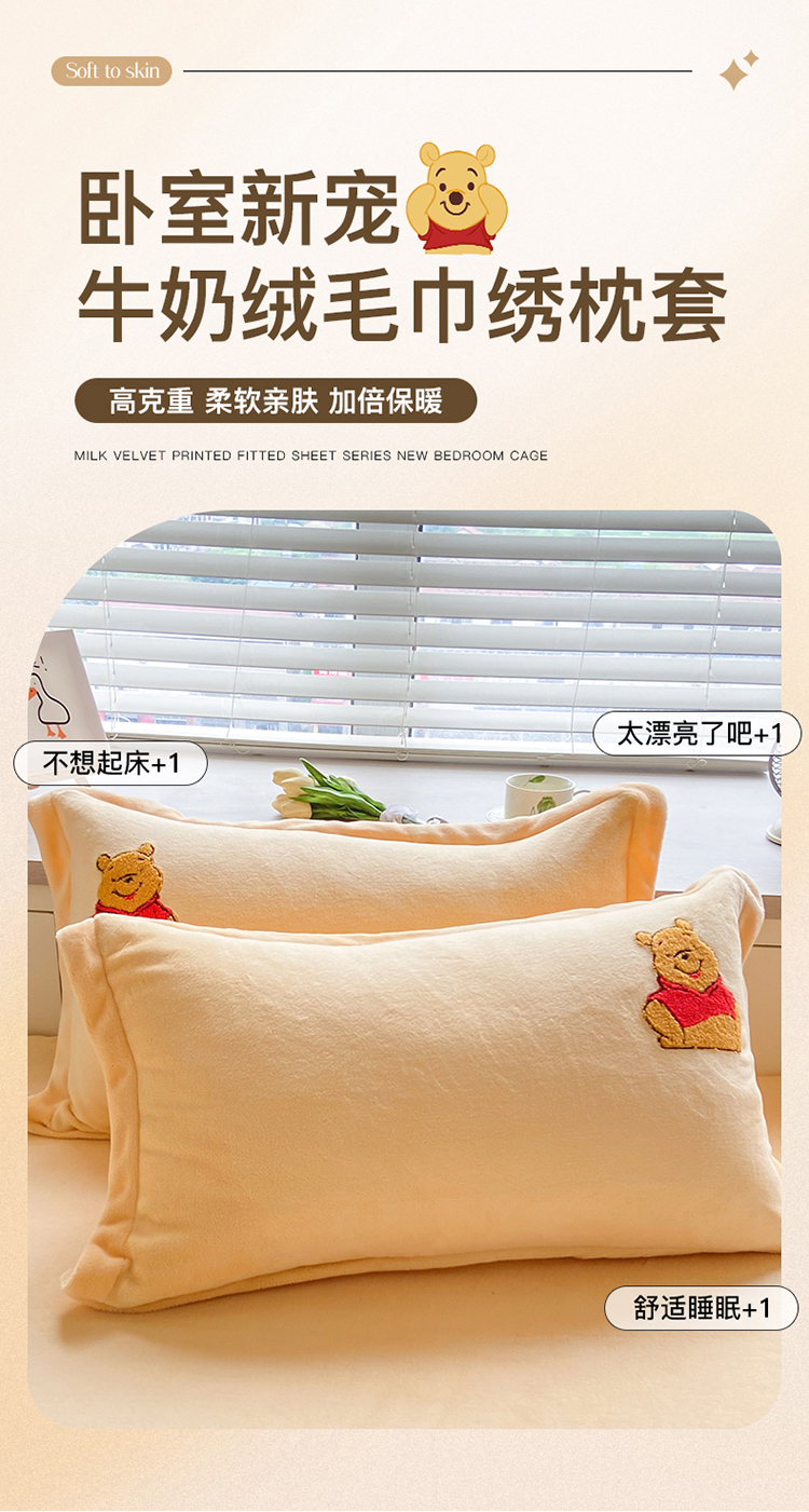 商品名称:丽美人家纺 2023新款迪斯尼牛奶绒枕套 小熊维尼