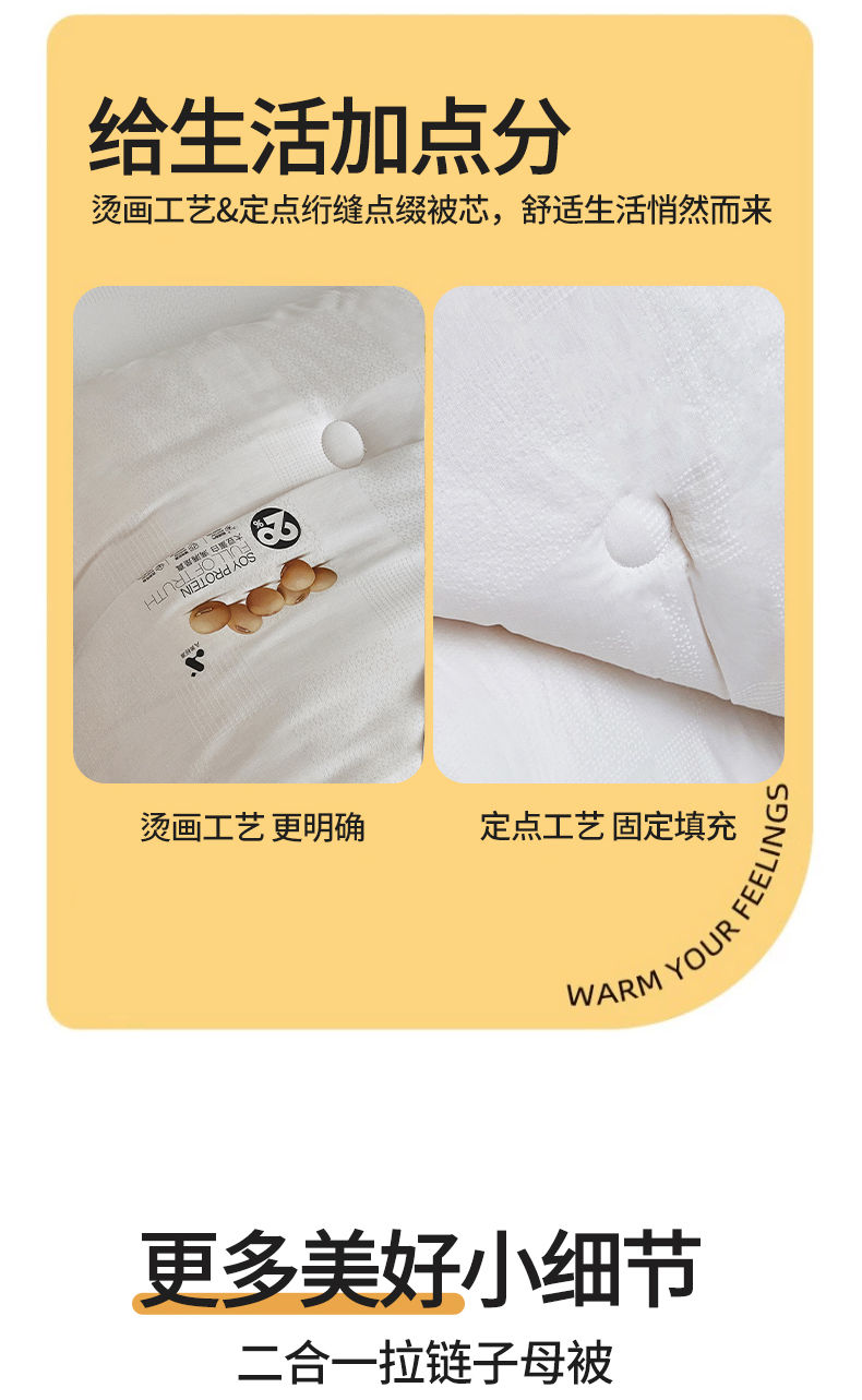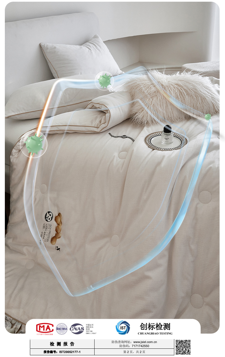 • 填充纤维种类: 大豆蛋白改性聚酯纤维