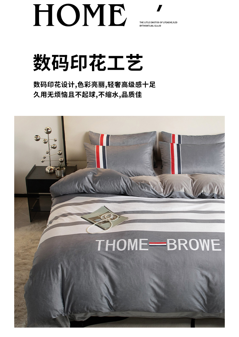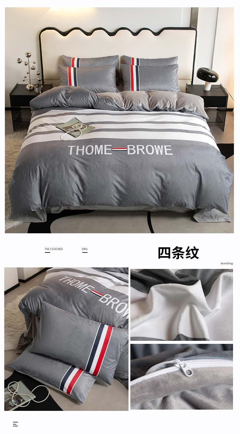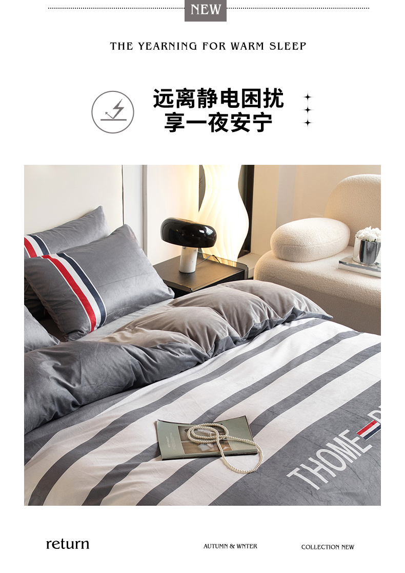 商品名称:摩卡 2024新款秋冬新品网红款婴儿绒毛四件套 四条纹