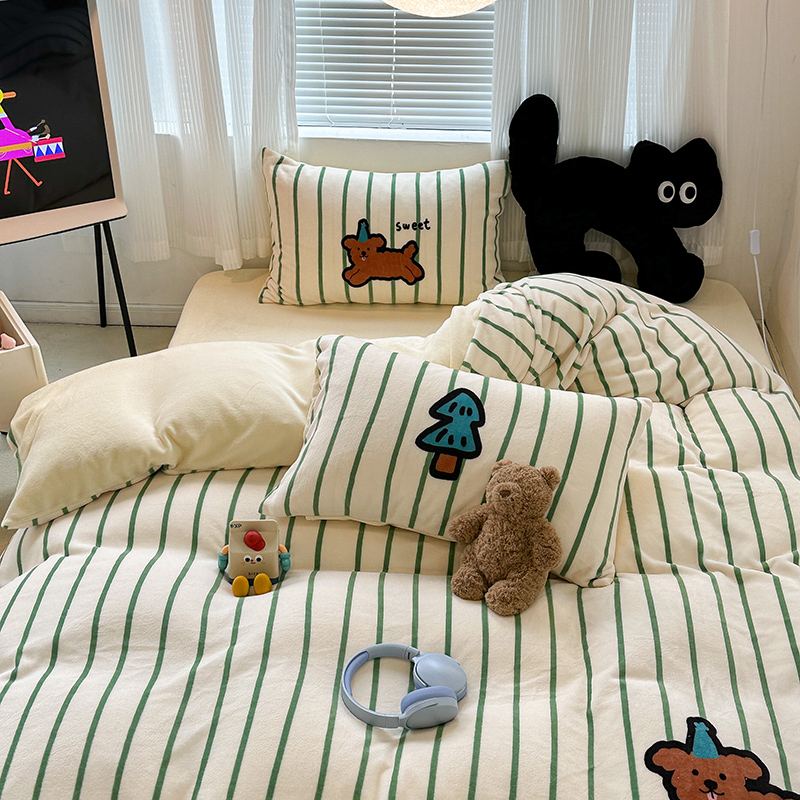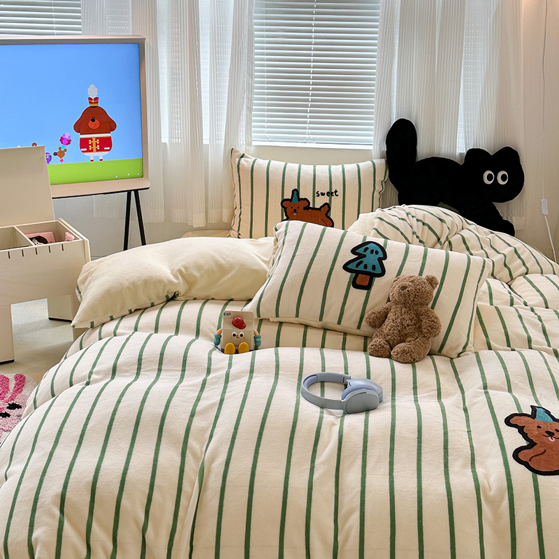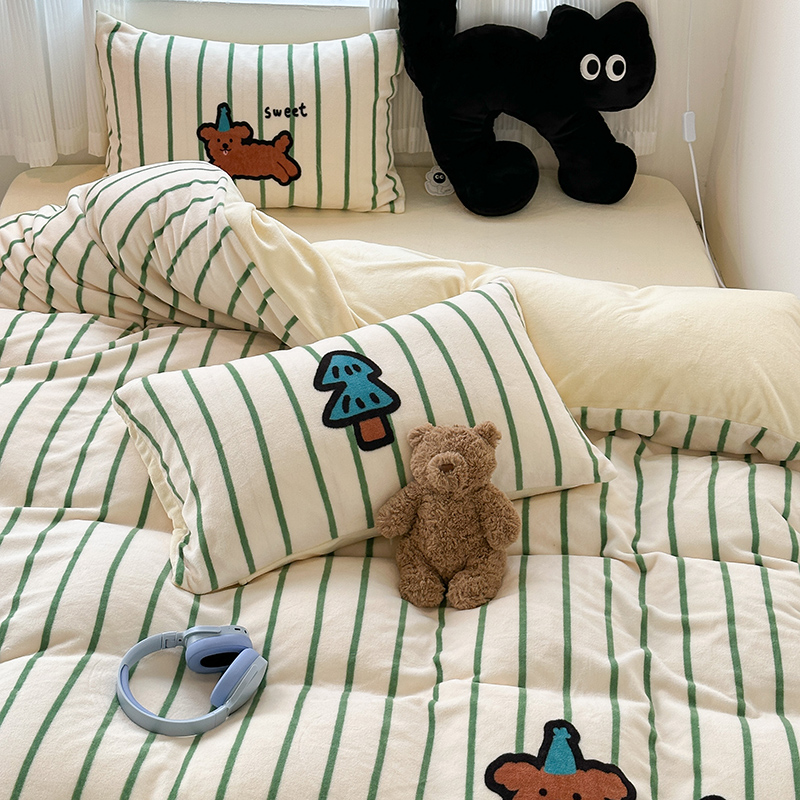 (总)昔可家纺 2024新款印花牛奶绒四件套系列-洛丽塔风,萝莉小兔,小熊烘焙屋,小熊玩偶屋