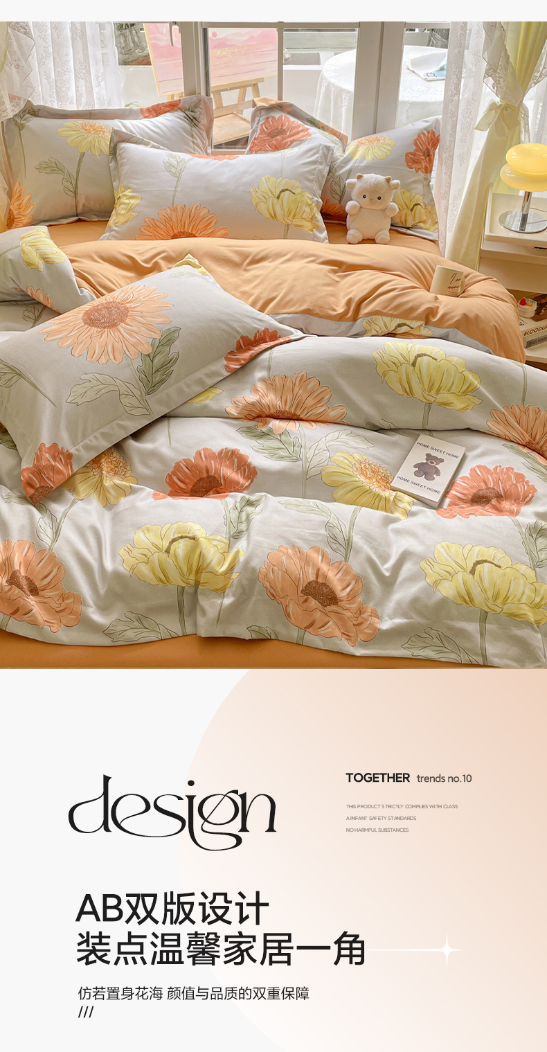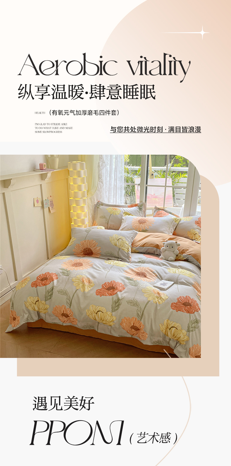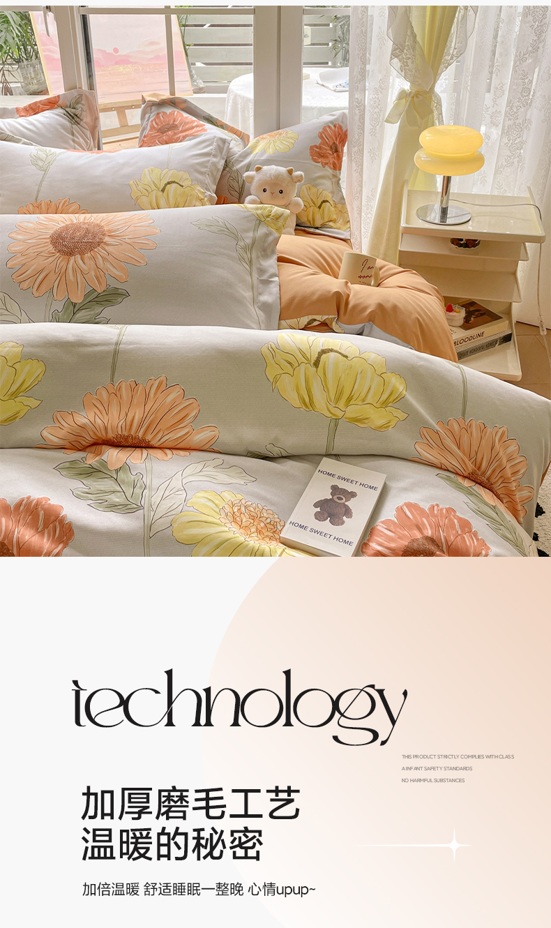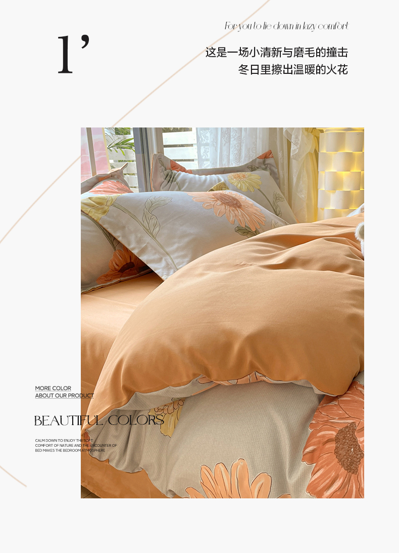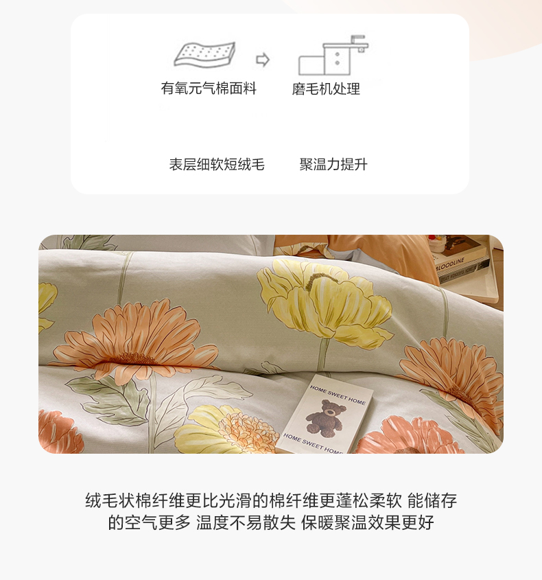 商品名称:古吉梦 2023新款A类有氧元气棉加厚磨毛四件套 太阳花