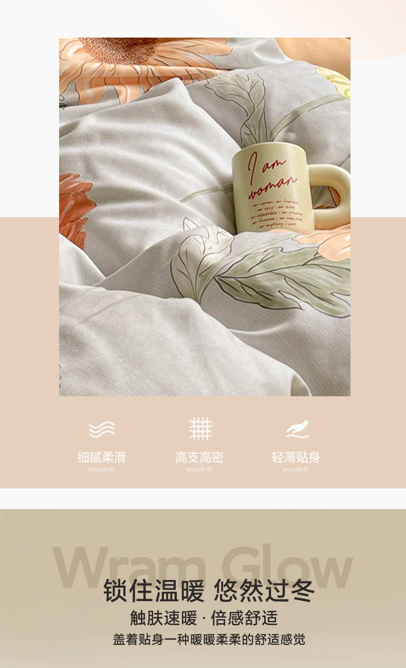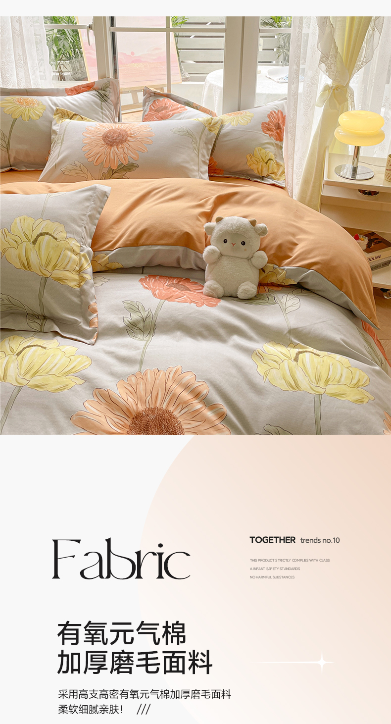 古吉梦 2023新款A类有氧元气棉加厚磨毛四件套 太阳花