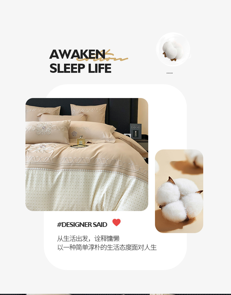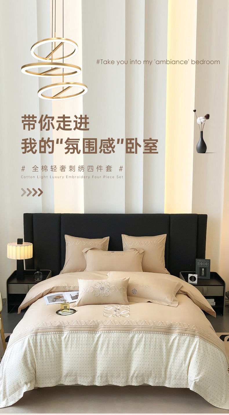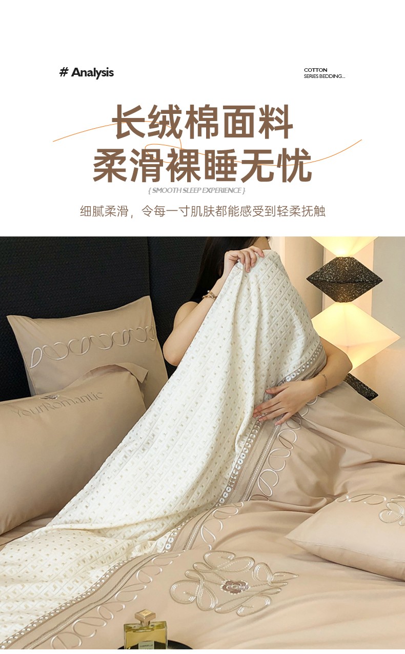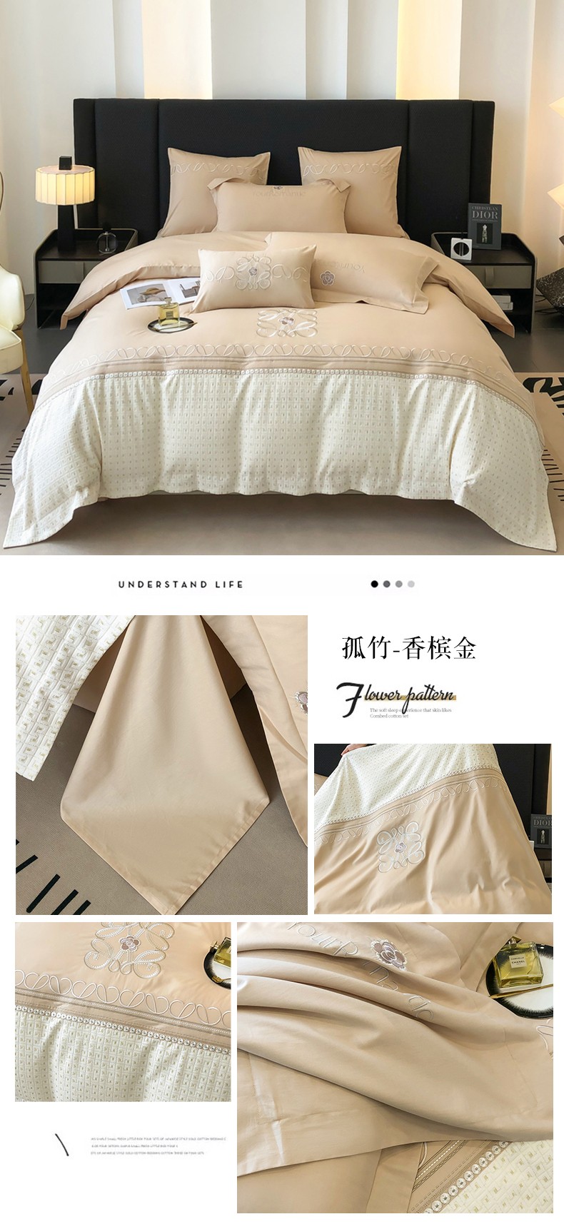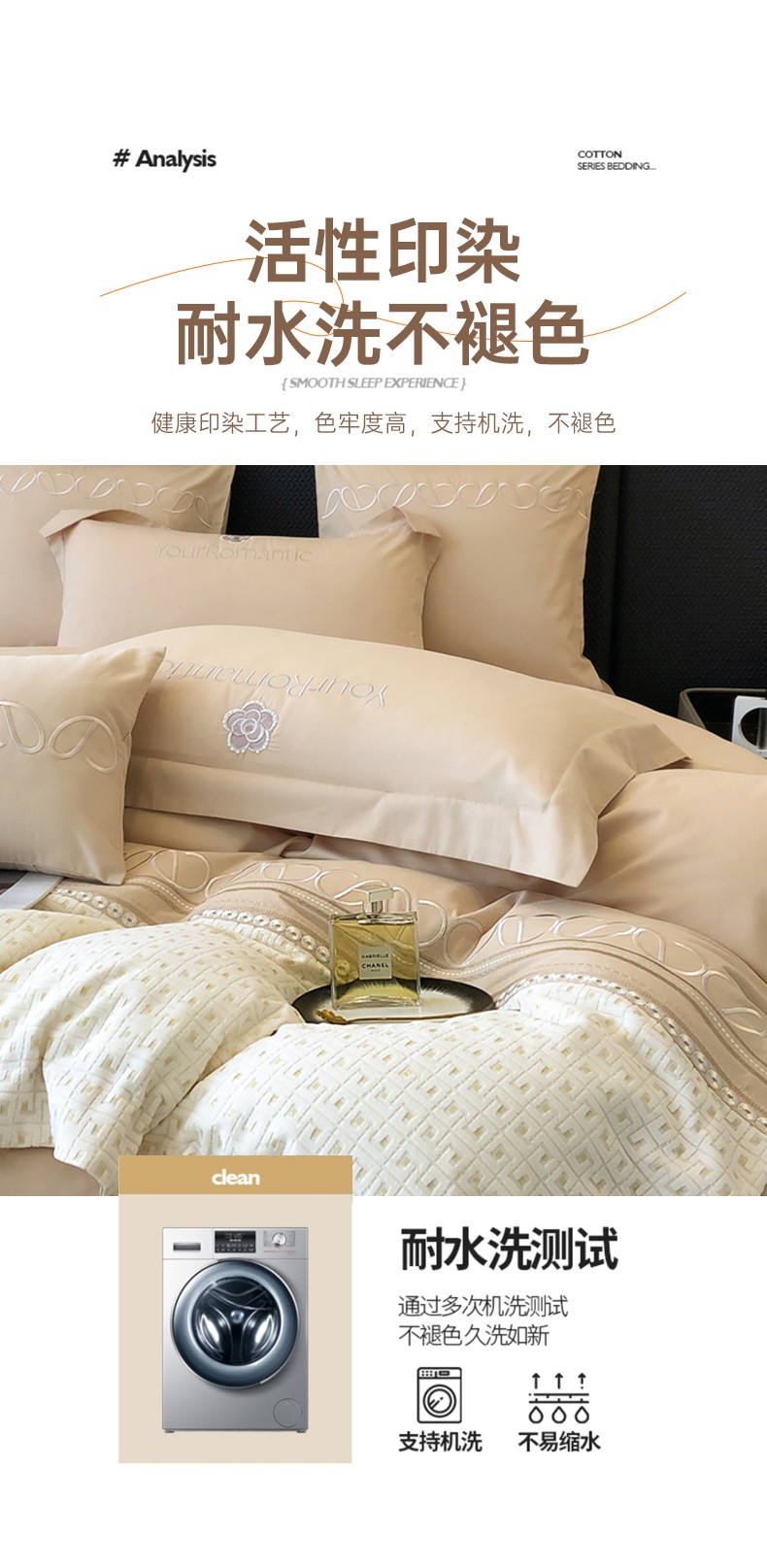 商品名称:家居1号 2024新款孤竹13372喷气全棉四件套 香槟金