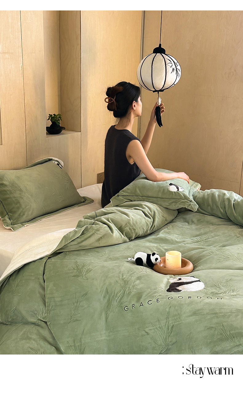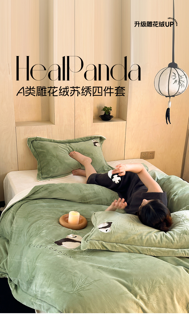 当前位置: 91家纺网 > 商品网购 > 床品套件 > 四件套 > 牛奶绒四件套 > 风向标 2023新款A类锦芙升级版牛奶绒四件套 花花思竹-竹绿