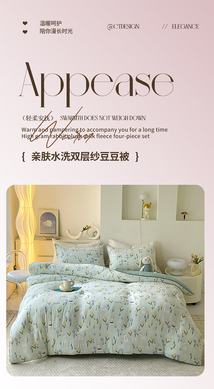 商品名称:网客 2024新款亲肤水洗双层纱豆豆被 迷兔花园