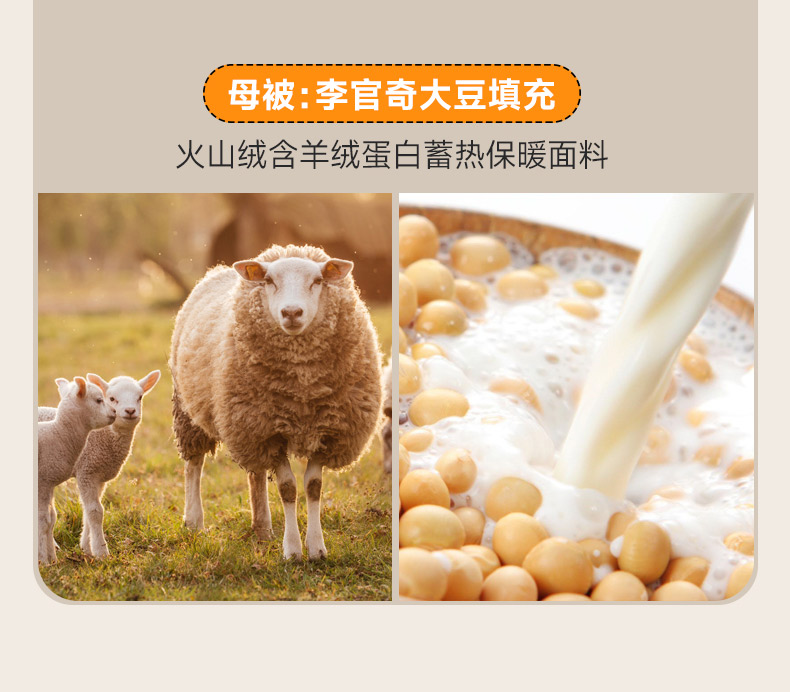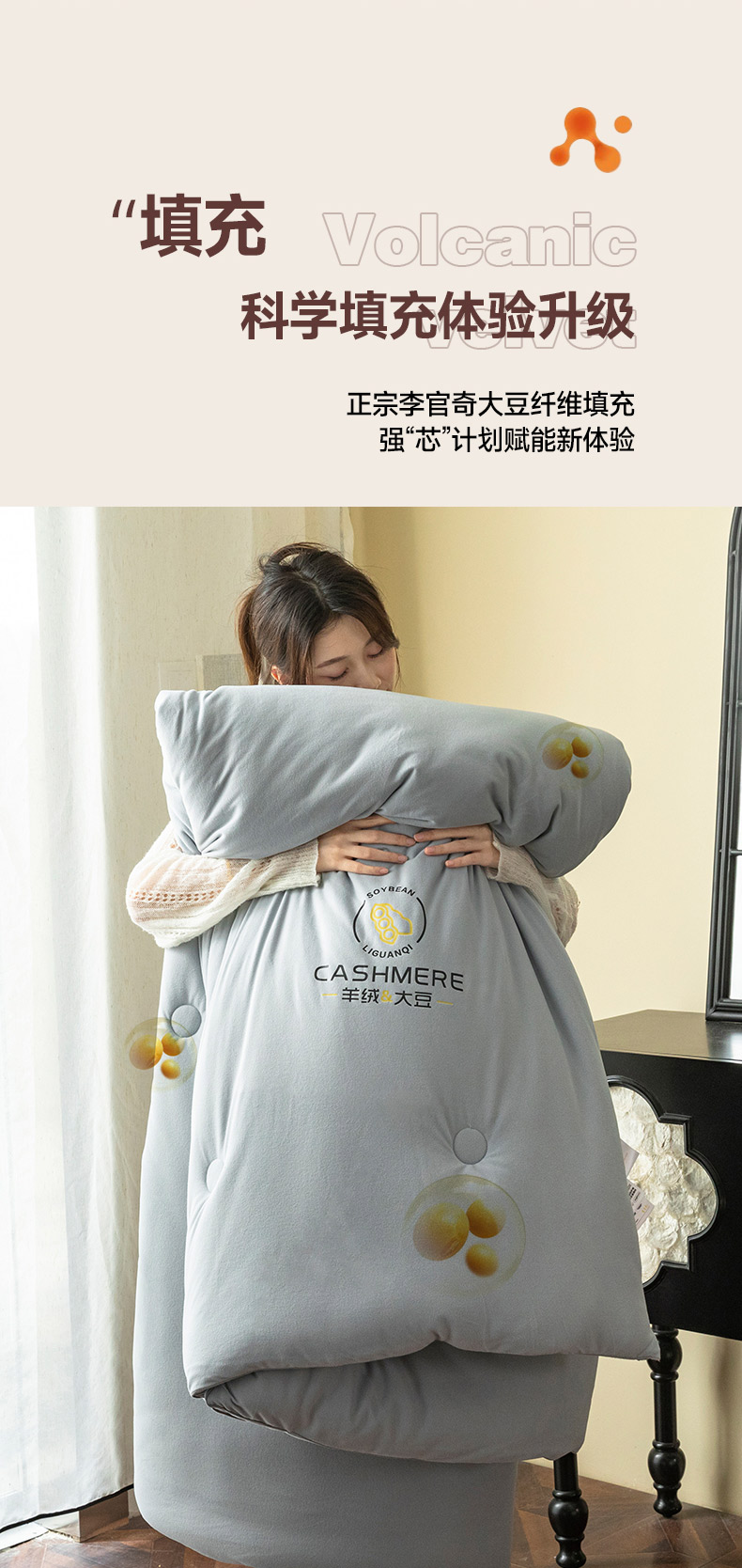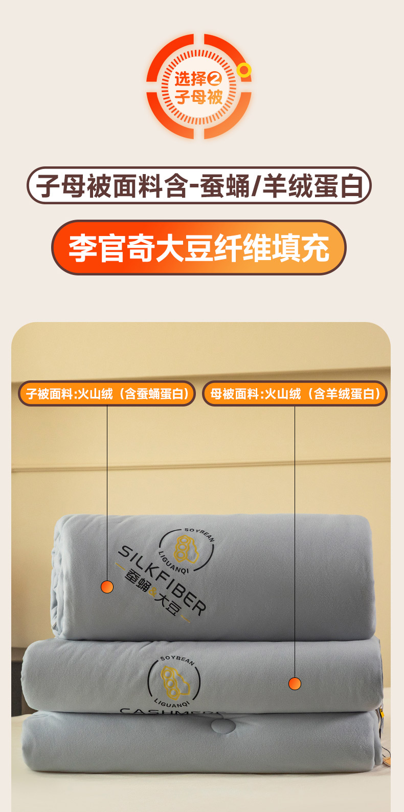 被靠被 2023新款火山绒李官奇填充大豆被子母被春秋被芯冬被子子 岩石灰