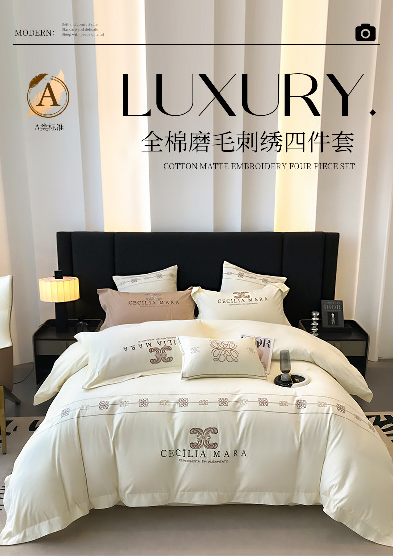 (总)家居1号家纺 2025新款全消光牛奶绒刺绣圣玛丽四件套,圣玛丽-粉豆沙,圣玛丽-果绿,圣玛丽-晴蓝,圣玛丽-绅士灰,圣玛丽-香槟金