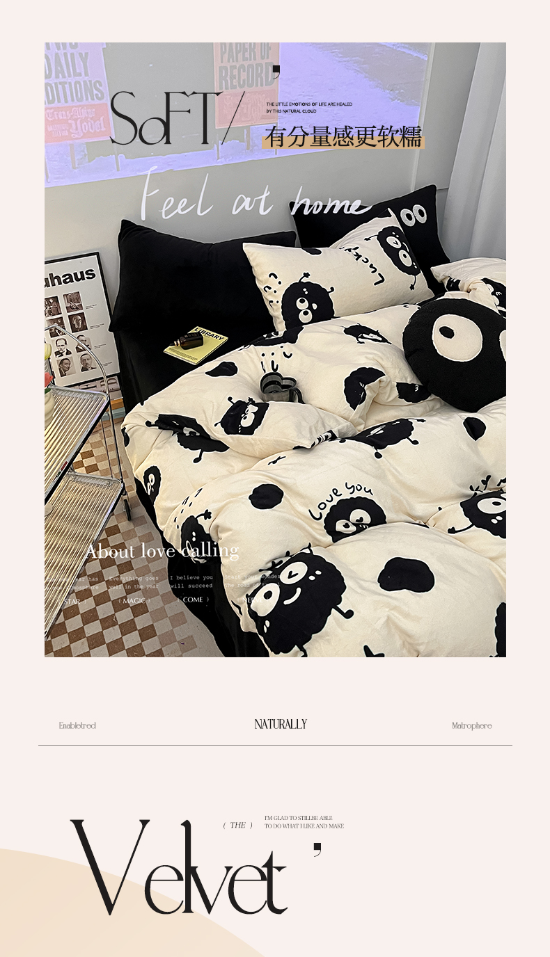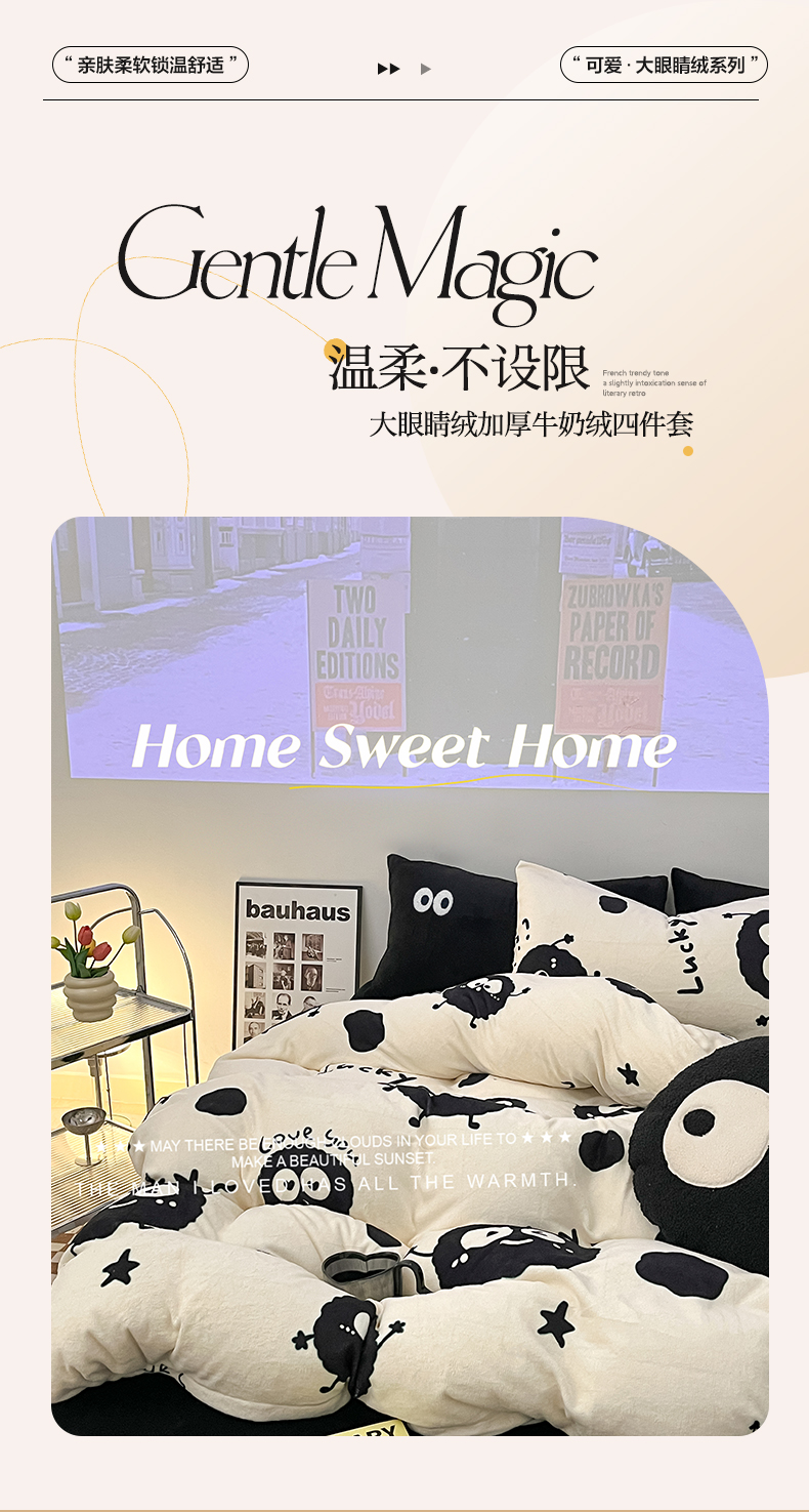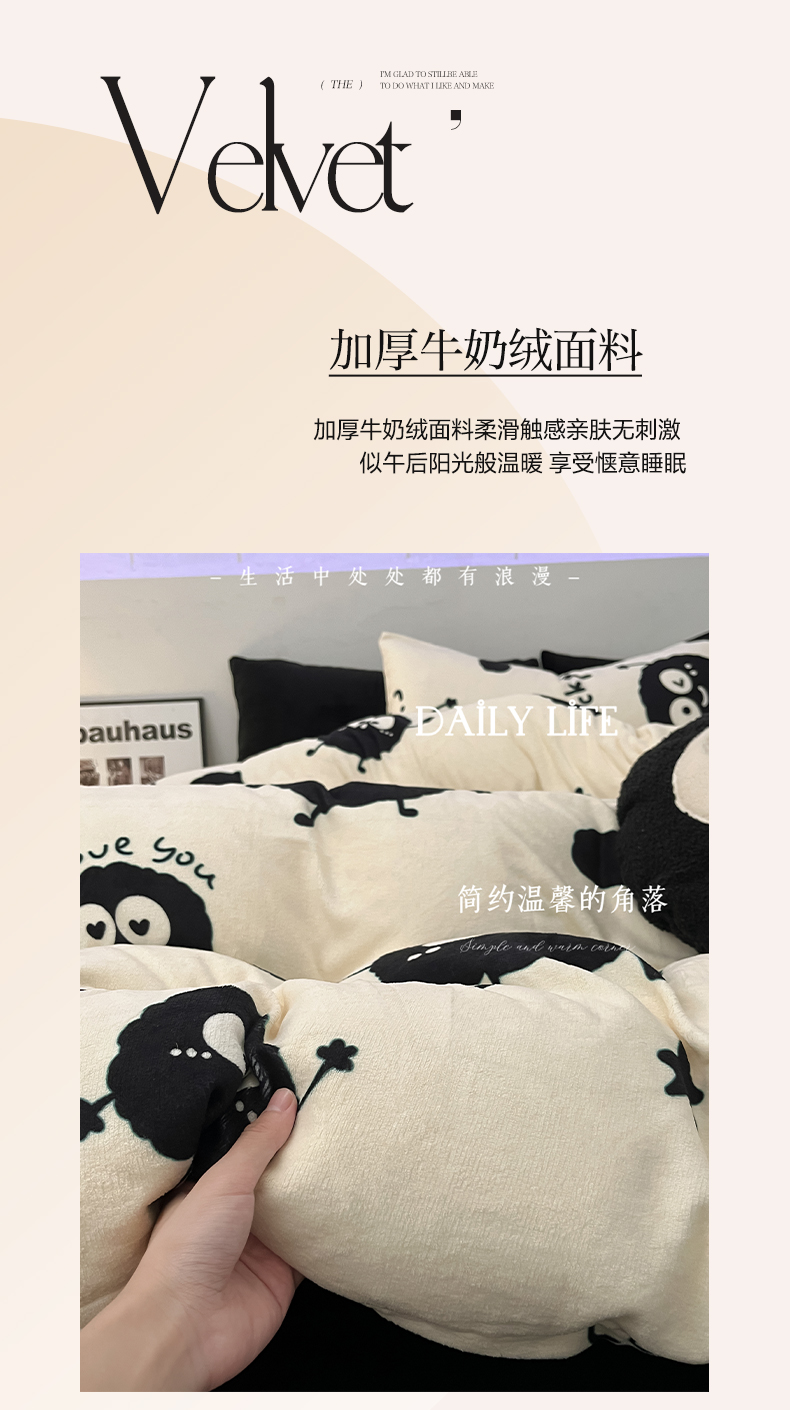 当前位置: 91家纺网 > 商品网购 > 床品套件 > 四件套 > 牛奶绒四件套 > 海岛哥哥 2023新款大眼睛牛奶绒四件套 大眼睛绒-小煤球