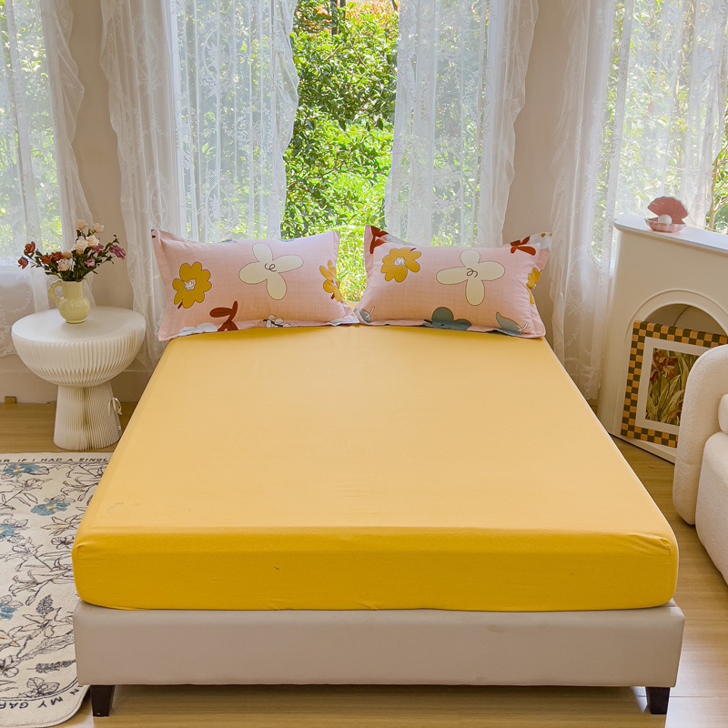 • 91家纺网 家纺一手货源 找家纺 伊而梦 2023新款全棉磨毛印花四件套系列单品床笠 黄色
