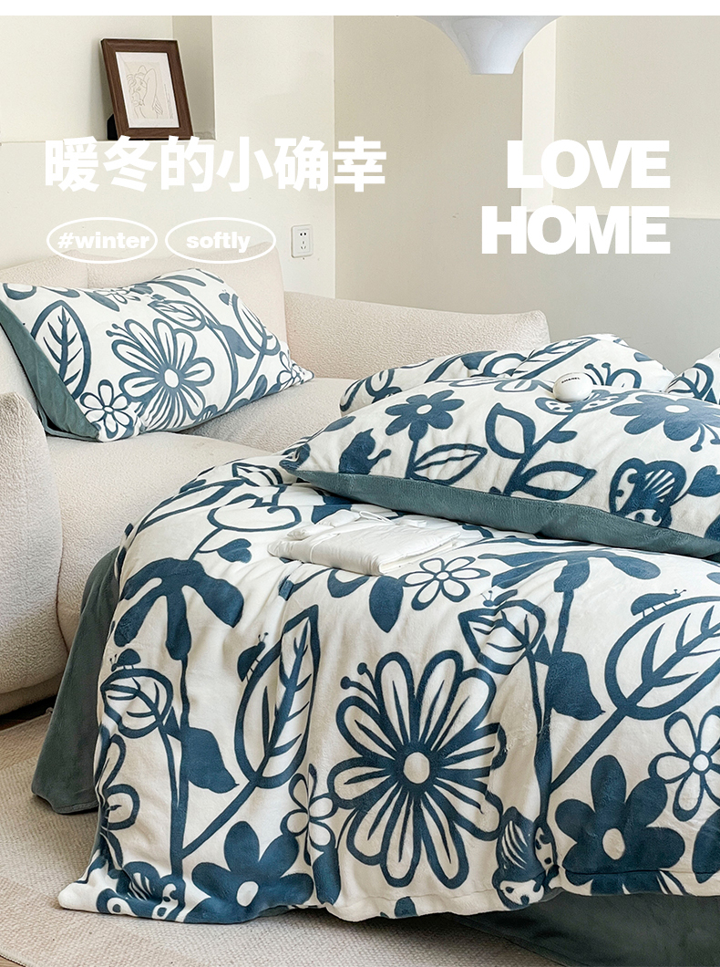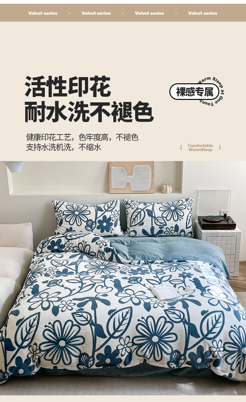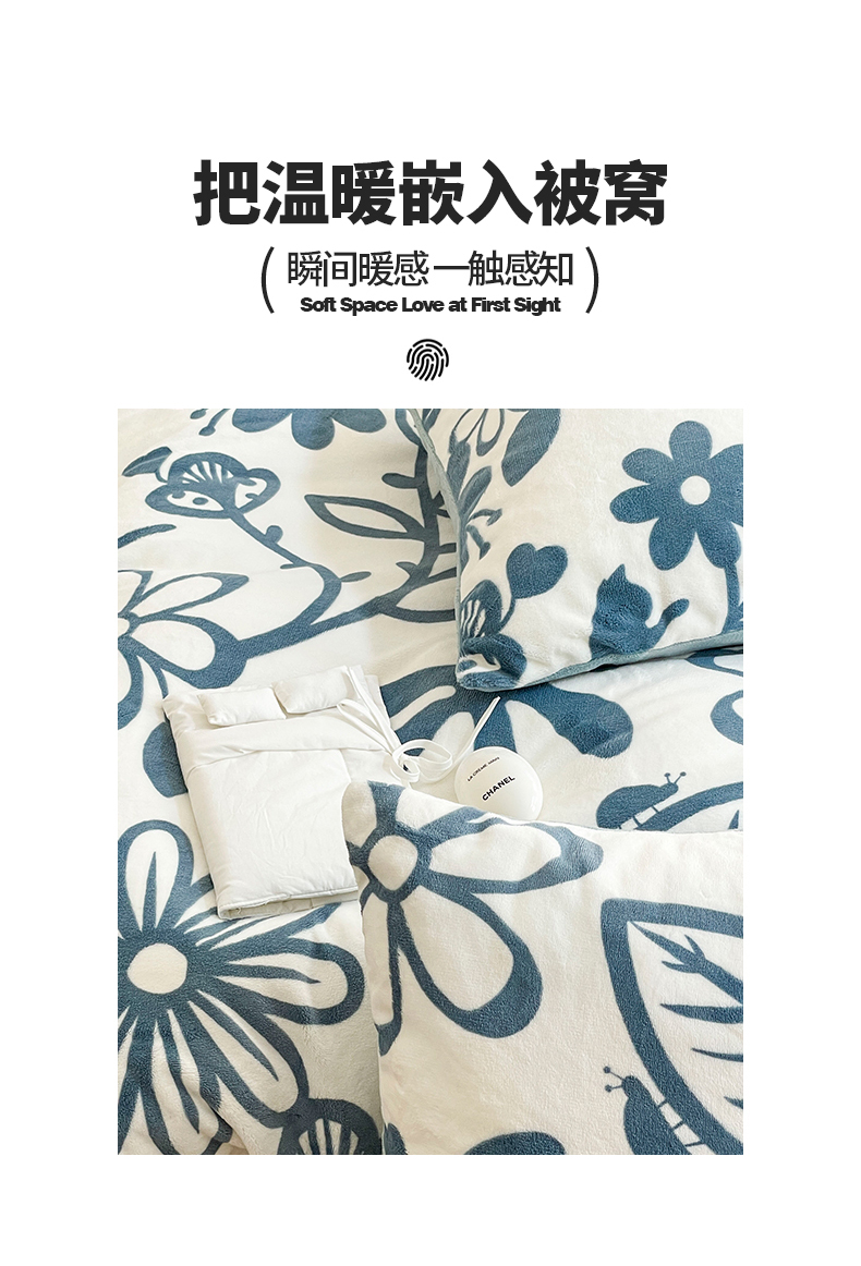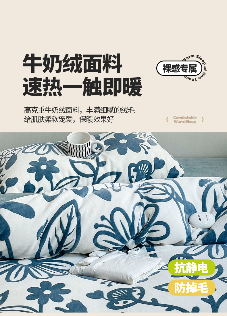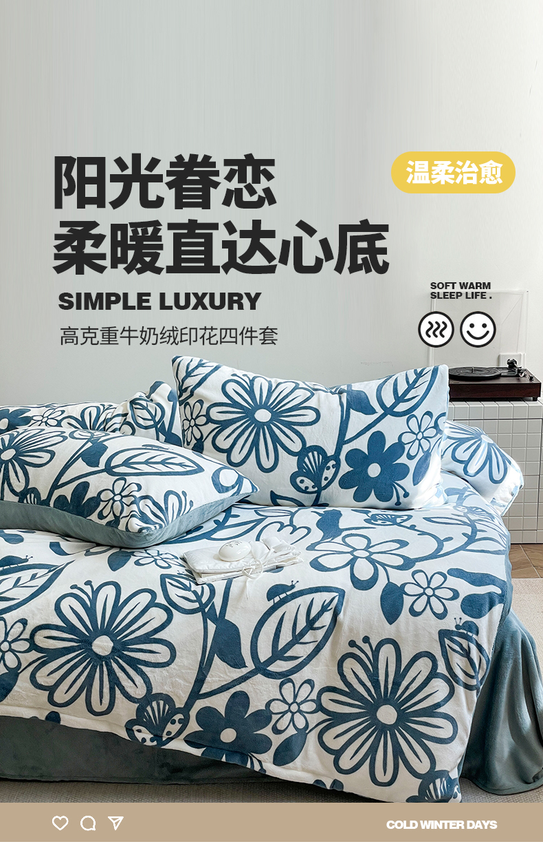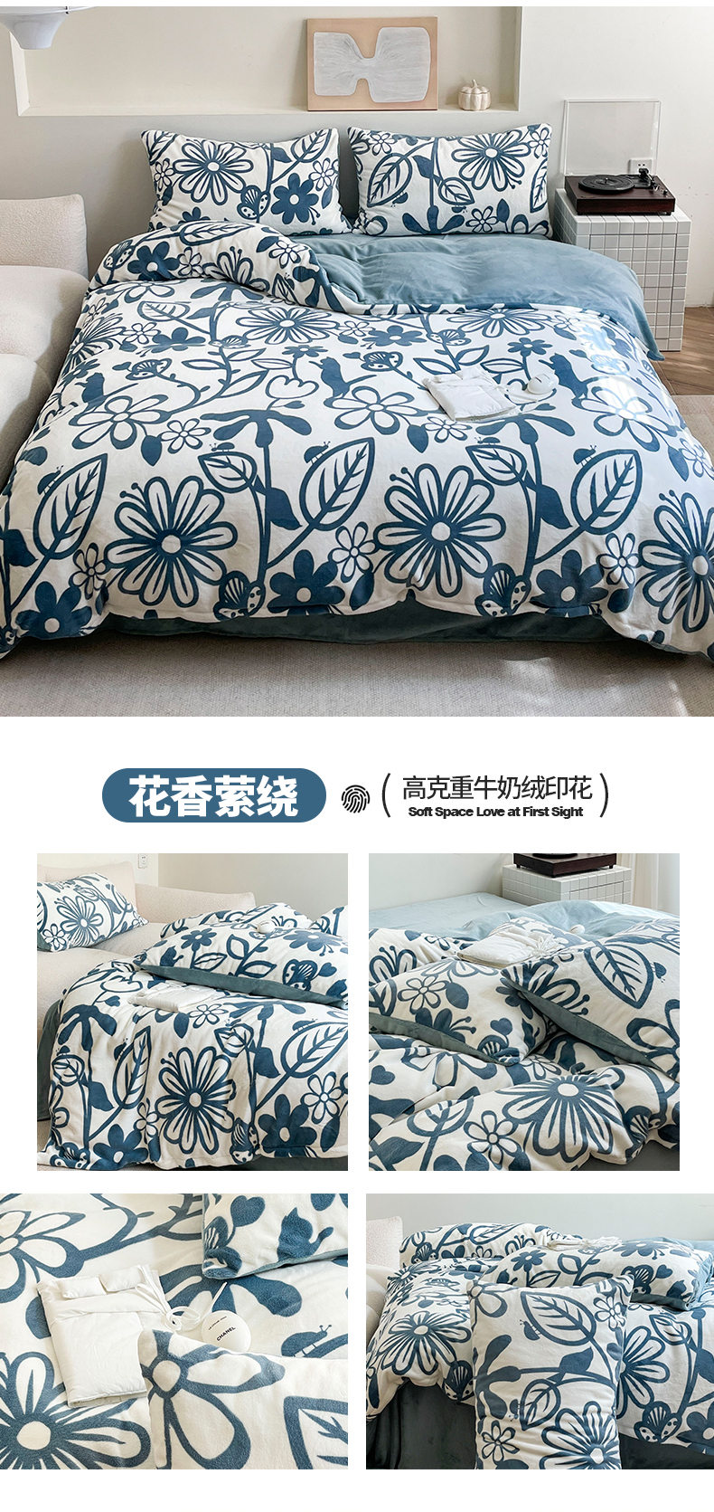 窝米 2023冬季新品高克重牛奶绒四件套系列 花香萦绕