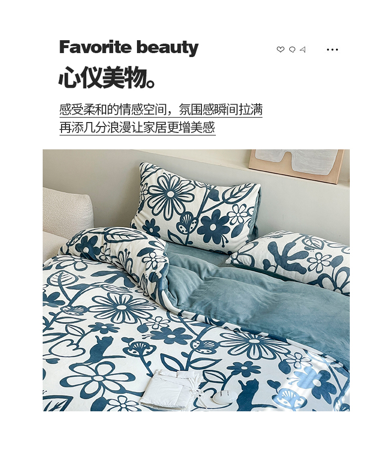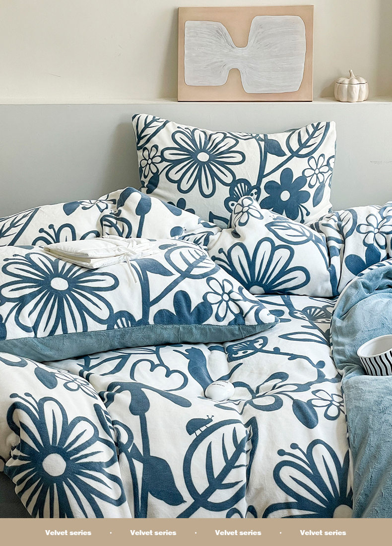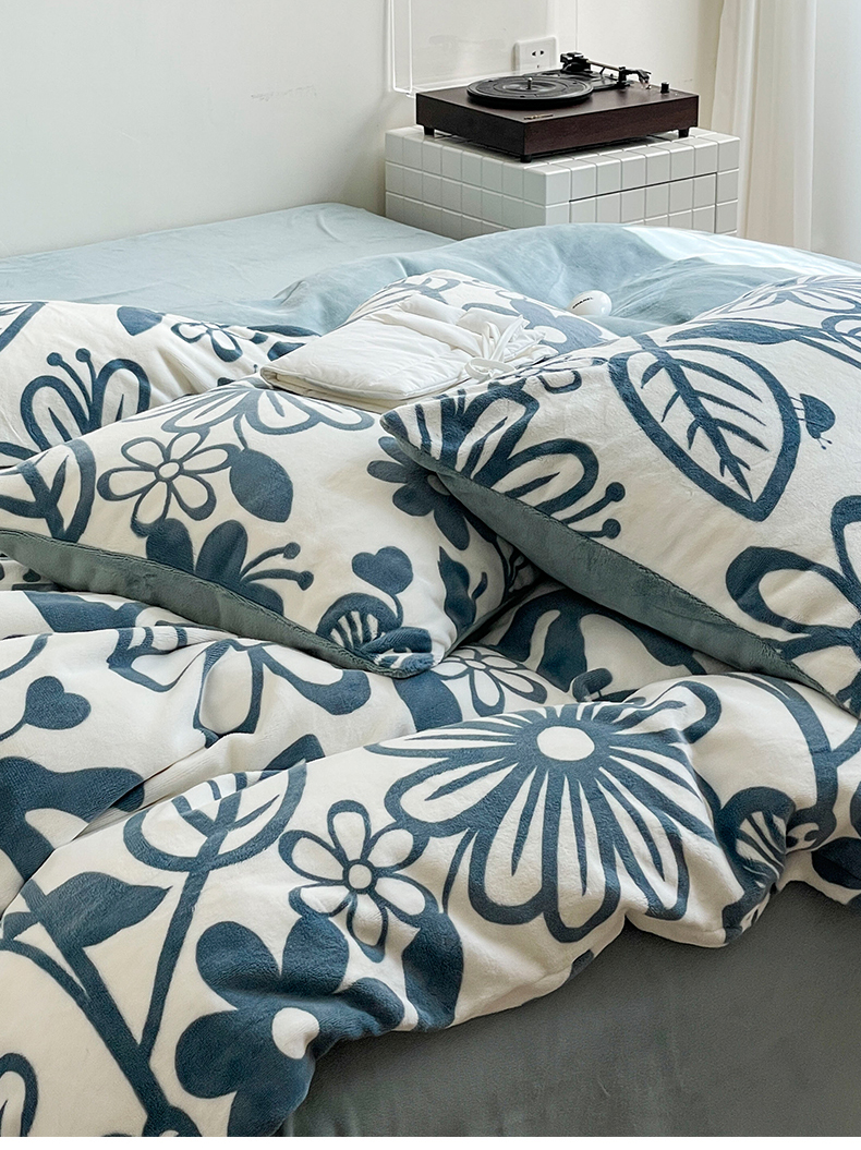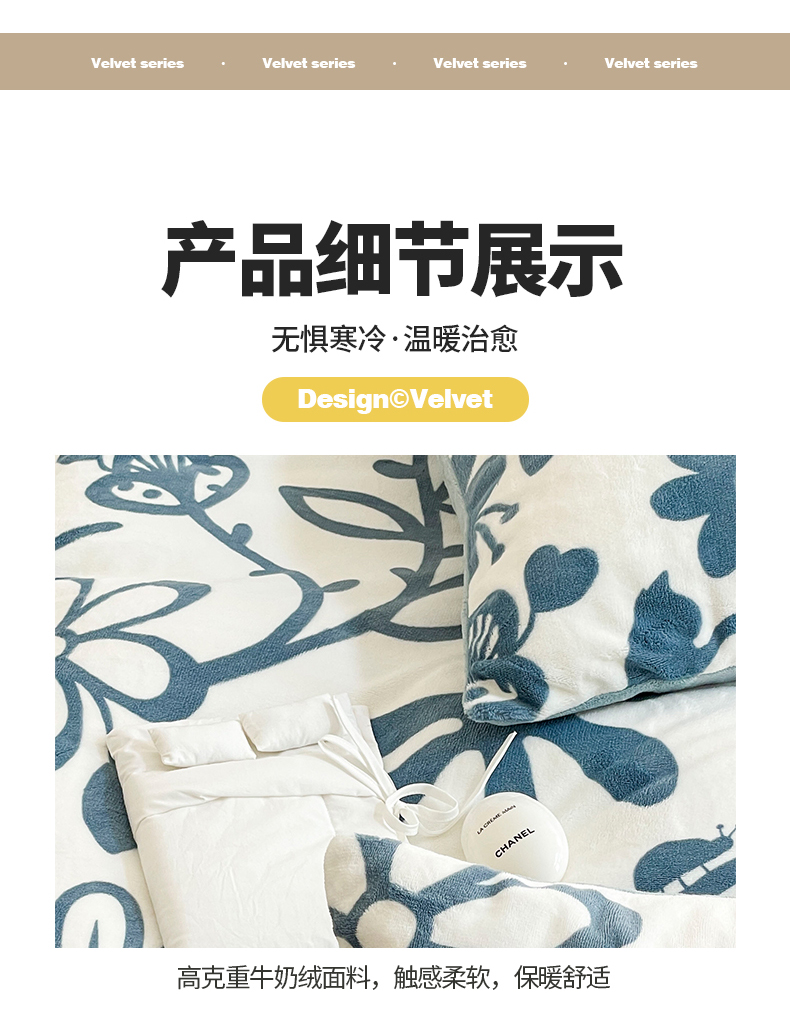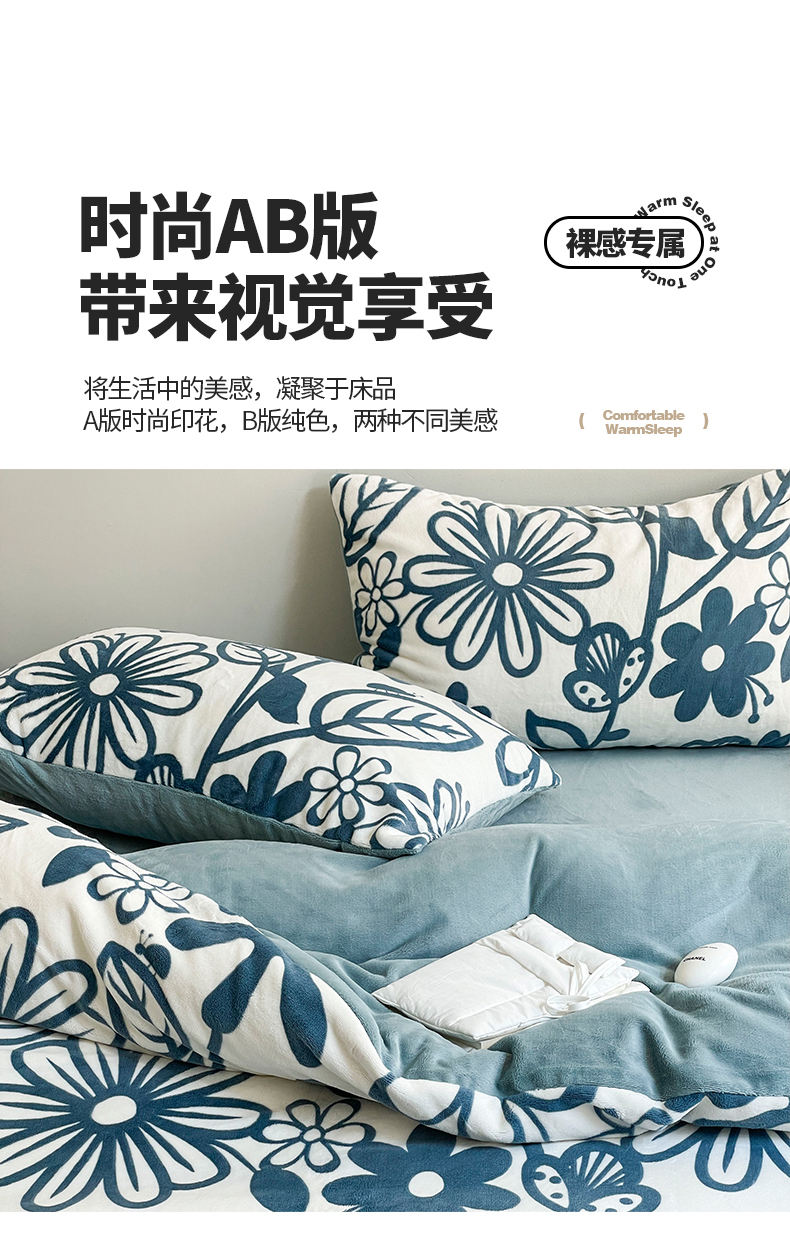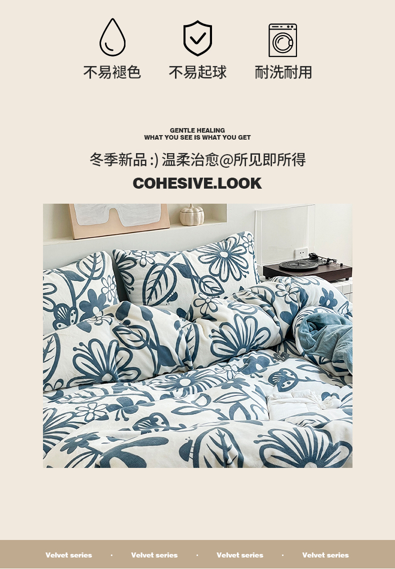 窝米 2023冬季新品高克重牛奶绒四件套系列 花香萦绕