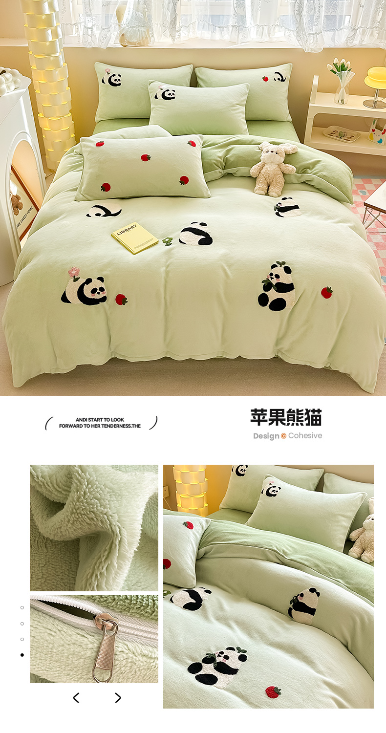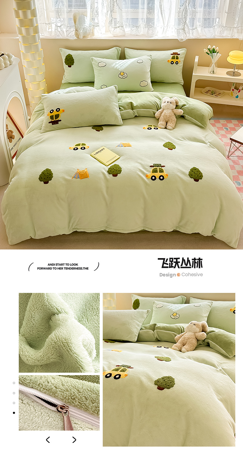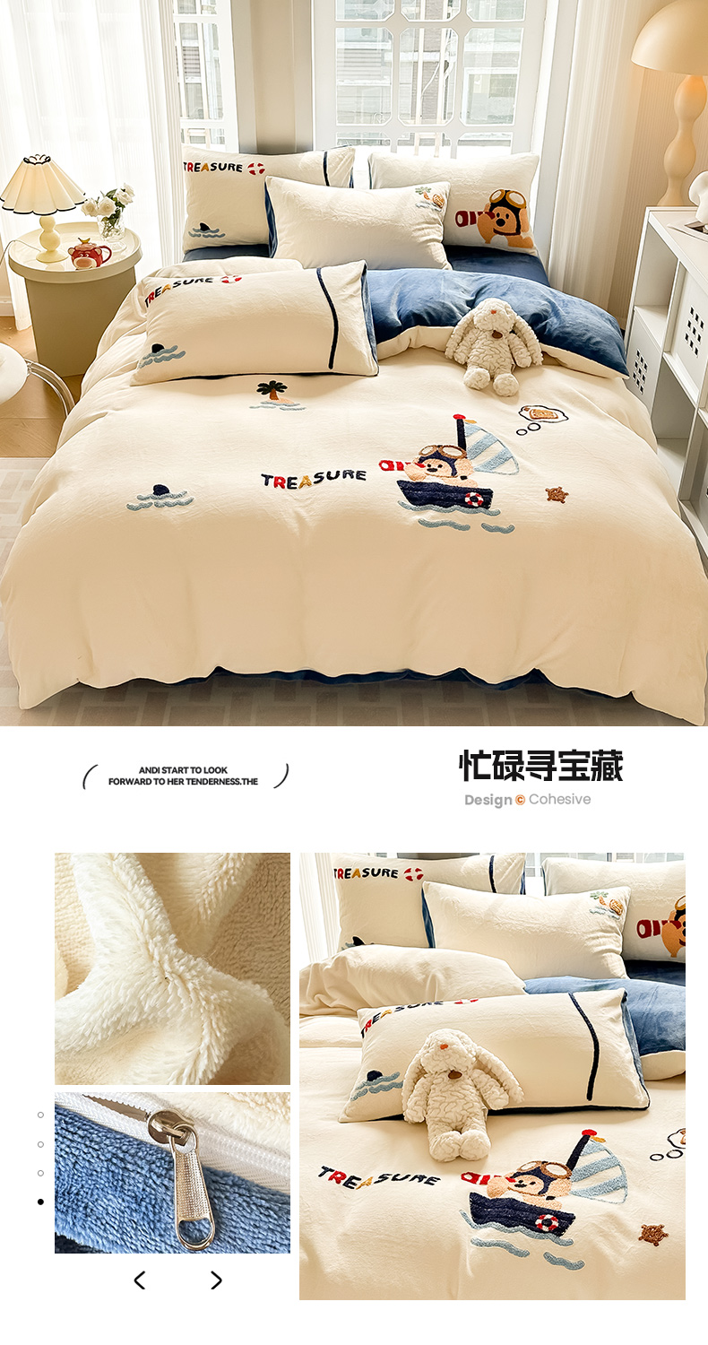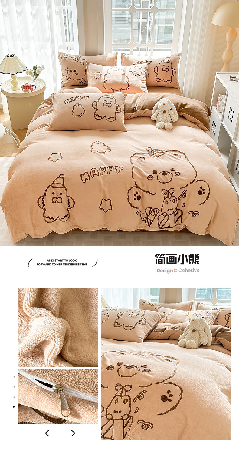 (总)眠屿家纺 2025新款加厚牛奶绒贴布绣四件套,棒球熊,动物朋友,欢乐音乐