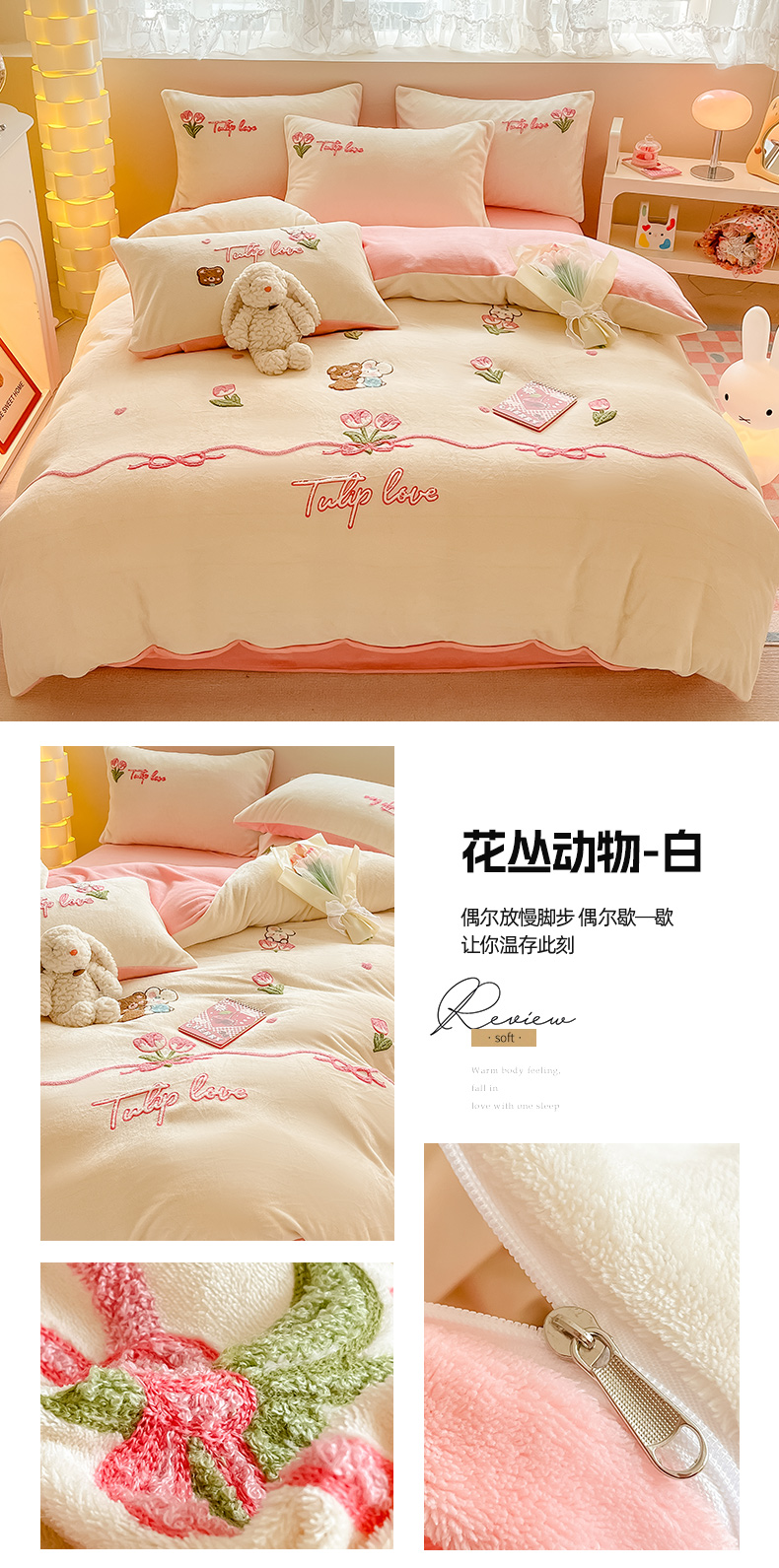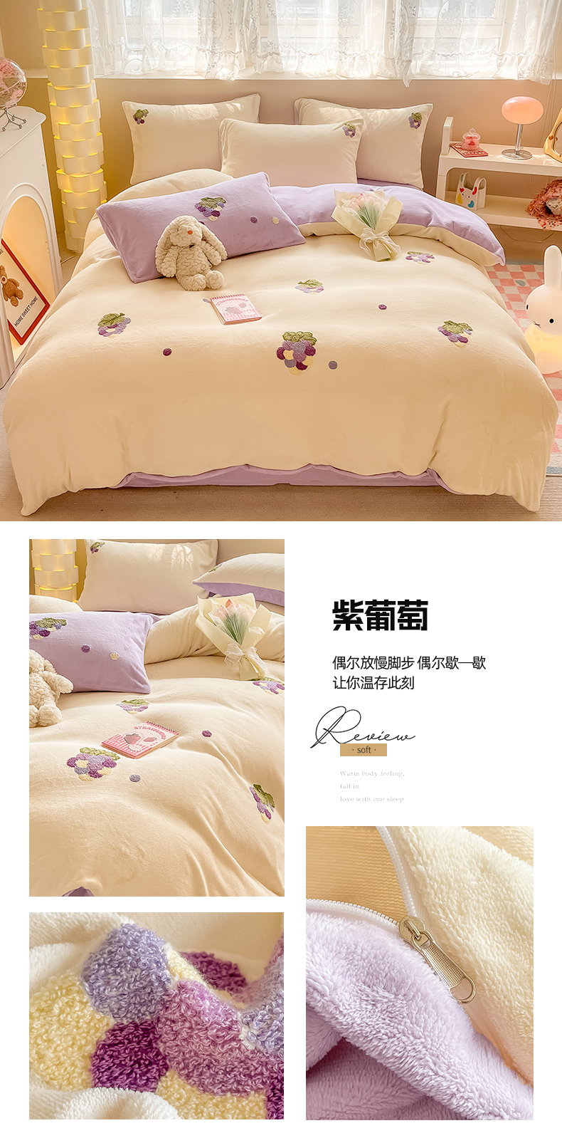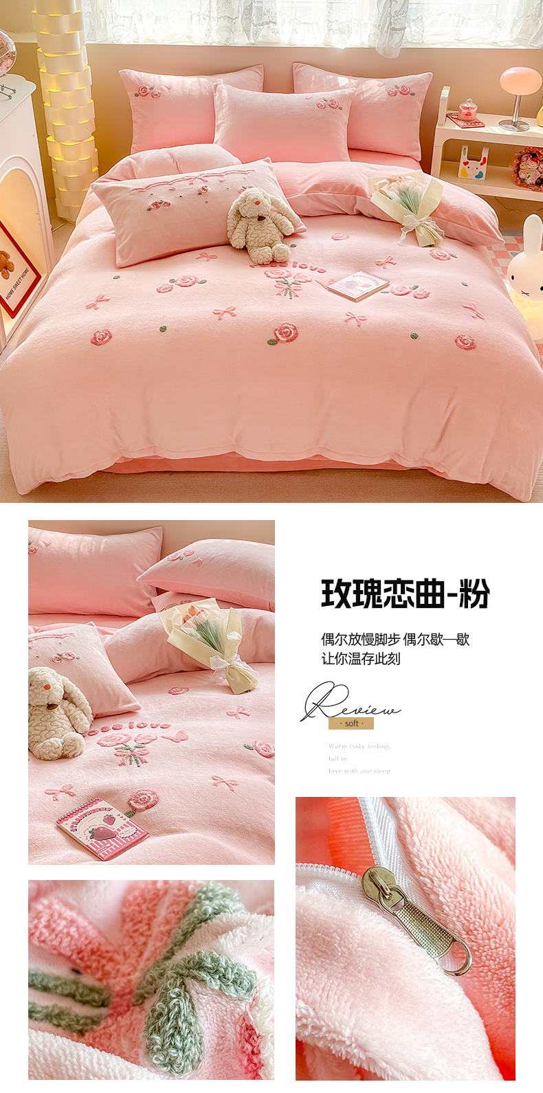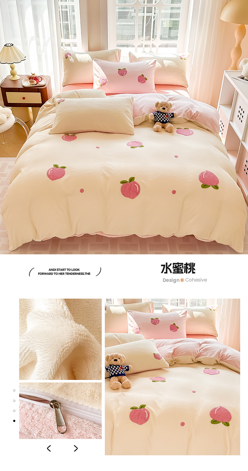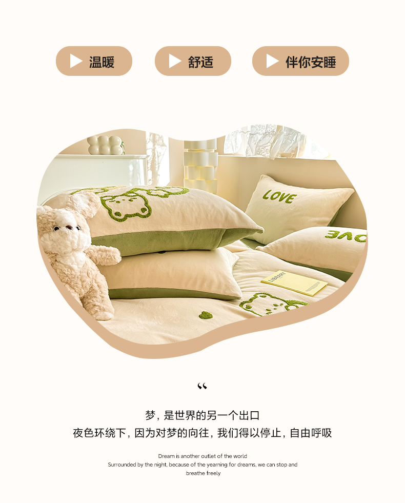 商品名称:(总)眠屿家纺 2023新款牛奶绒毛巾绣四件套(温馨版)