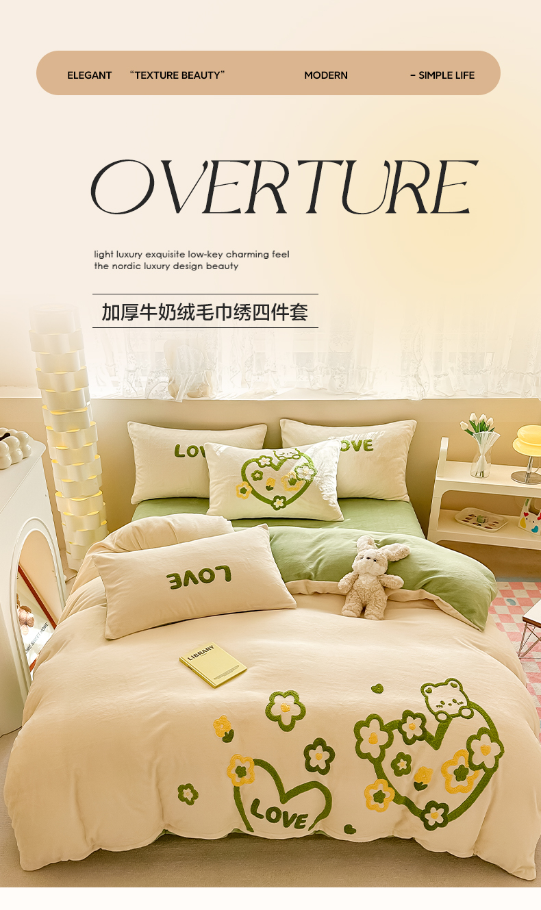 (总)眠屿家纺 2023新款牛奶绒毛巾绣四件套(温馨版)