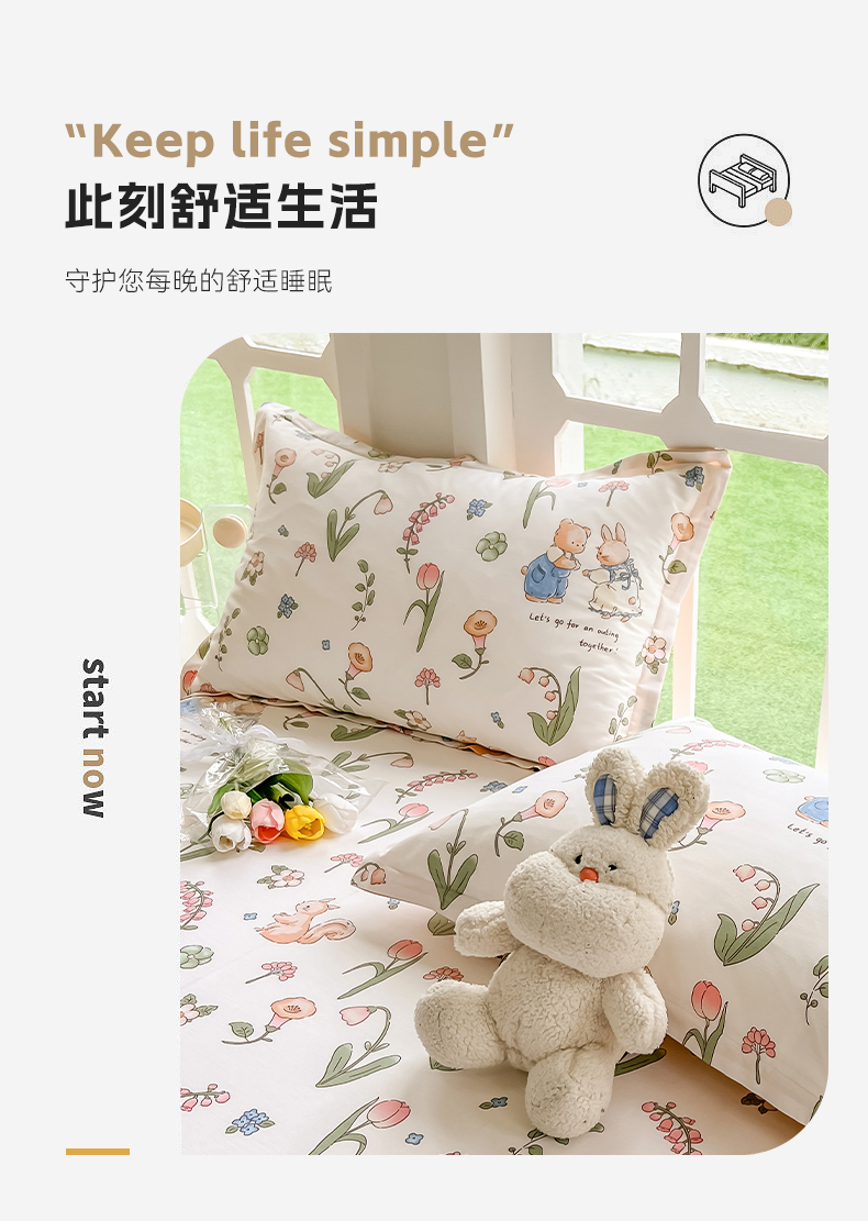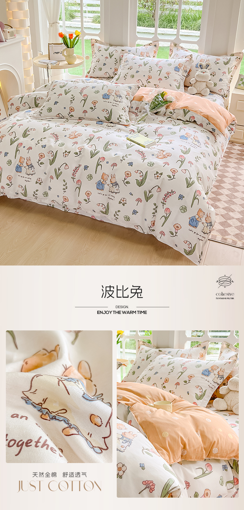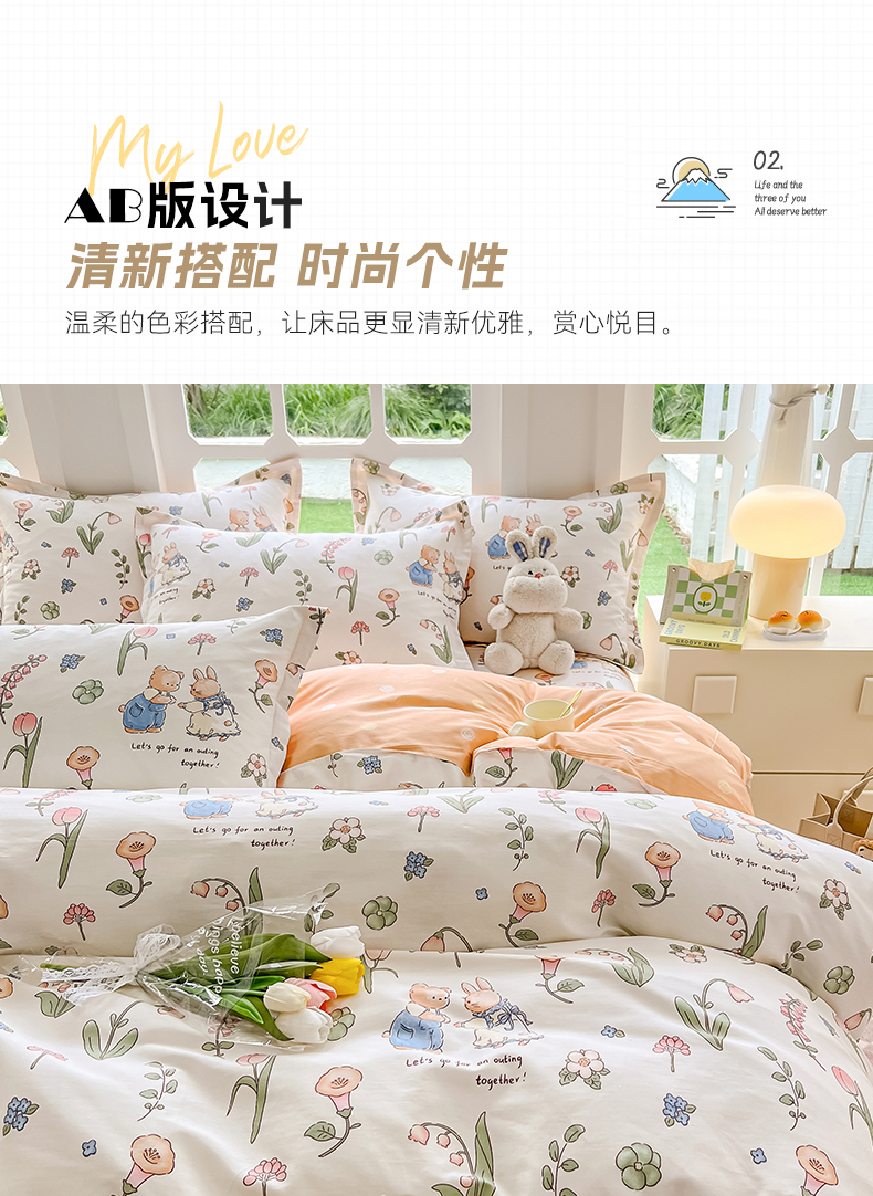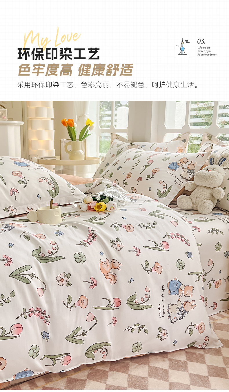 当前位置: 91家纺网 > 商品网购 > 床品套件 > 四件套 > 全棉普通四件套 > 绵庭家纺 2023新款12868系列全棉小清新印花四件套 波比兔