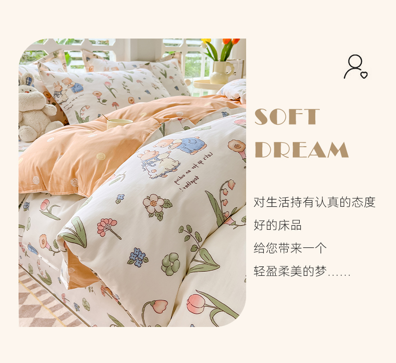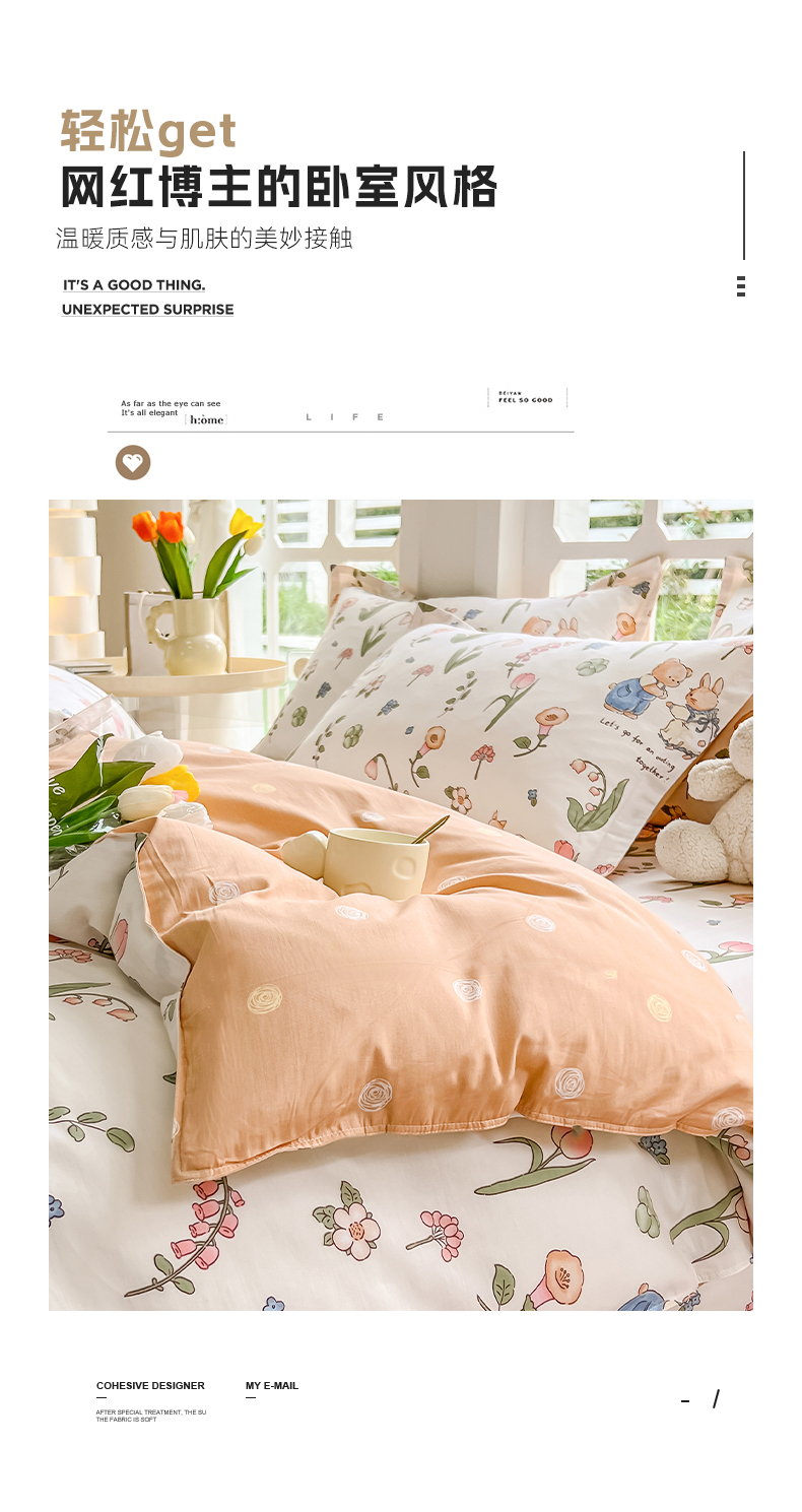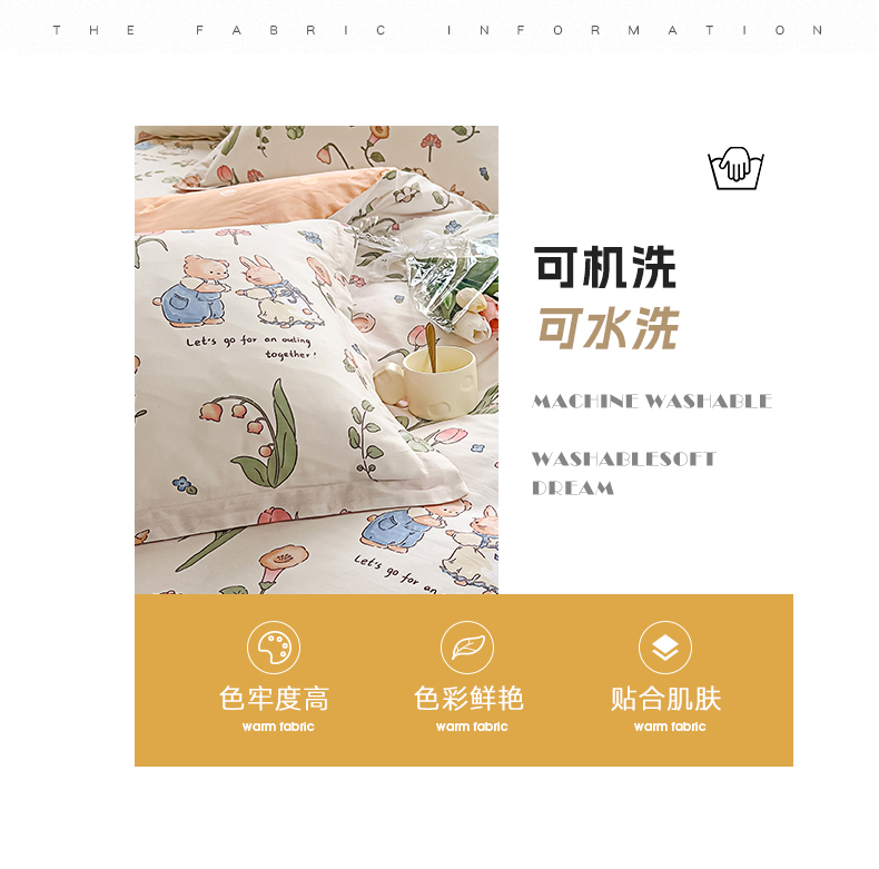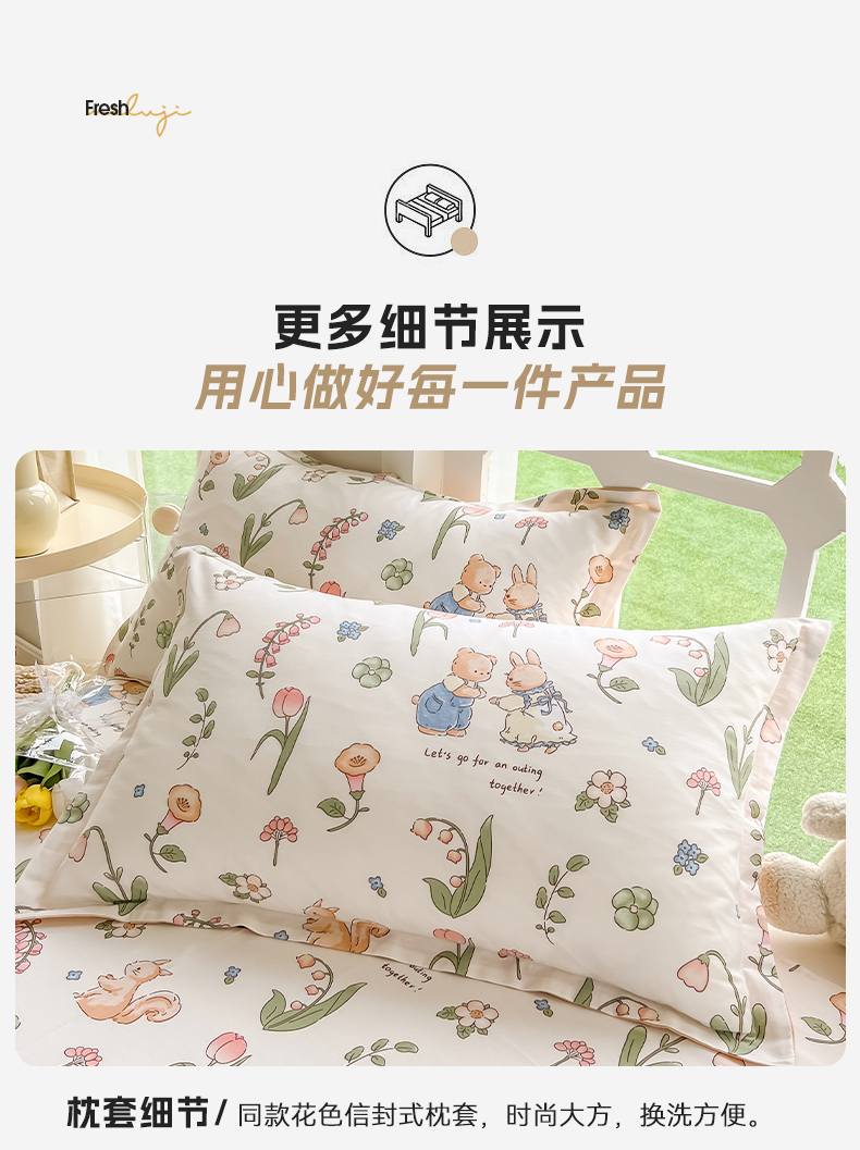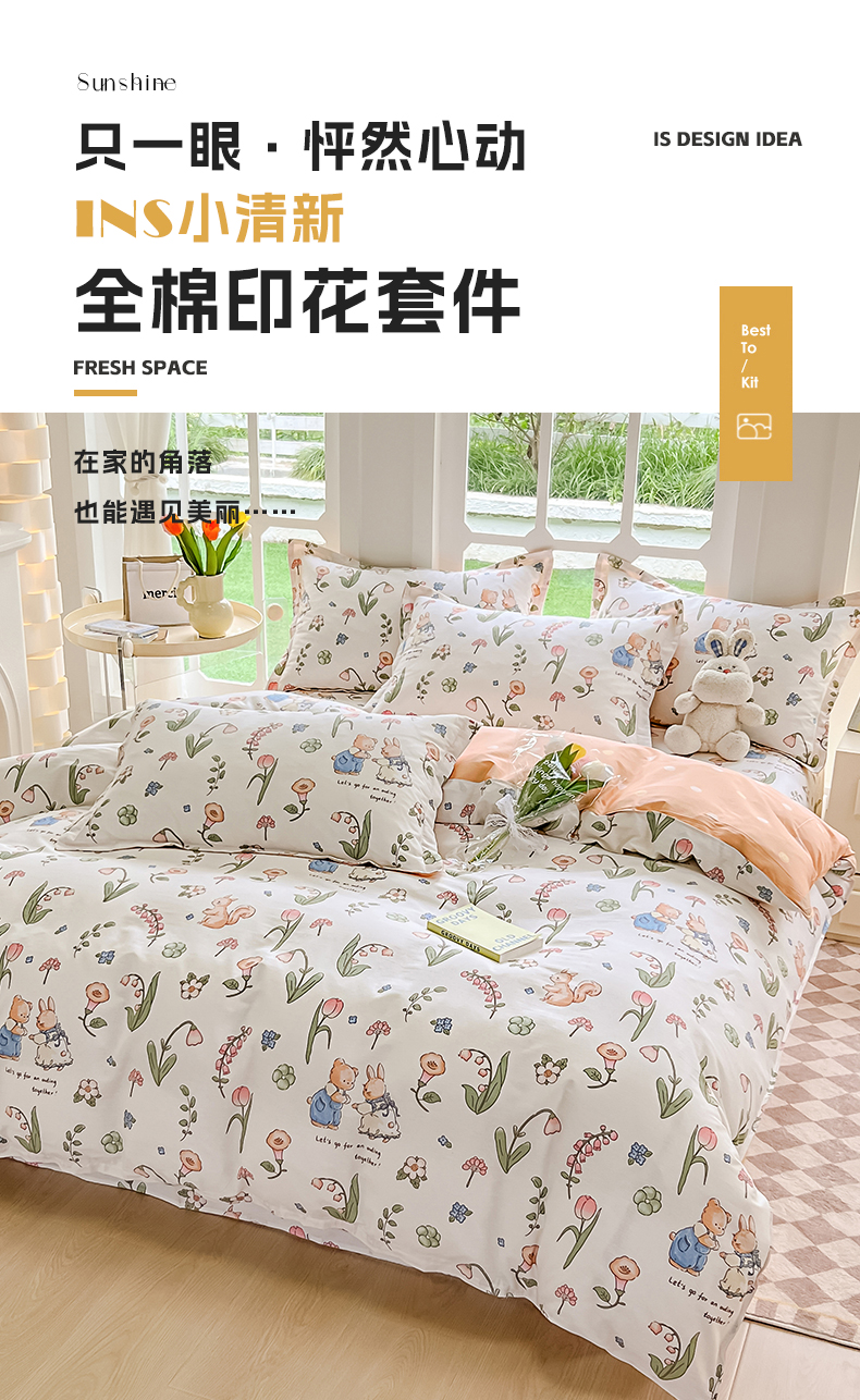 当前位置: 91家纺网 > 商品网购 > 床品套件 > 四件套 > 全棉普通四件套 > 绵庭家纺 2023新款12868系列全棉小清新印花四件套 波比兔