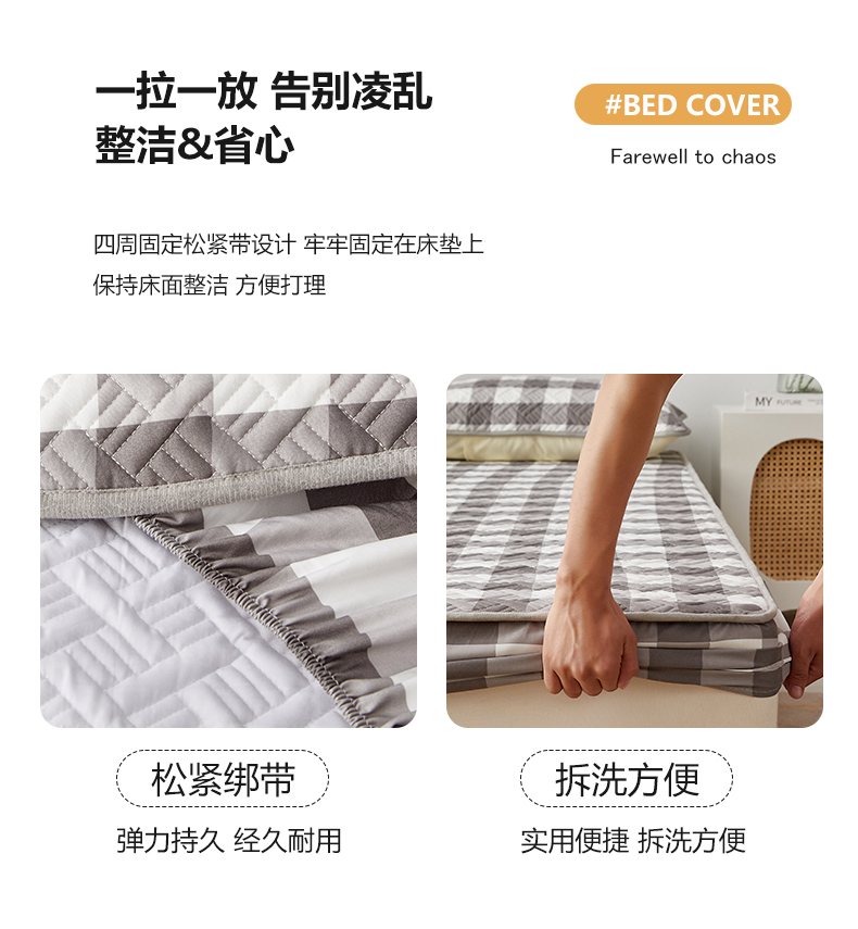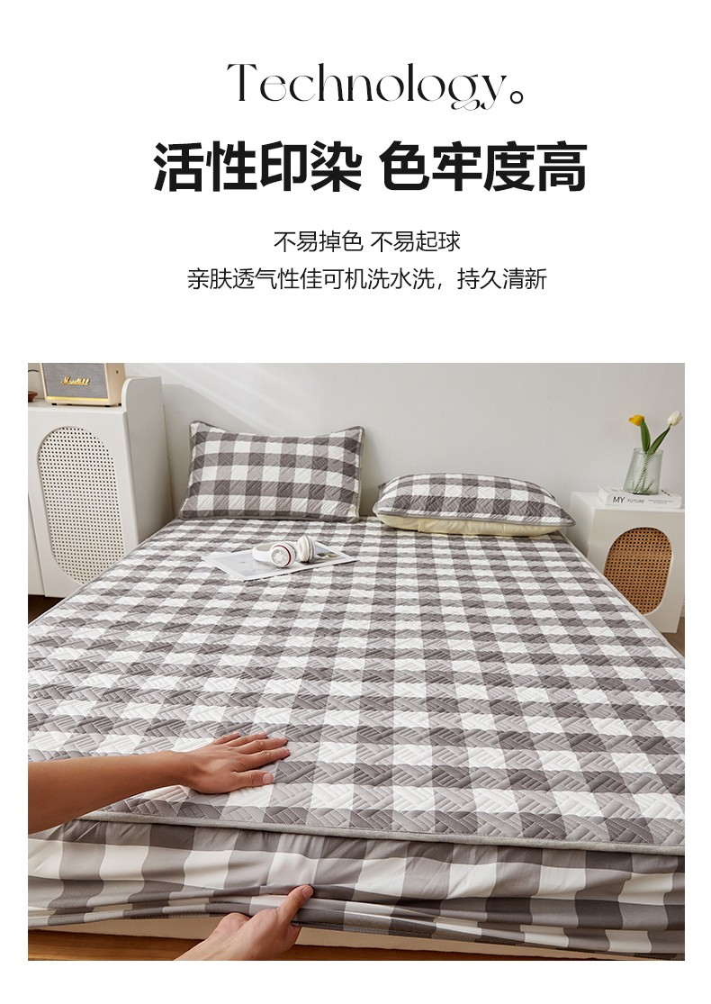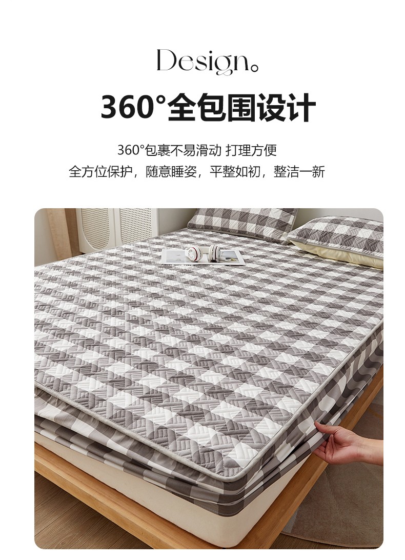 • 91家纺网 家纺一手货源 找家纺 暖季 2025新款无印风水洗棉-玉米纤维夹棉床笠 无印风水洗棉-灰中格